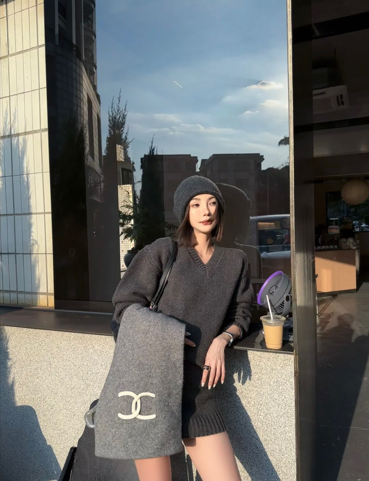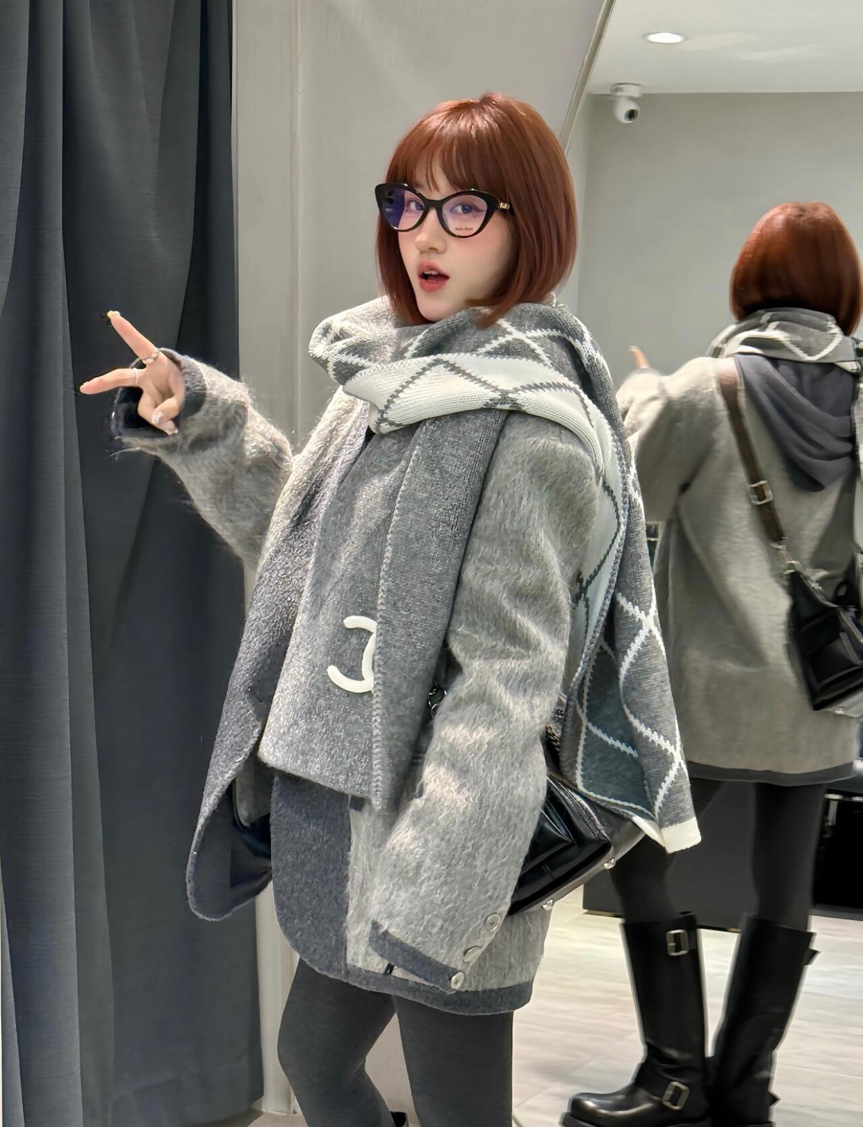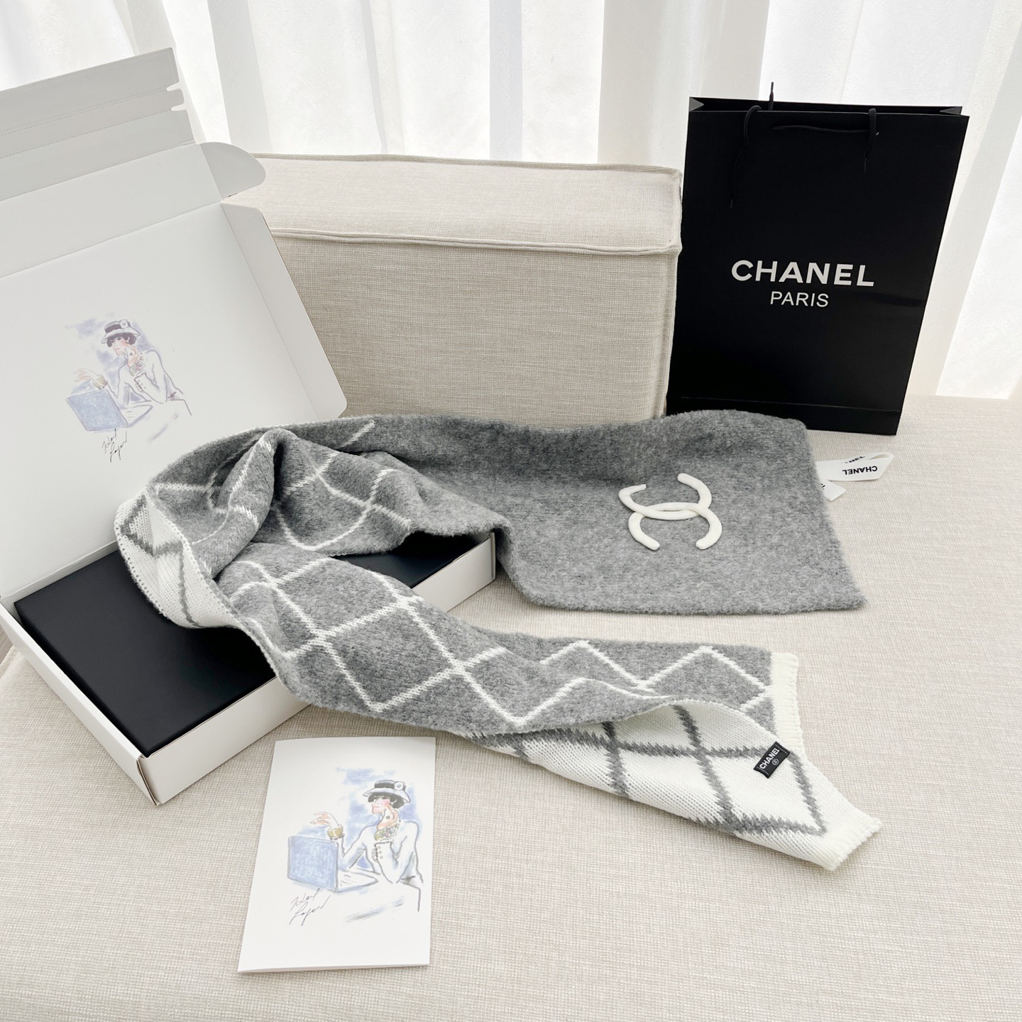 没有包装📦𝐂𝐡𝐚𝐧𝐞𝐥 【圈圈菱格双面围巾】