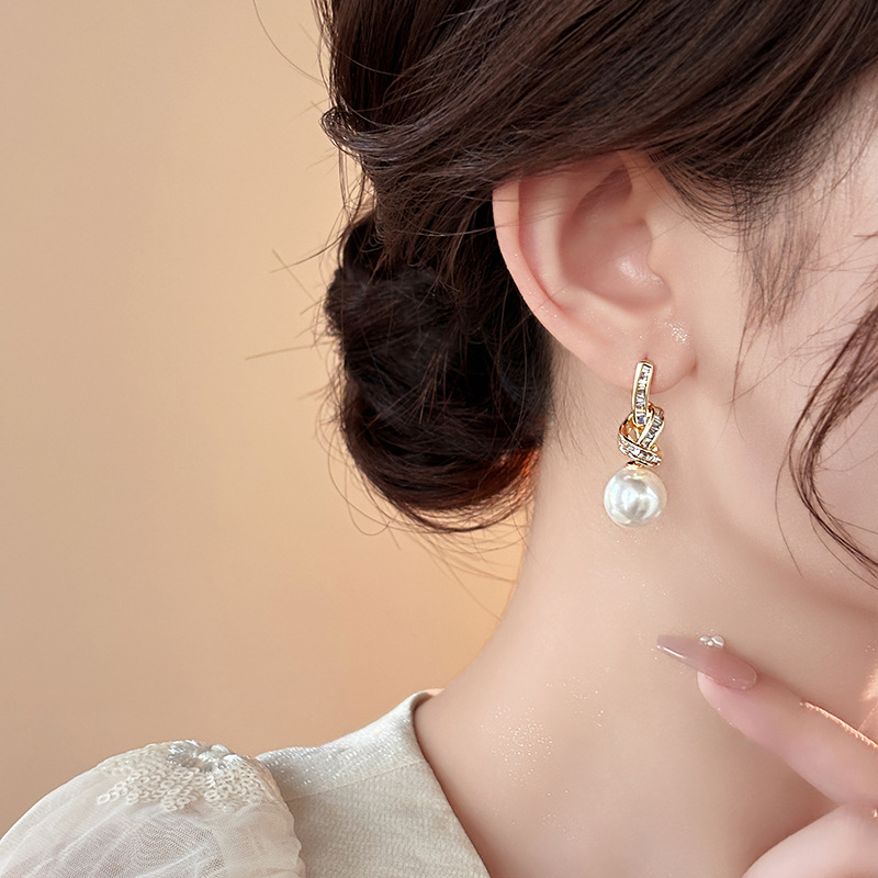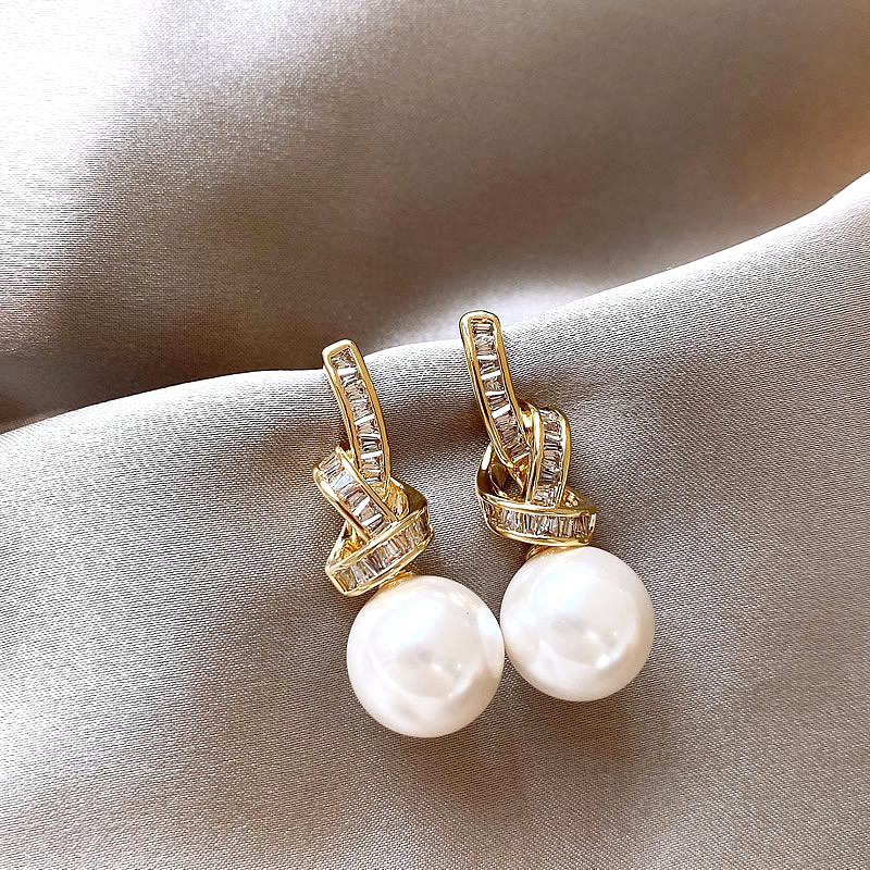 雀说 轻奢微镶锆石打结珍珠耳坠s925银针SEH1801