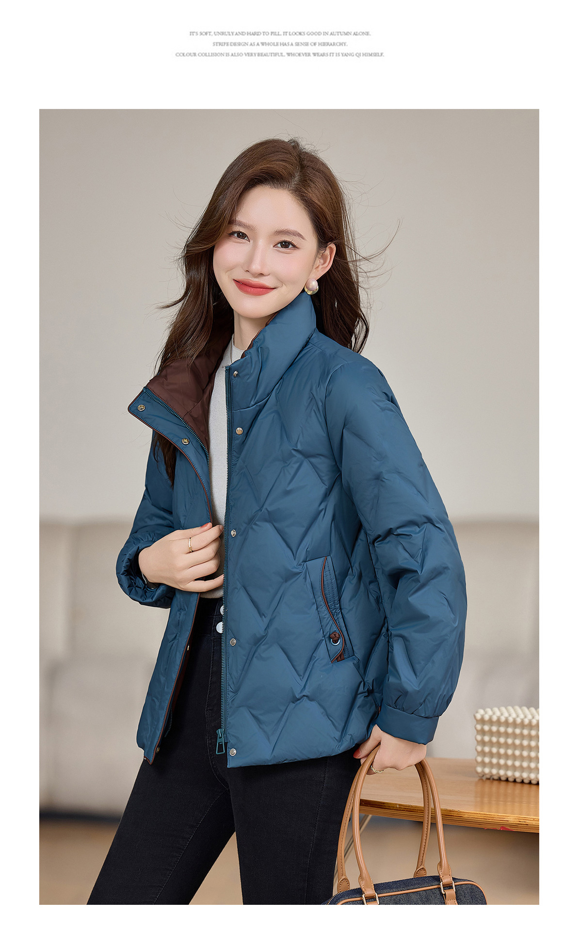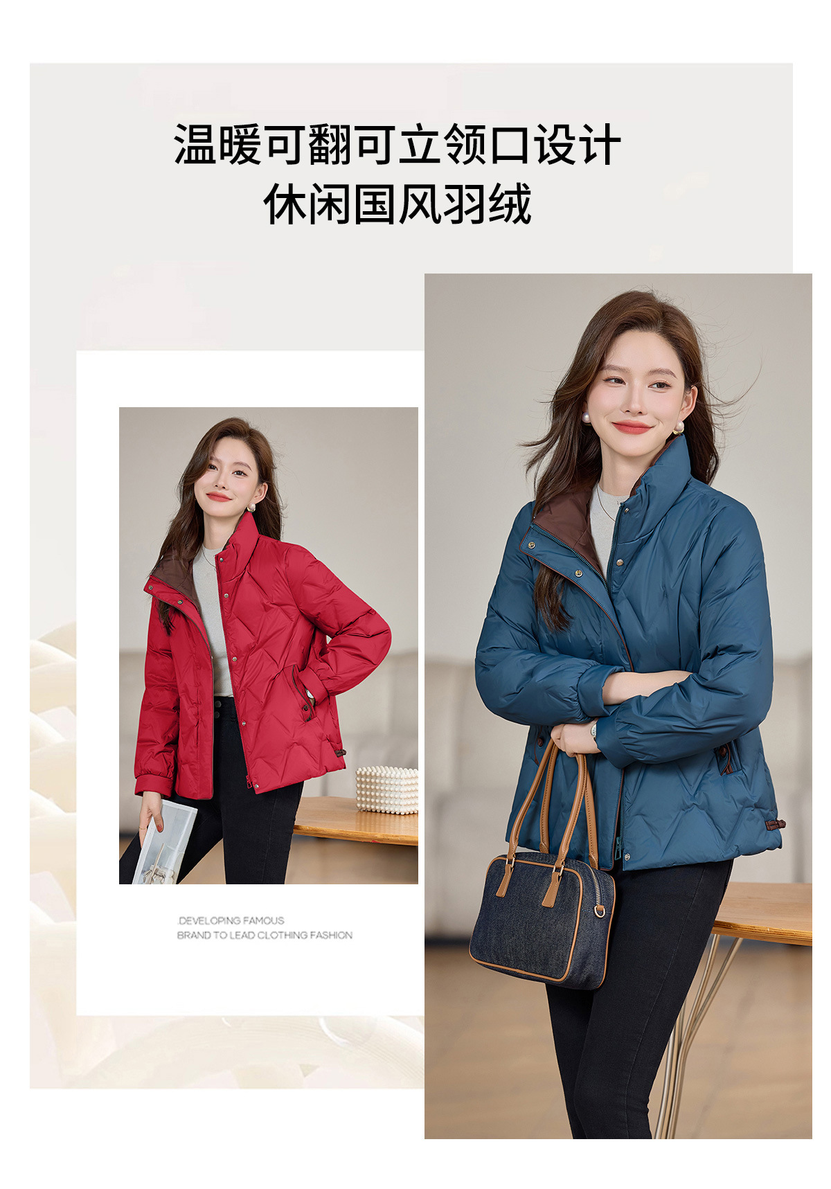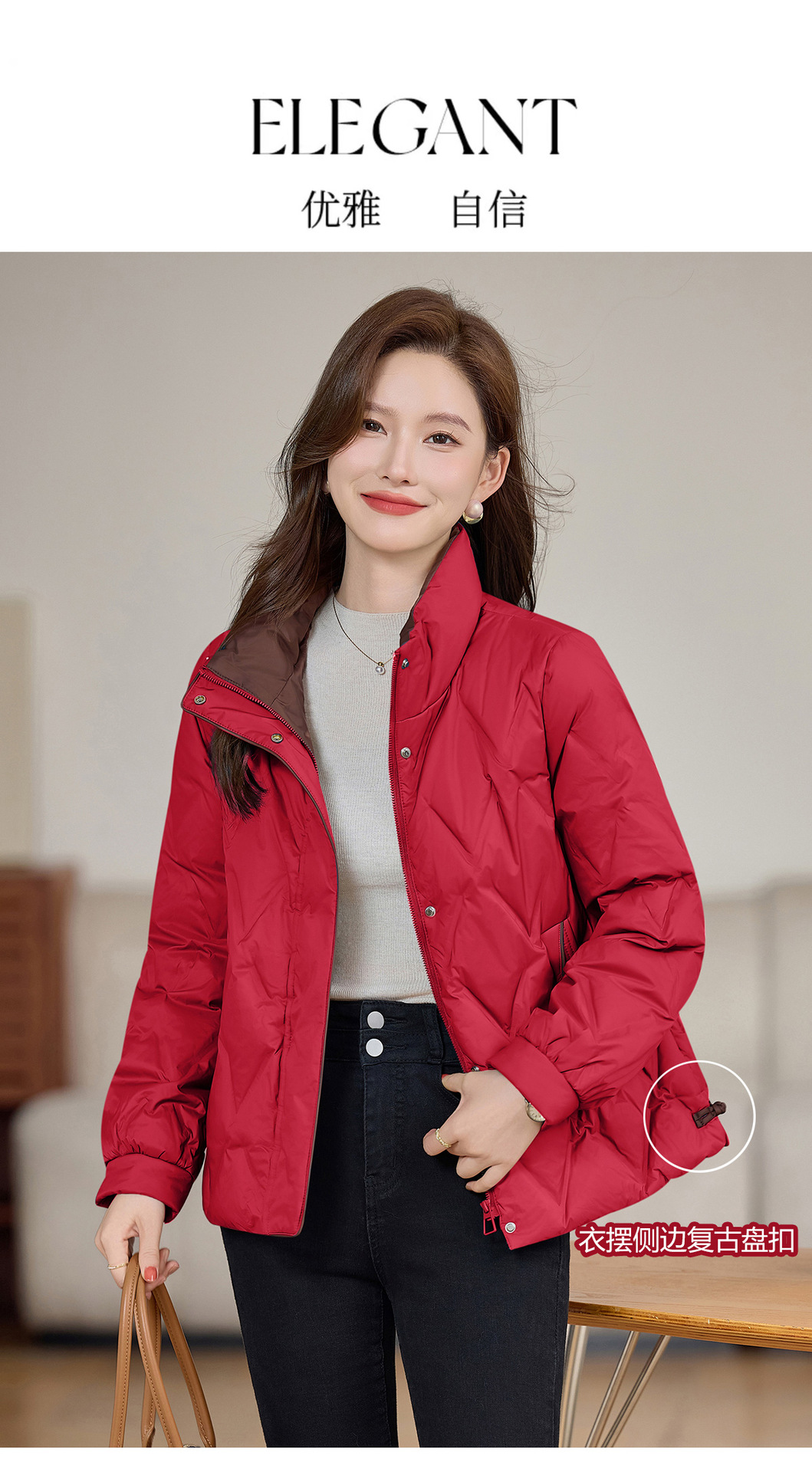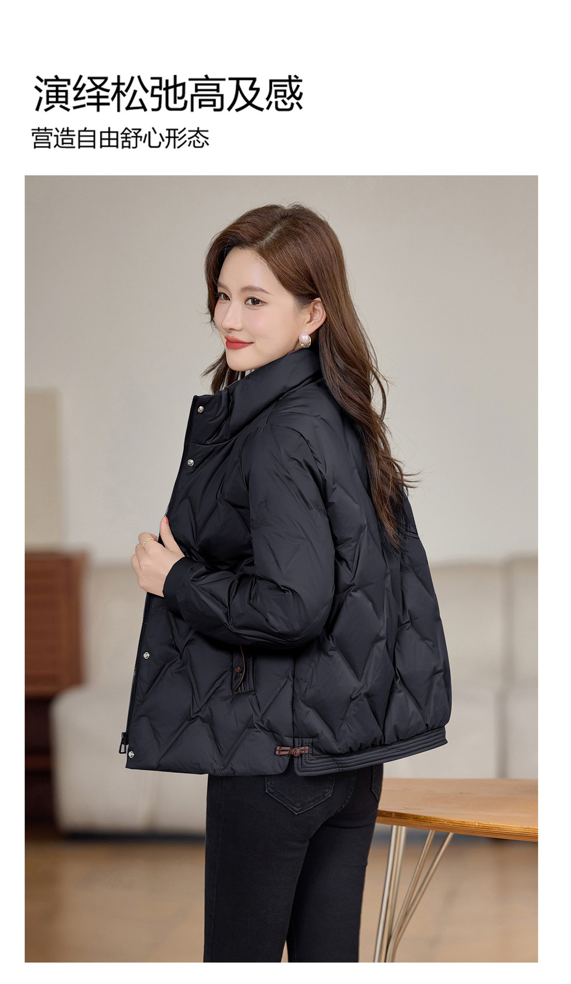 丁摩 气质立领羽绒服女冬季新款高级感盘扣宽松短款白鸭绒外套5ZF-9983