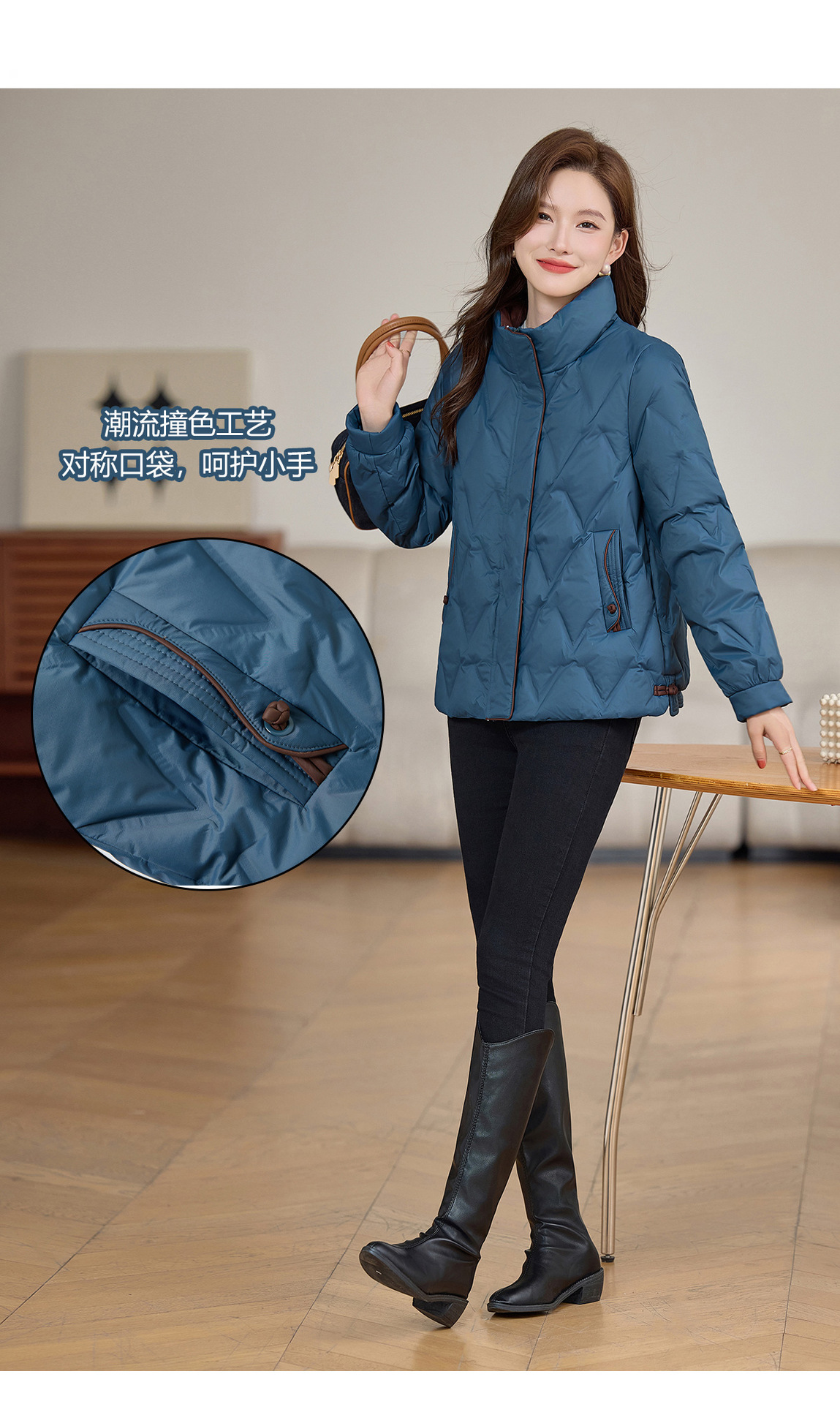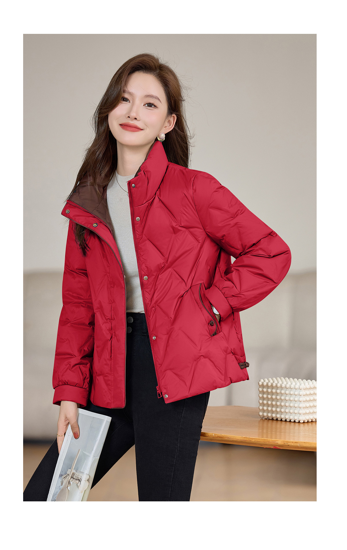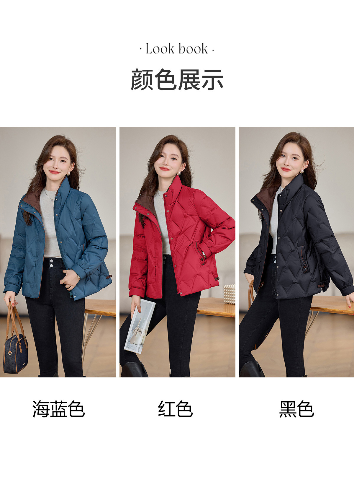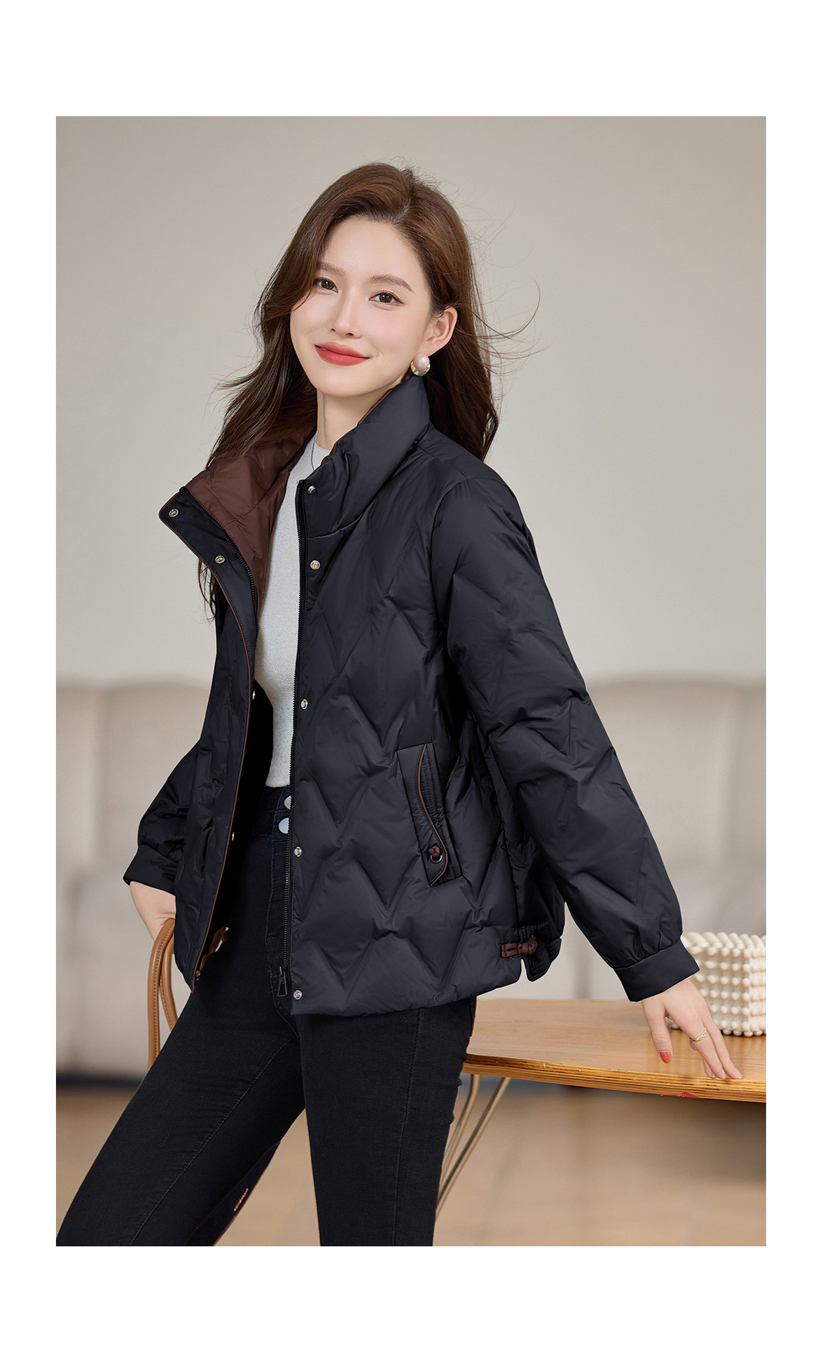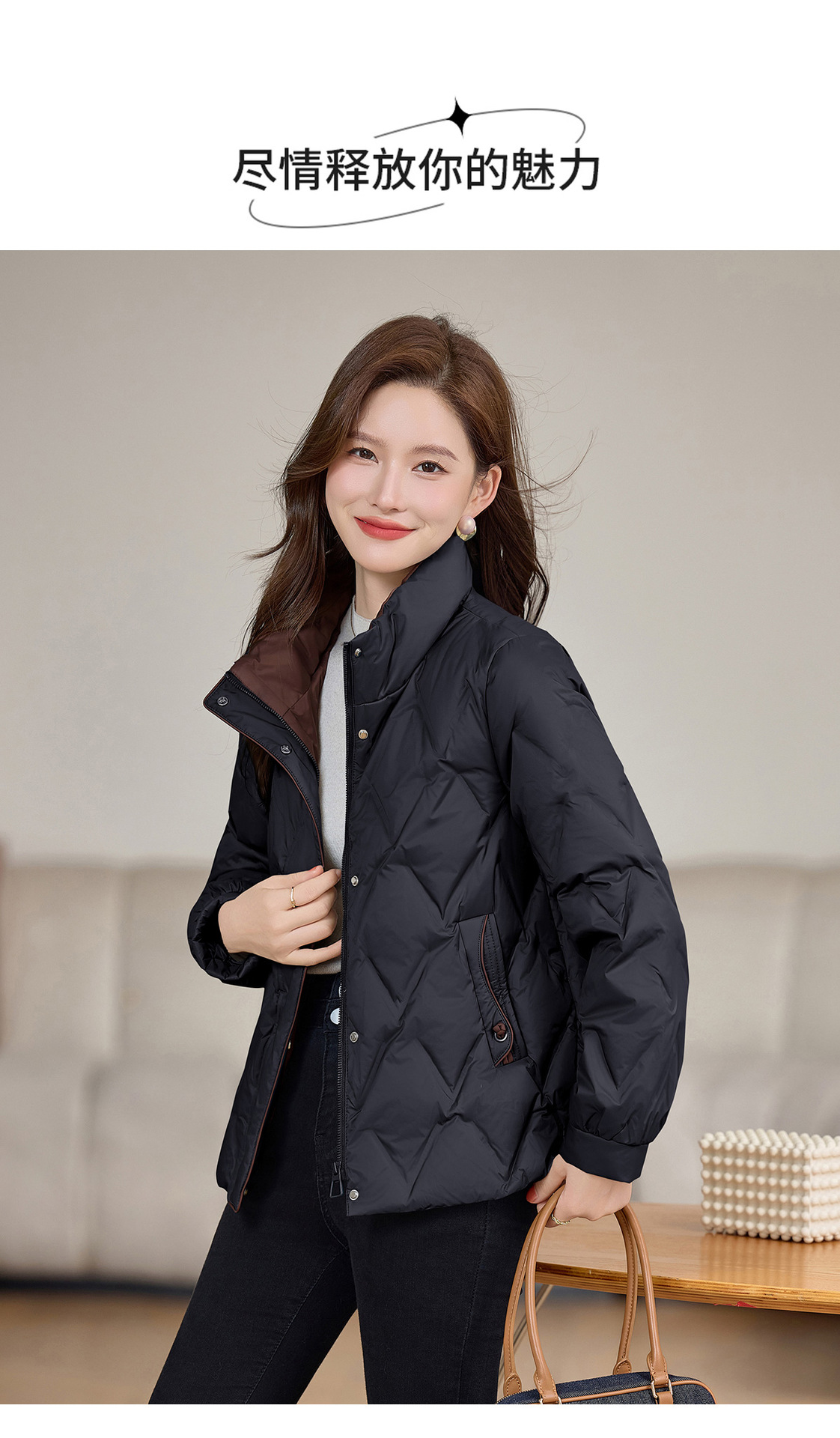 丁摩 气质立领羽绒服女冬季新款高级感盘扣宽松短款白鸭绒外套5ZF-9983