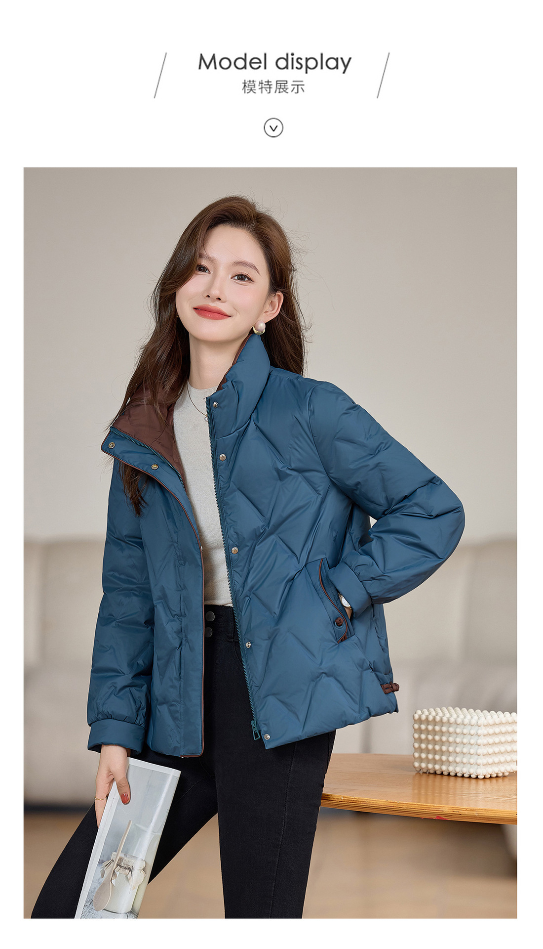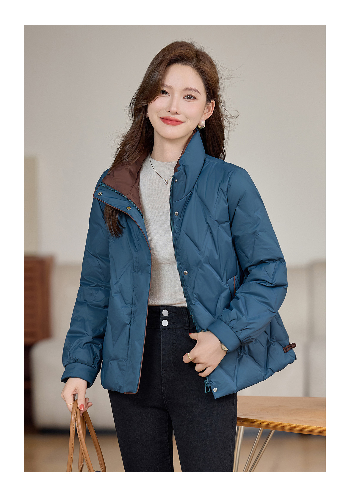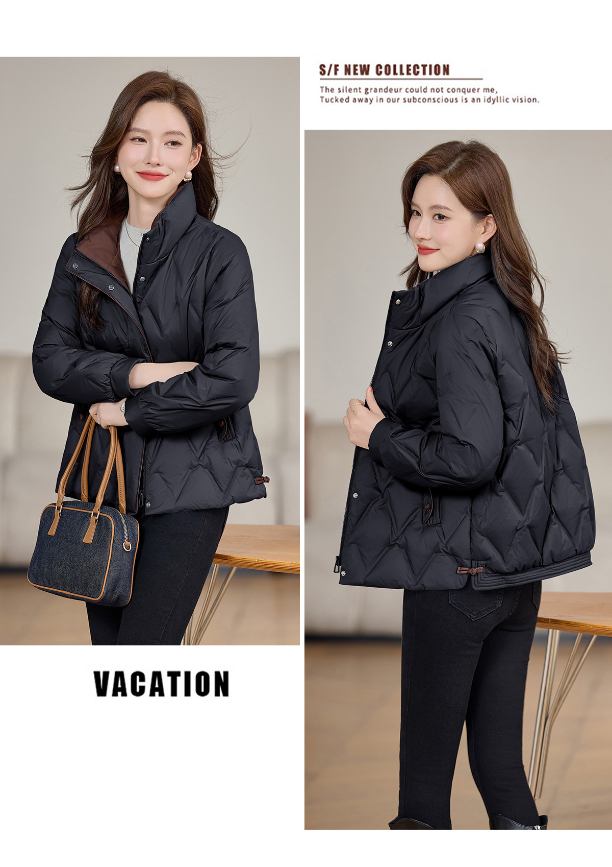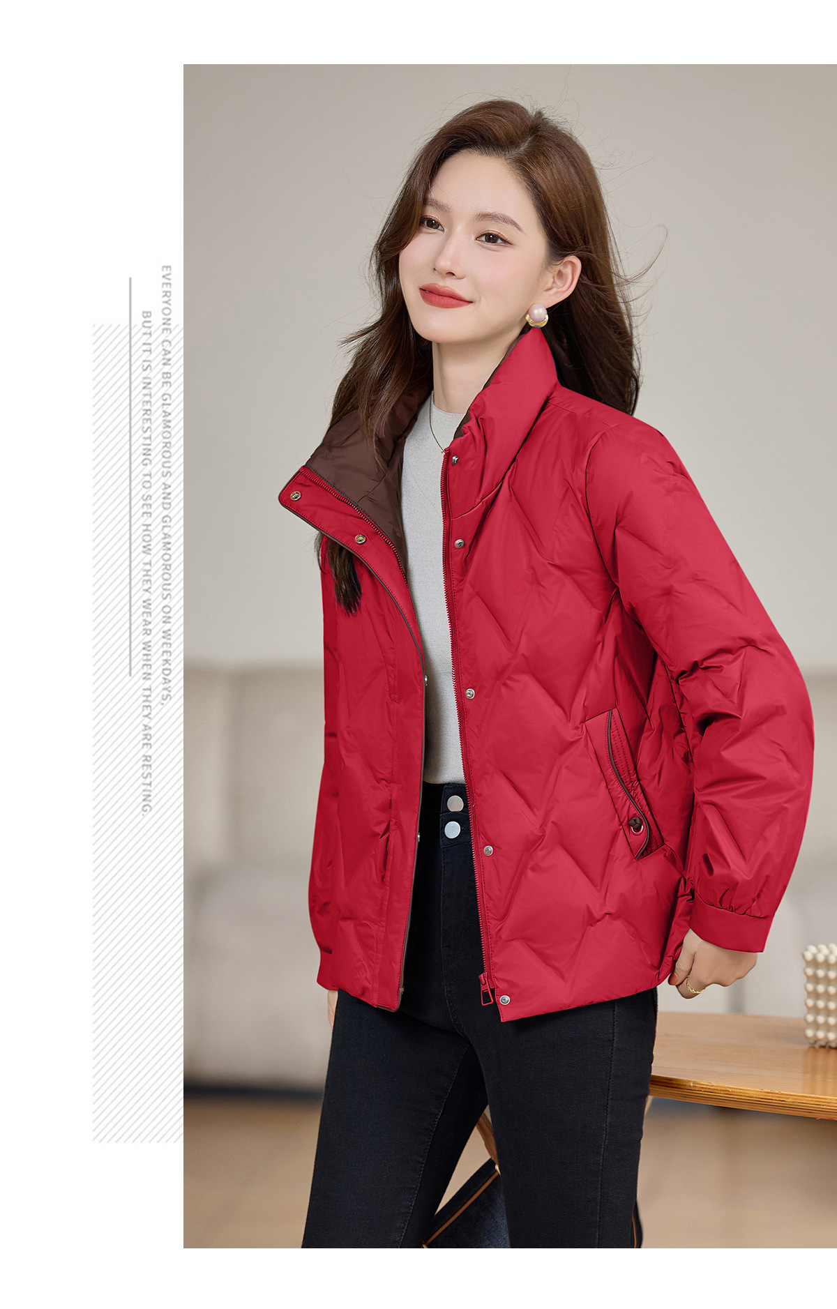 丁摩 气质立领羽绒服女冬季新款高级感盘扣宽松短款白鸭绒外套5ZF-9983