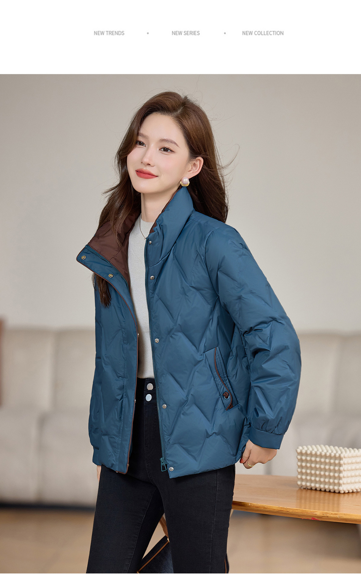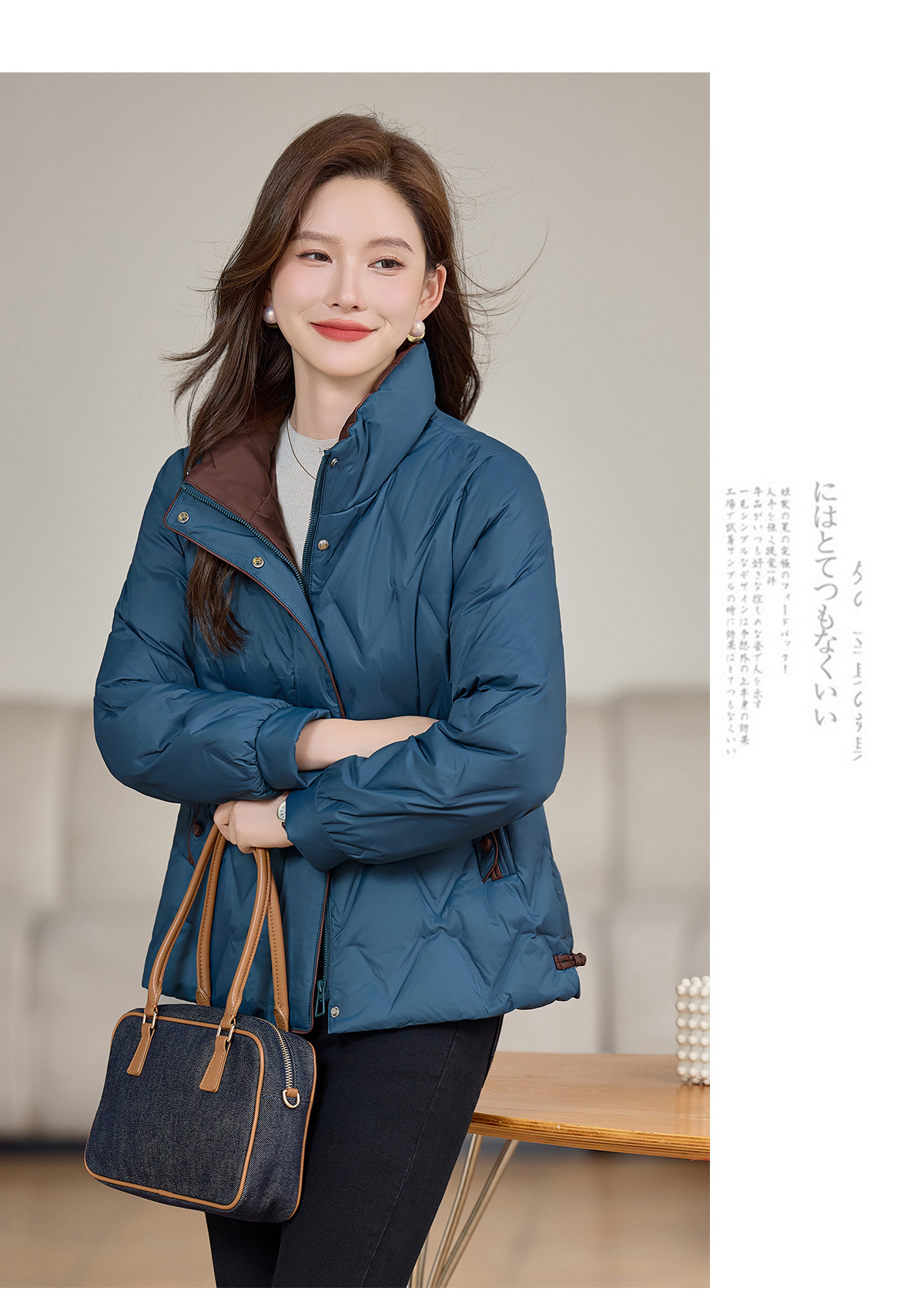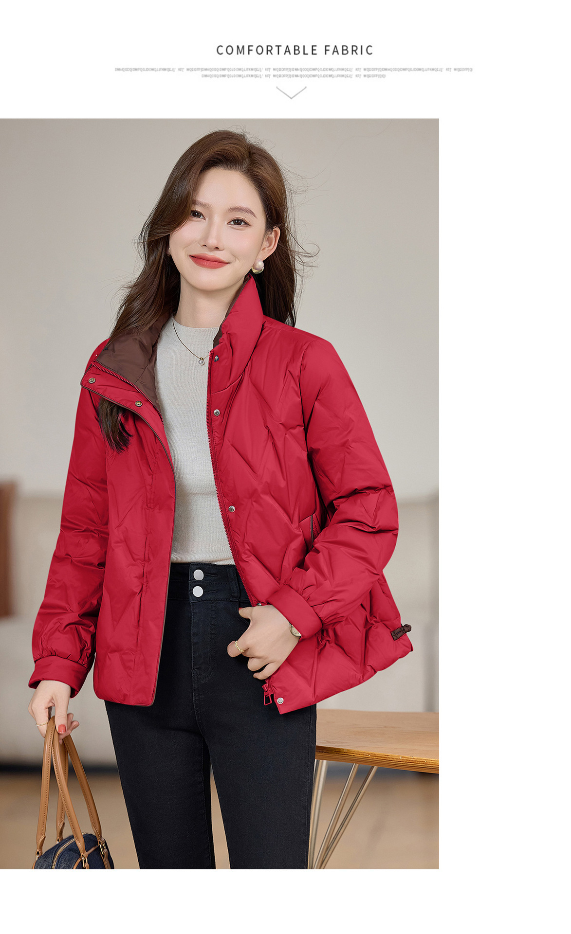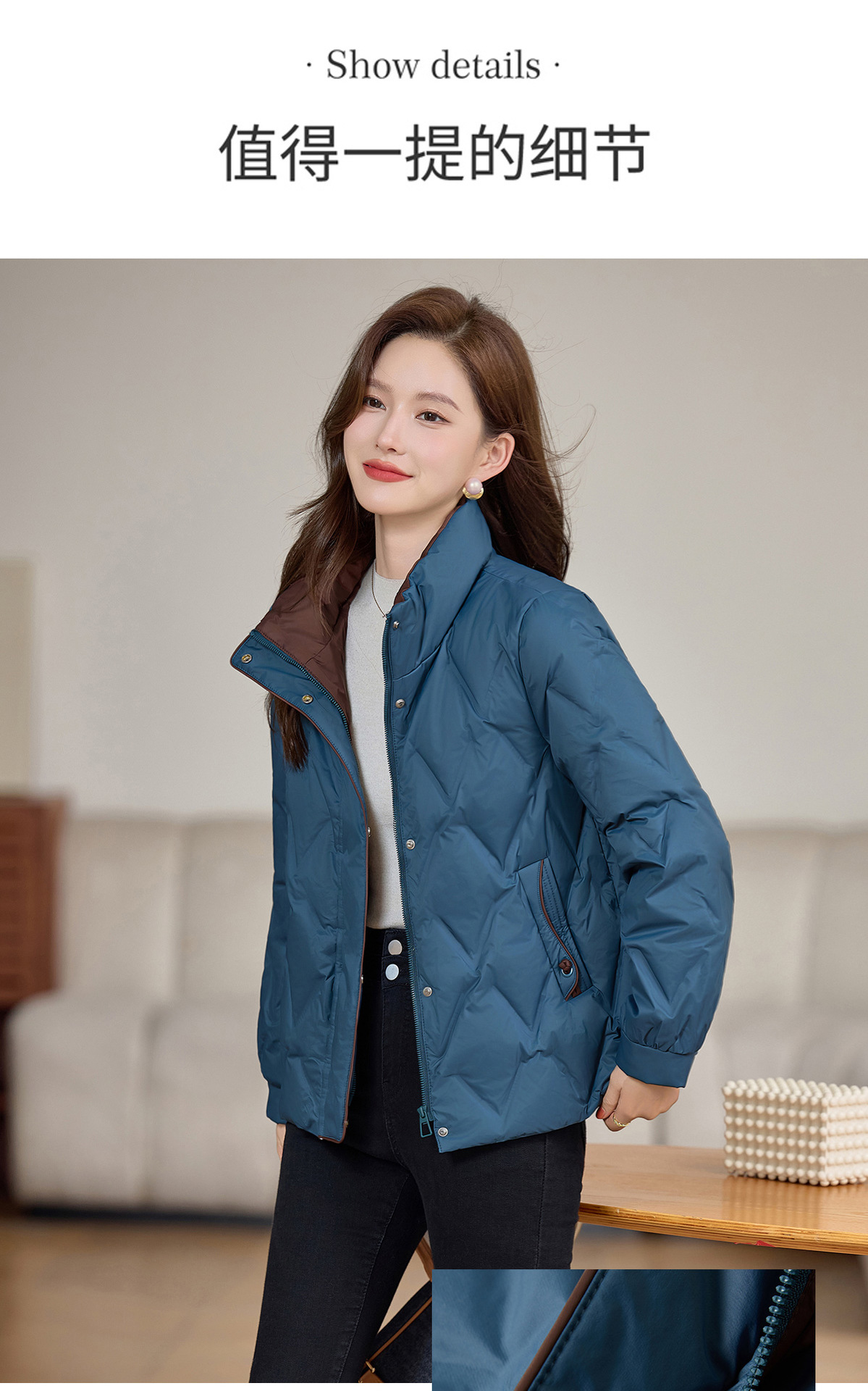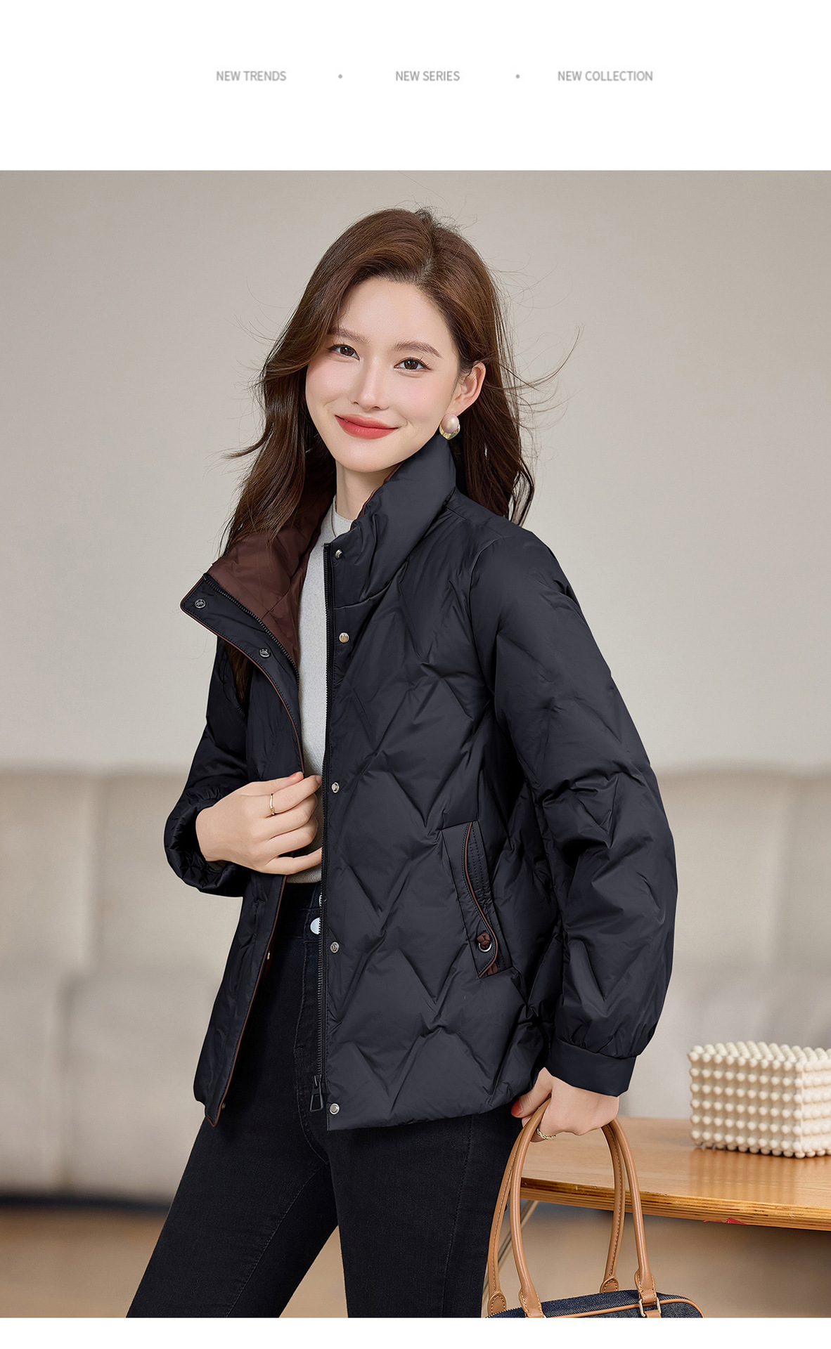 丁摩 气质立领羽绒服女冬季新款高级感盘扣宽松短款白鸭绒外套5ZF-9983