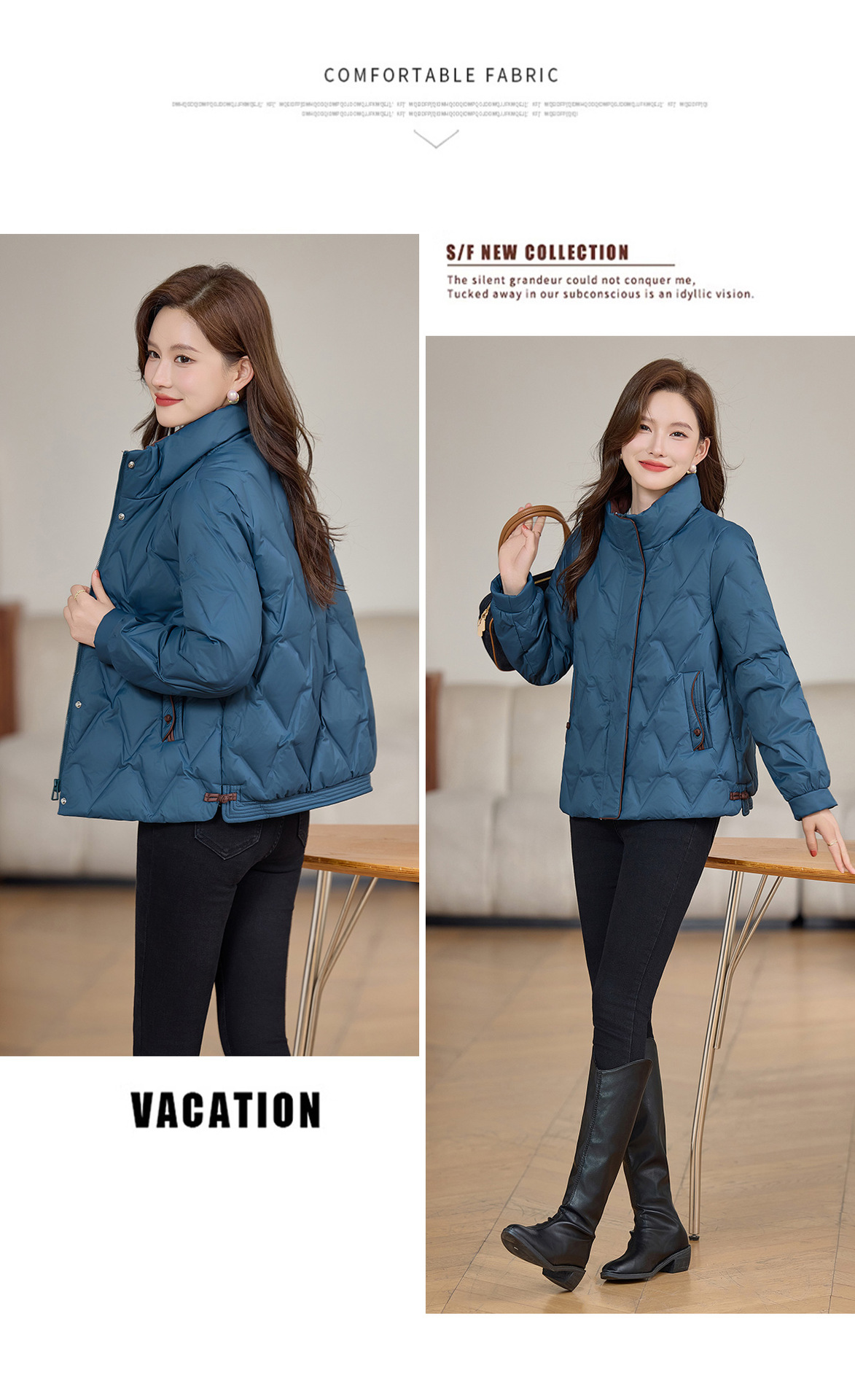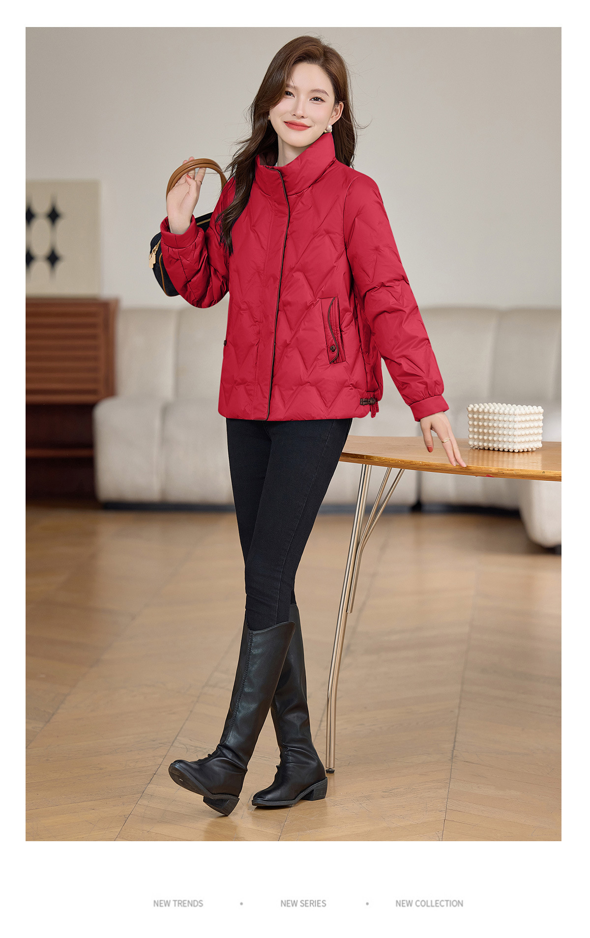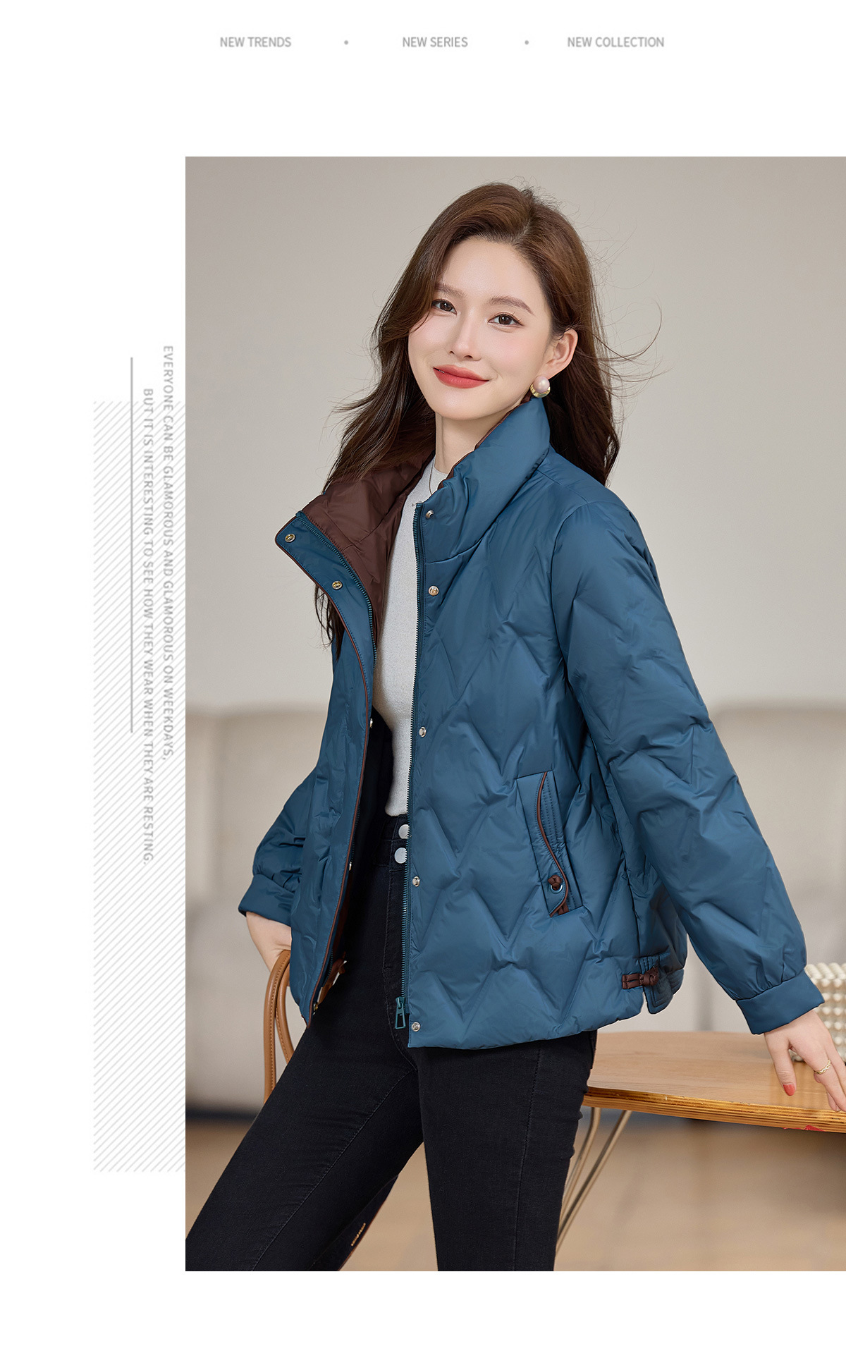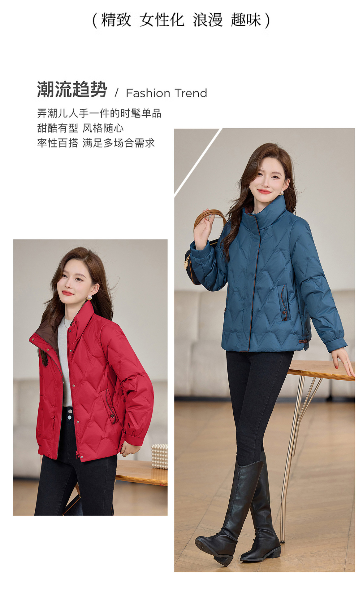 丁摩 气质立领羽绒服女冬季新款高级感盘扣宽松短款白鸭绒外套5ZF-9983