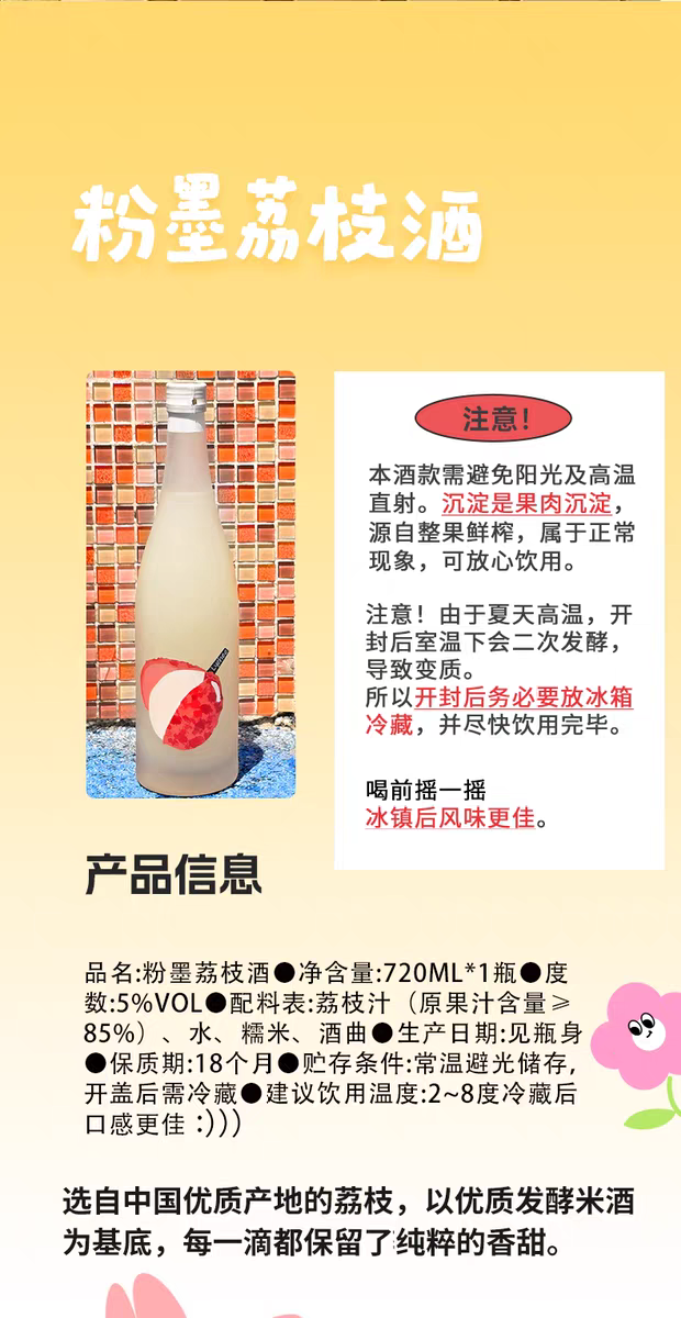 【新品】中国粉墨初品 Fenmo粉墨 荔枝酒传统发酵低度微醺网红饮料720ml