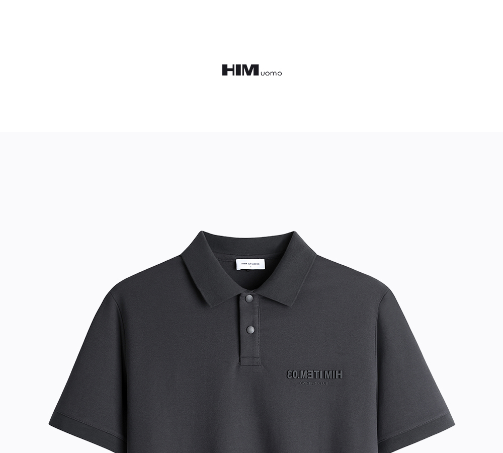 HIM漢崇 简约滴胶字母舒适休闲修身反领短袖POLO衫男 2026夏季