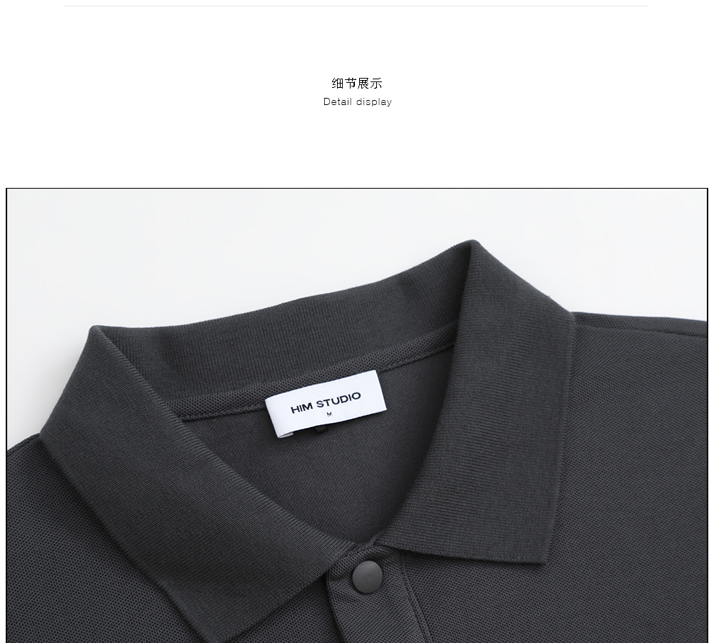 HIM漢崇 日常商务休闲反领T恤简约撞色小绣花短袖上衣 2025春夏