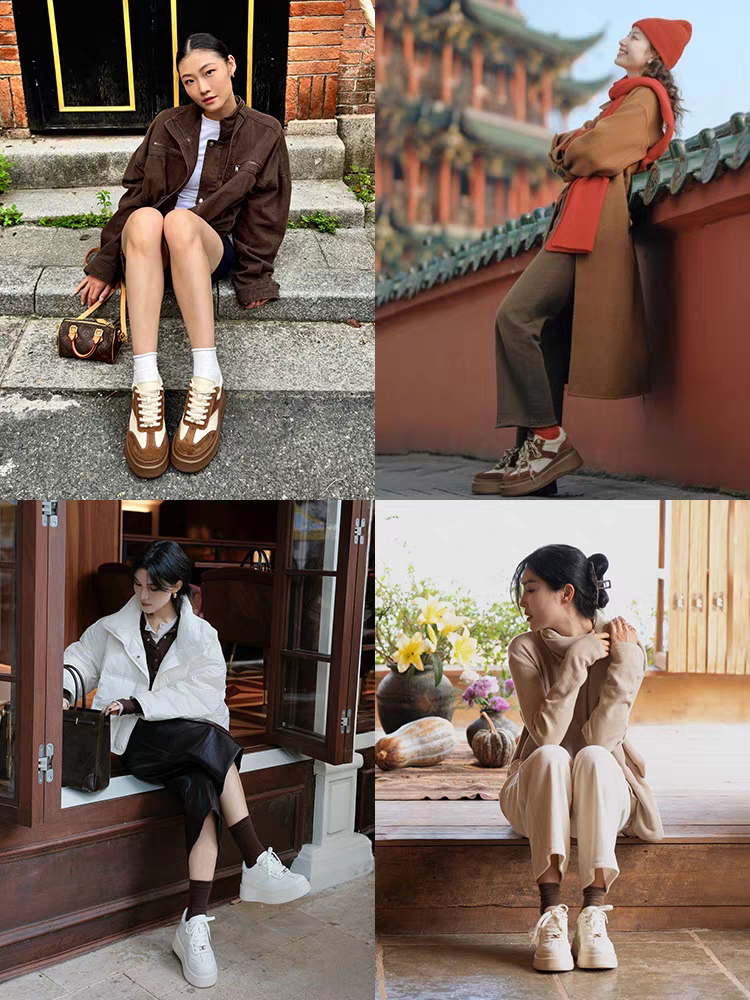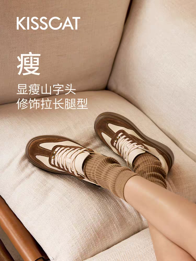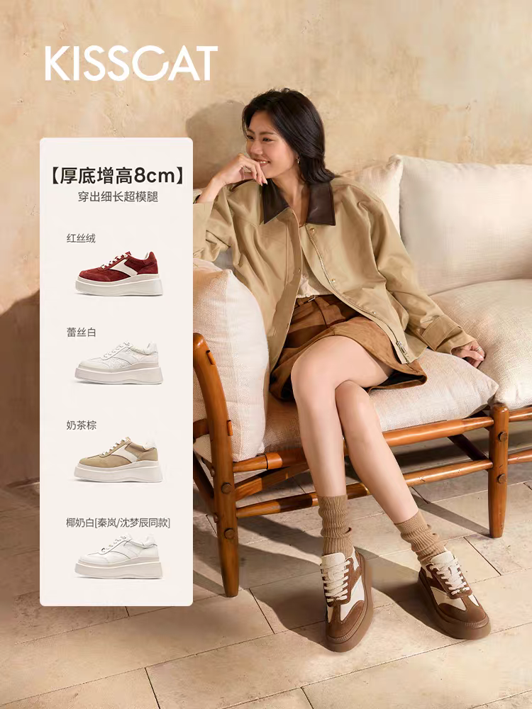 「[沈梦辰/赵昭仪同款]接吻猫[8cm内增高太妃糖]厚底德训鞋小白鞋」