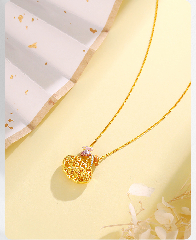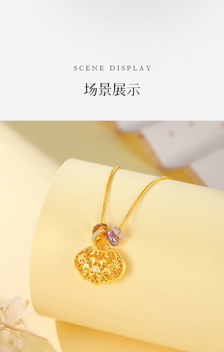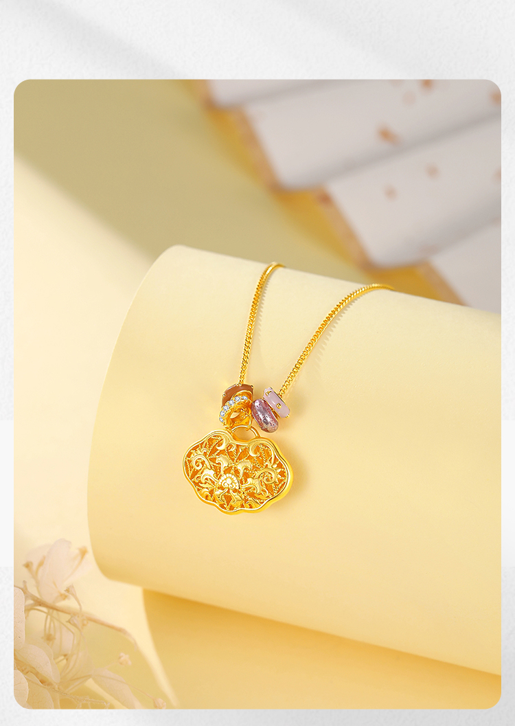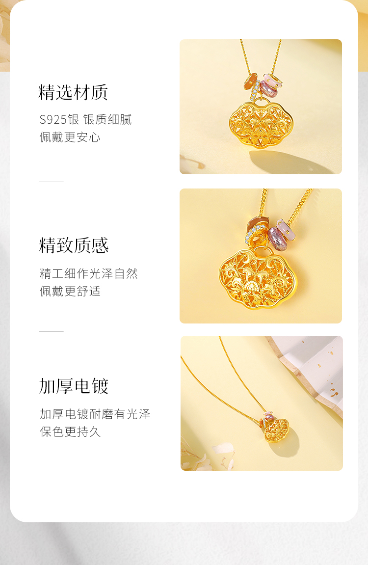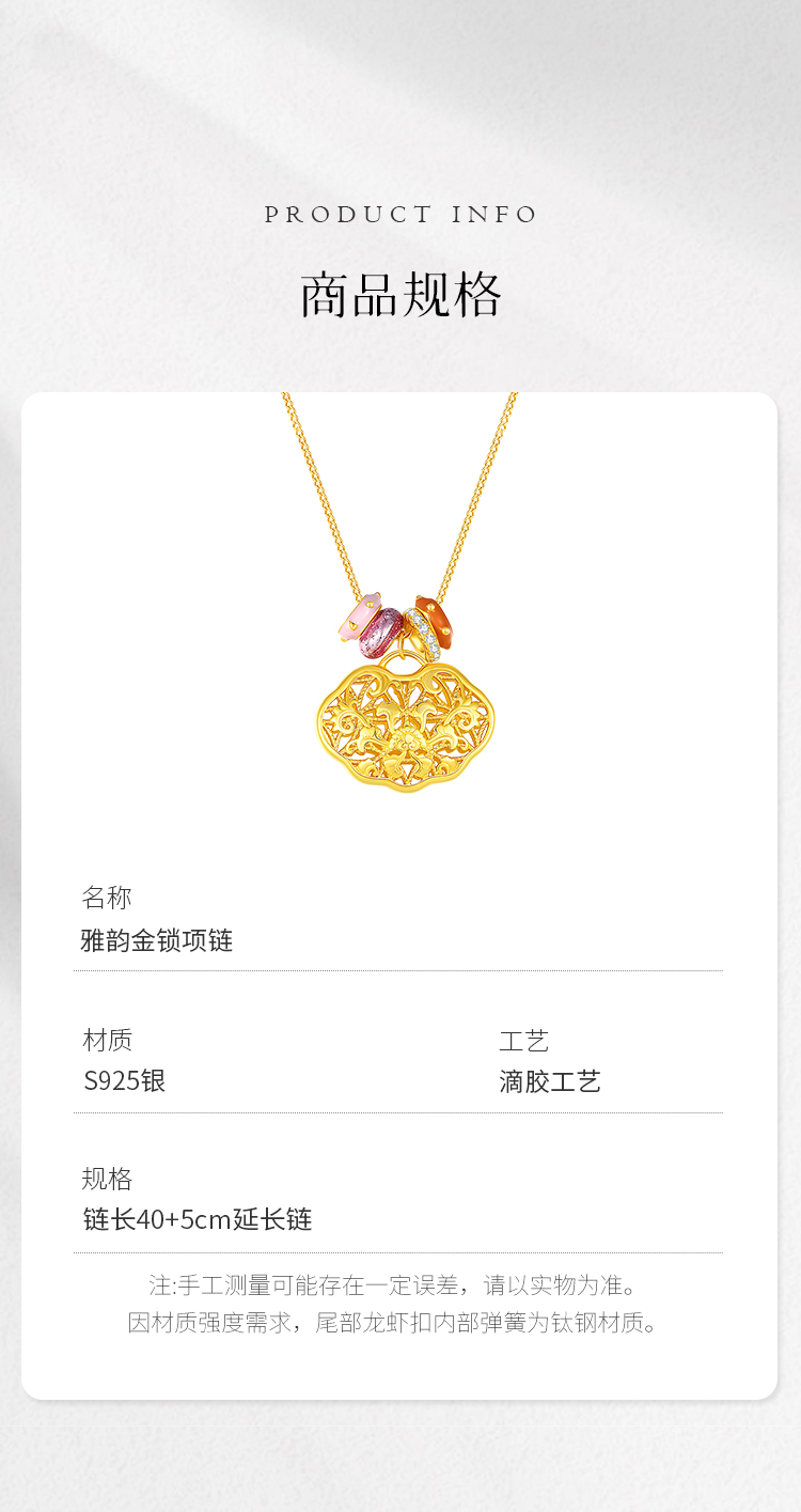 Winy S925银雅韵金锁项链送女友闺蜜节日生日礼物
