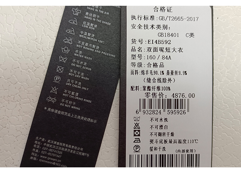 乔万尼新品绵羊毛大衣H版型短款双面尼EI4B592