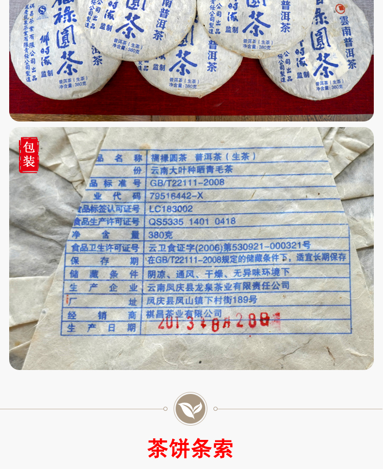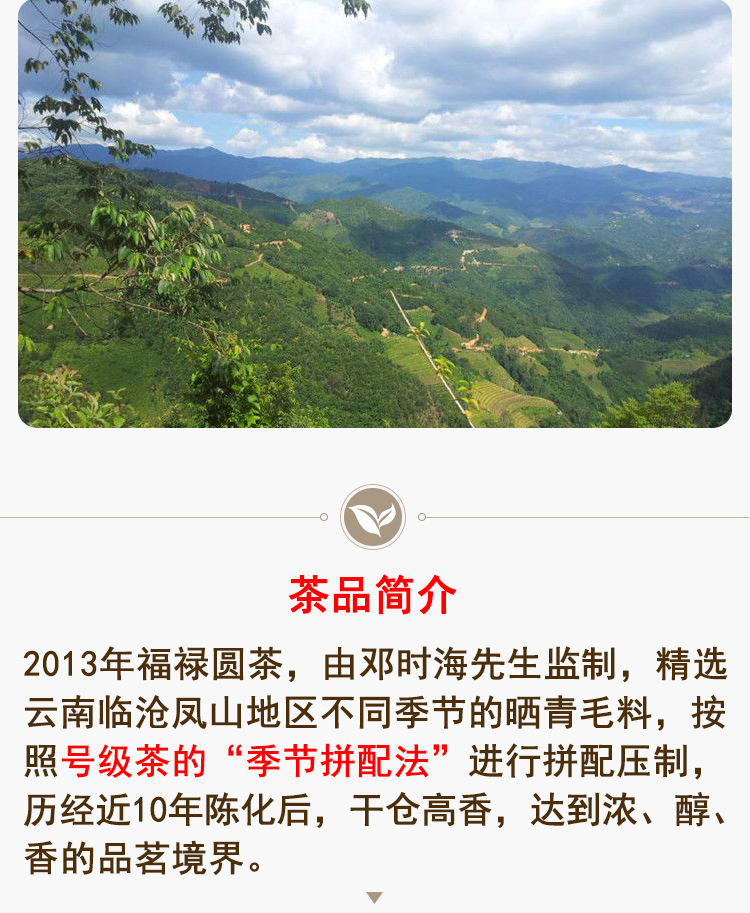 邓时海经典2013年福禄圆茶生茶 印级茶配方 临沧凤庆茶区