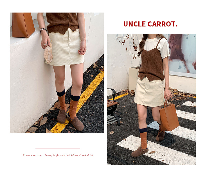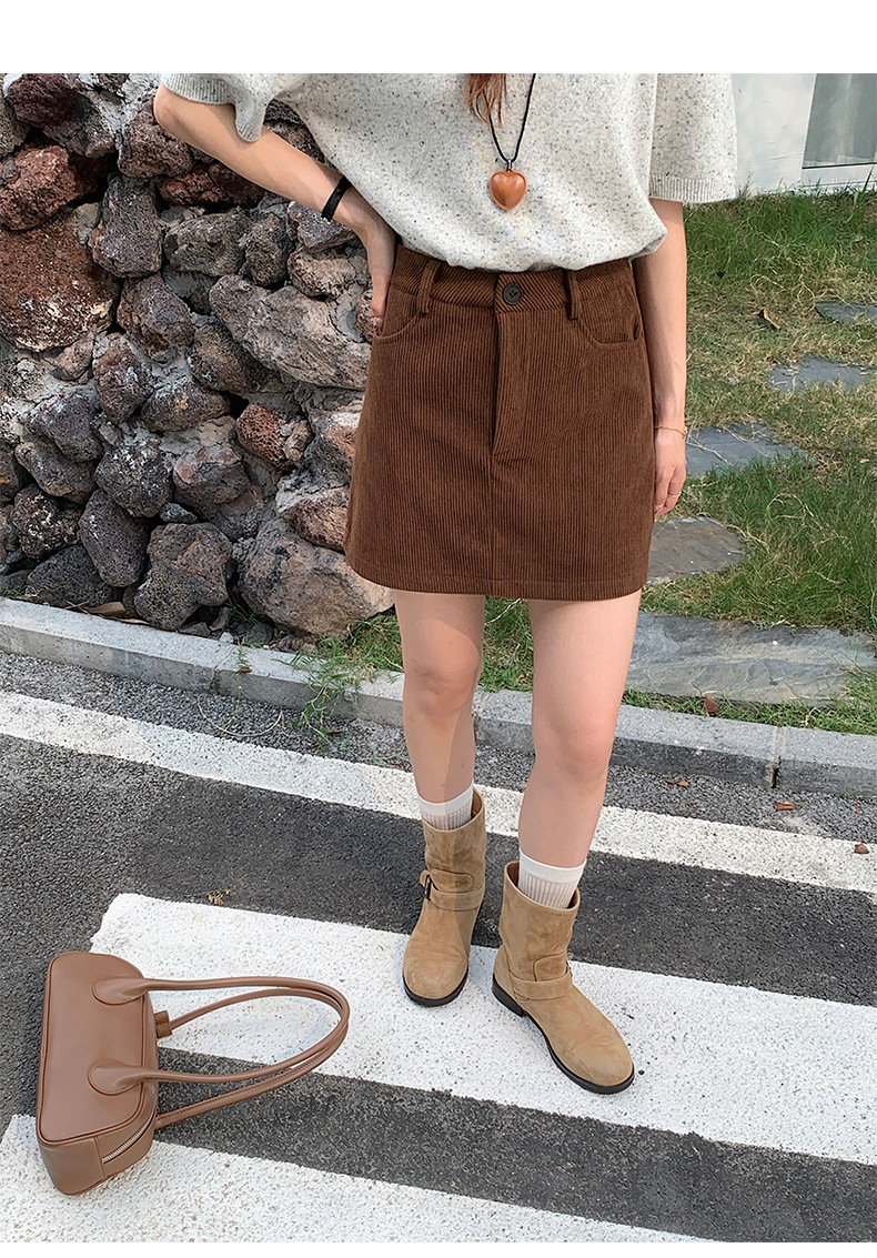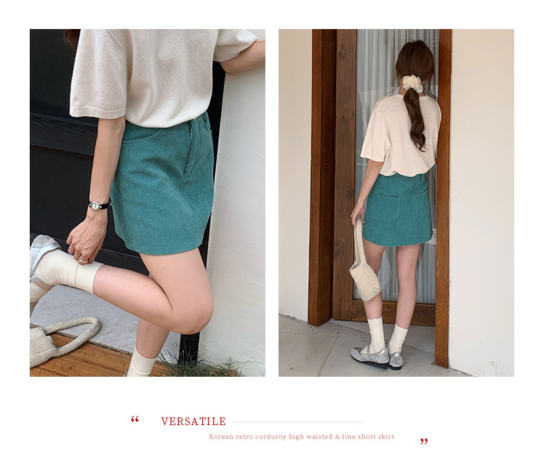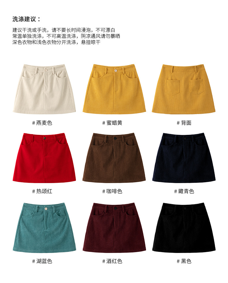 【秒杀】春日里的复古浪漫|软软糯糯的灯芯绒a字短裙 高腰显瘦防走光
