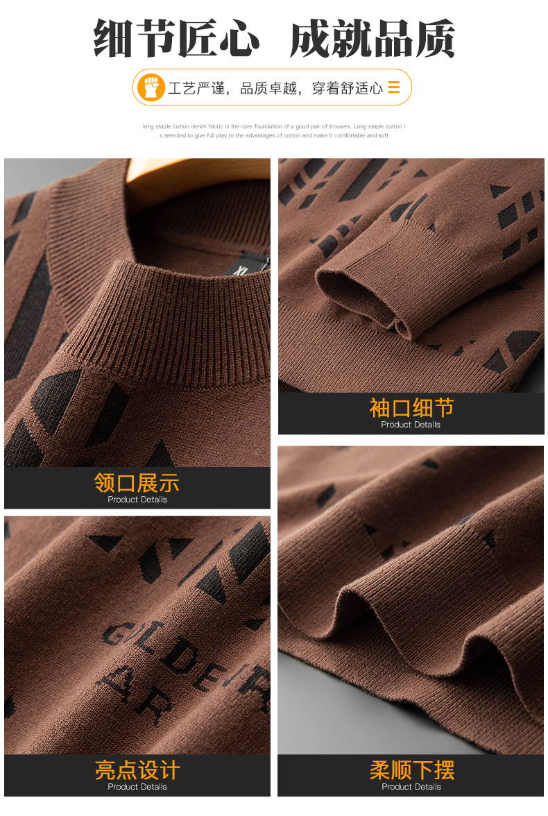 【新款DPF】大依优型大码毛衣针织衫毛衫休闲加肥加大男士胖子大码内搭上衣潮款打底衫