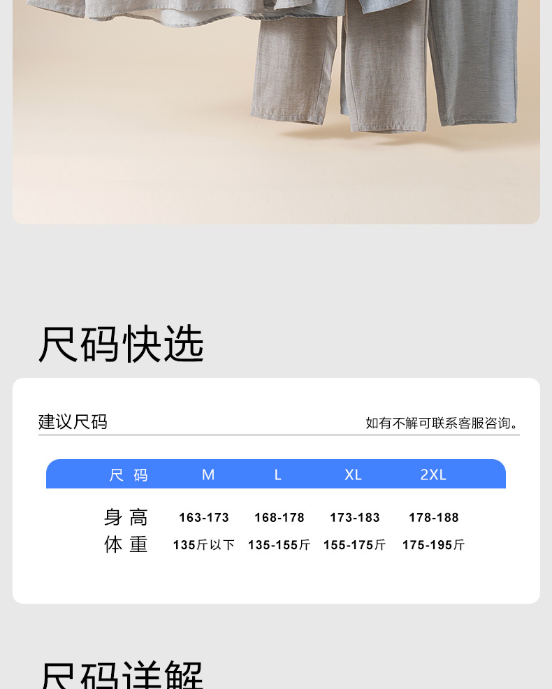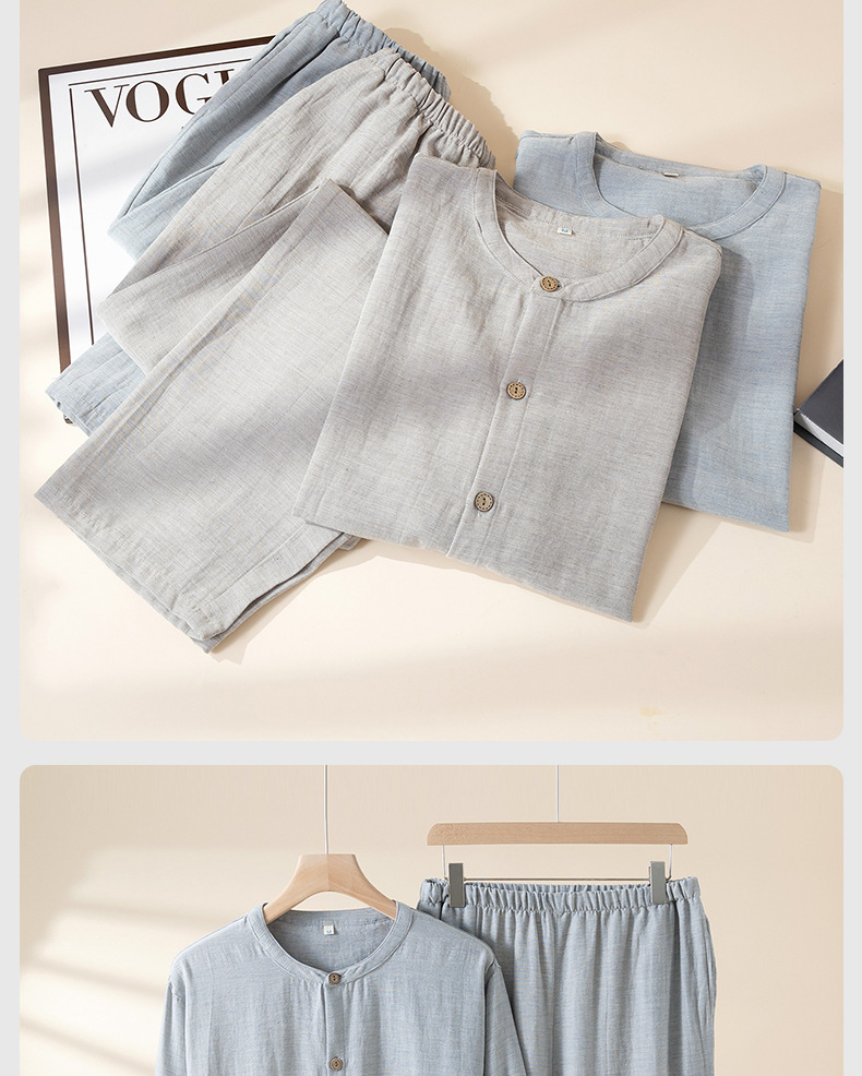 雀说 纯色天丝棉麻男士睡衣长袖薄款家居服套装