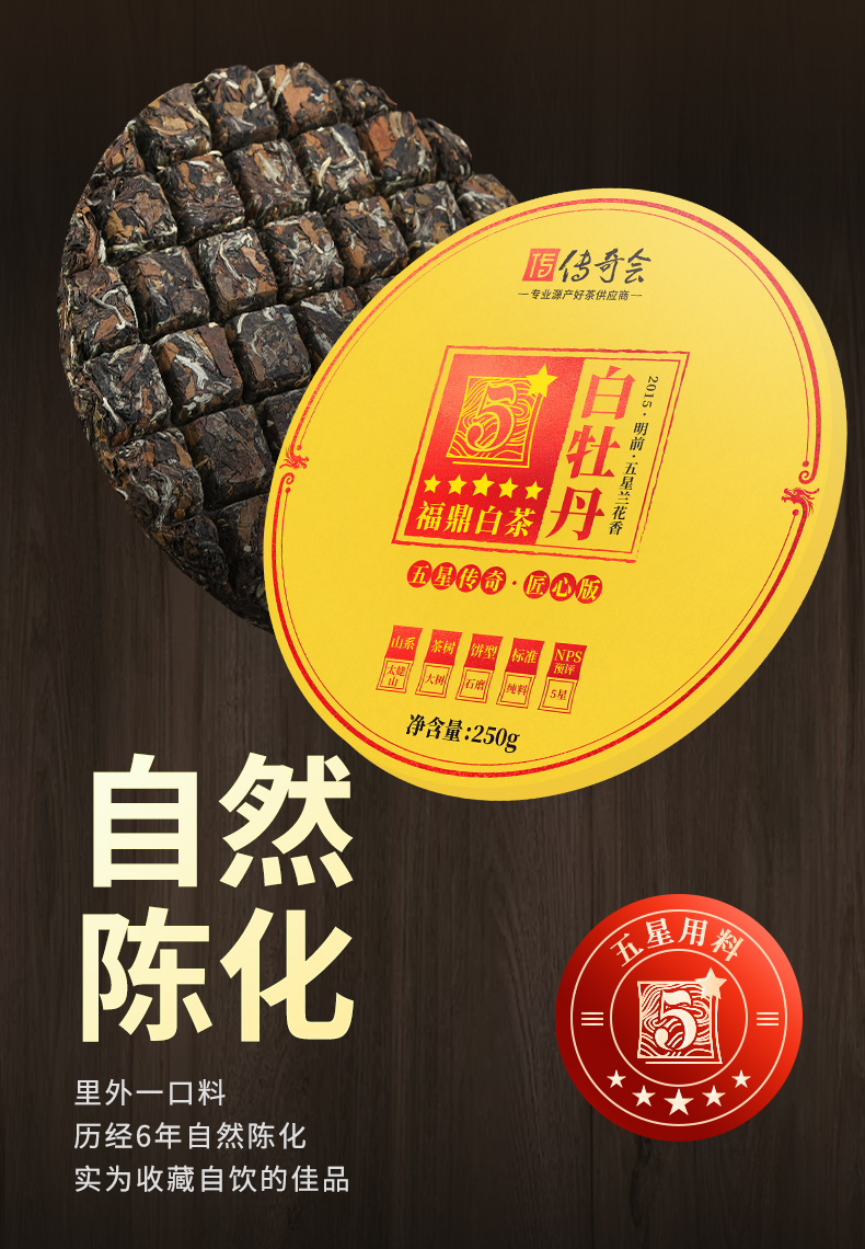 传奇会茶叶 正宗福鼎白茶 白牡丹 高山陈年老白茶饼装共500g(250g*2)礼盒装