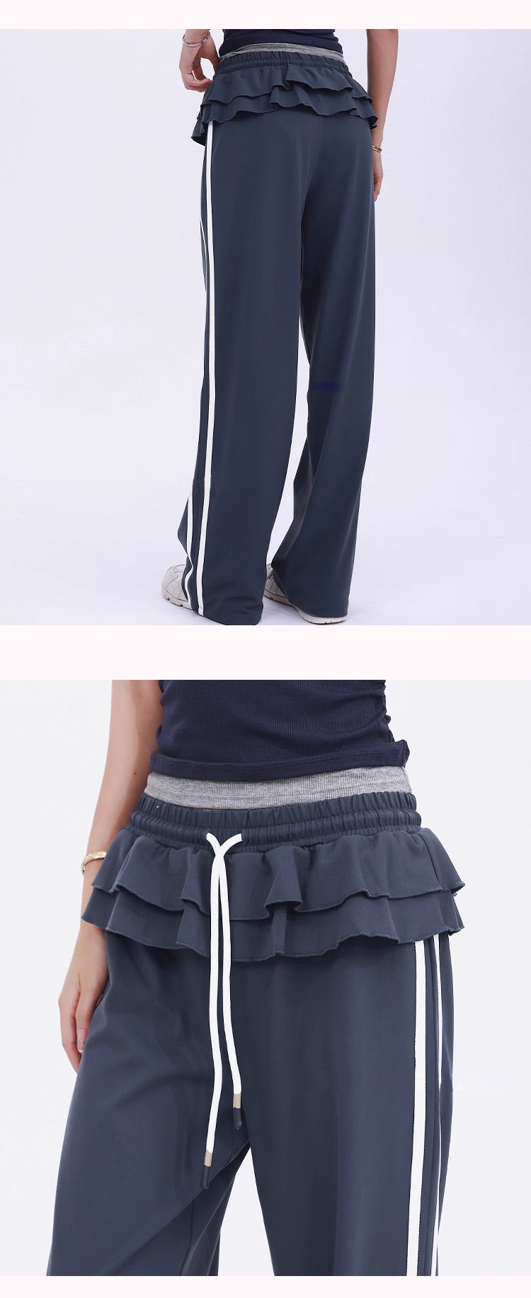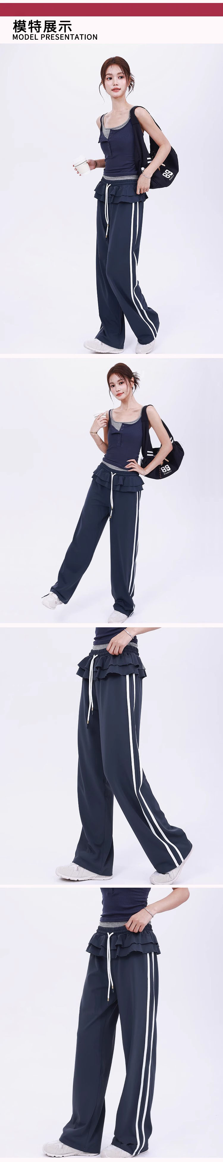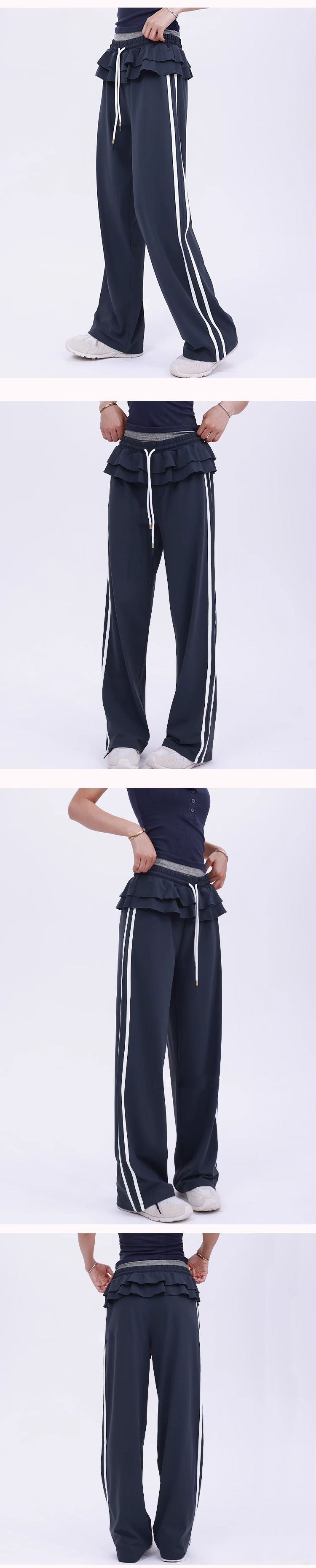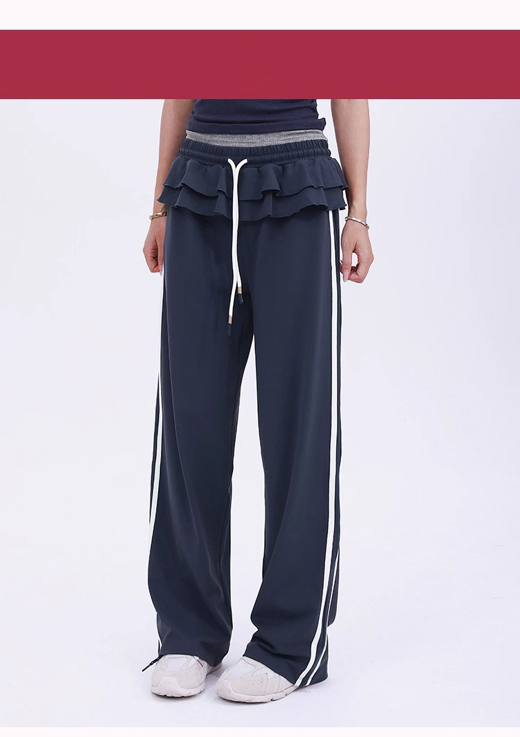 【限时秒】YOGACODE【火树银花系列】松弛百搭运动裤休闲女荷叶边设计芭蕾风时尚款侧边条纹直筒阔腿裤DWL125619