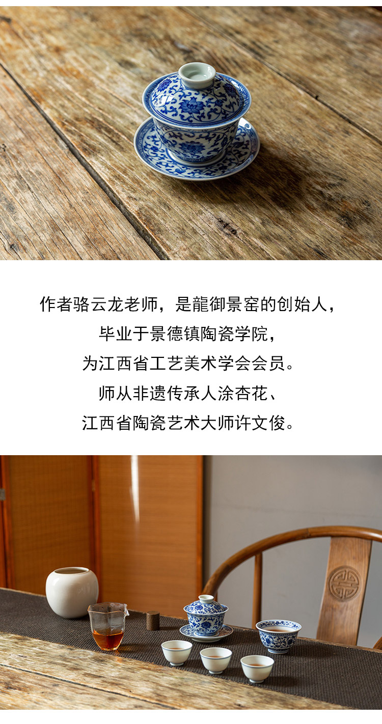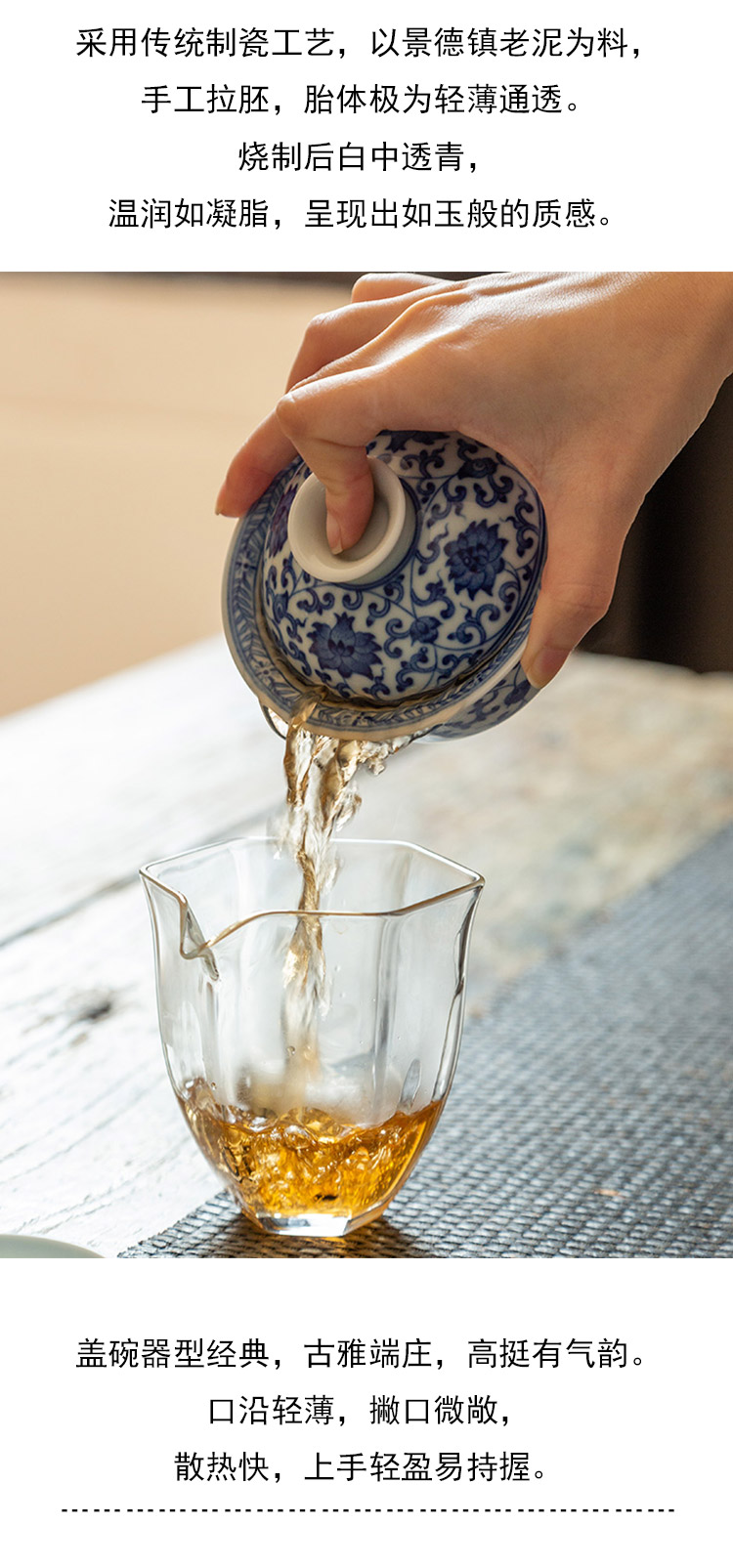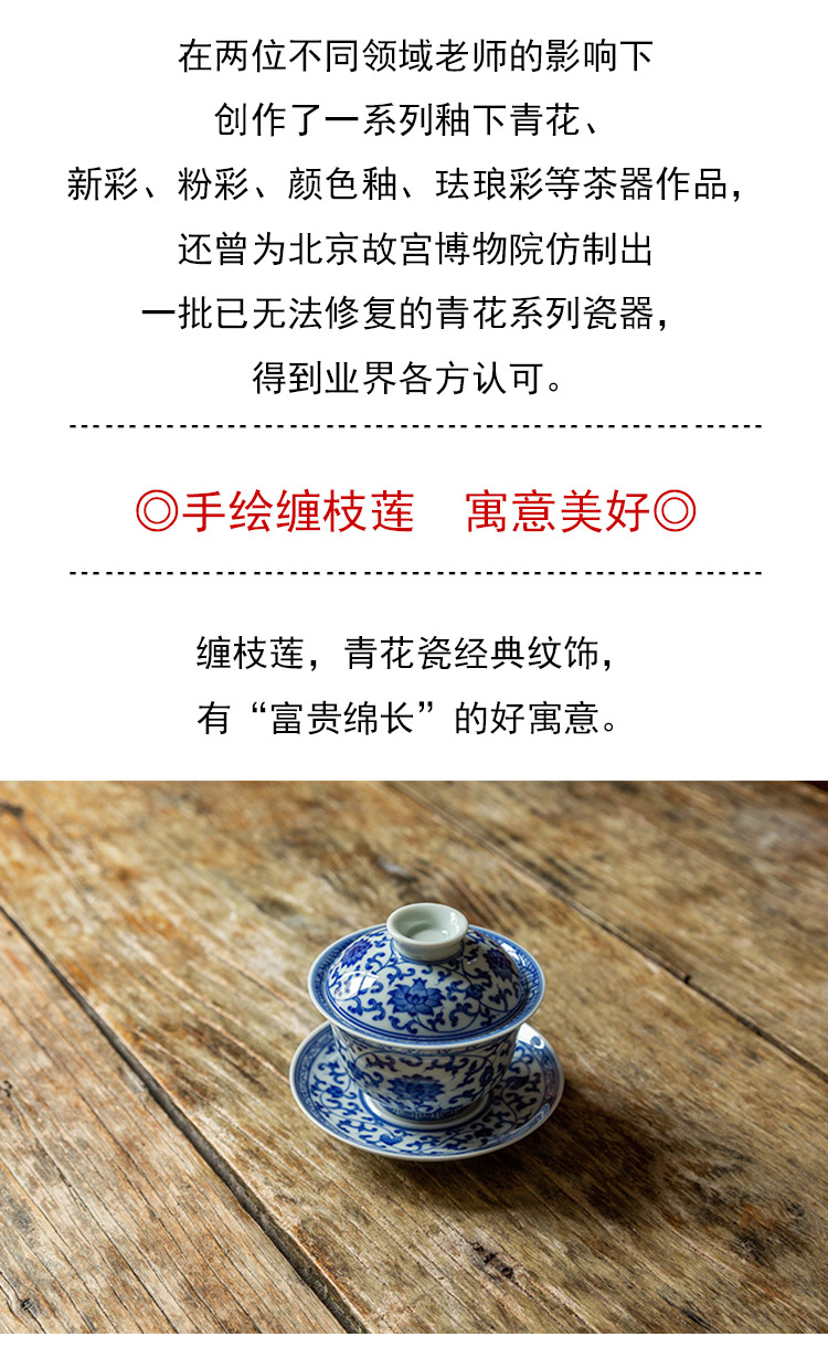 茶香记 手绘青花 缠枝莲盖碗 龍御景窑 古法柴烧 古典雅致 端庄大气