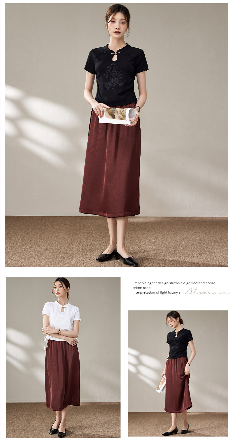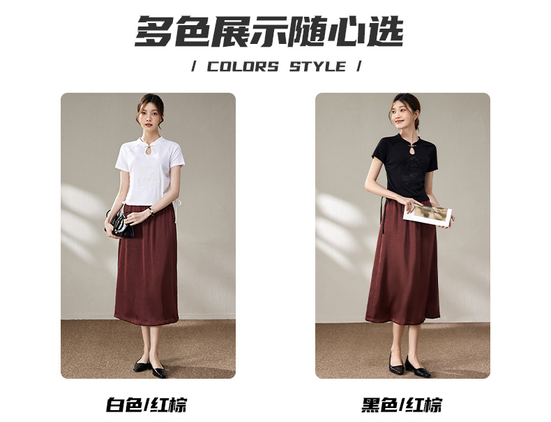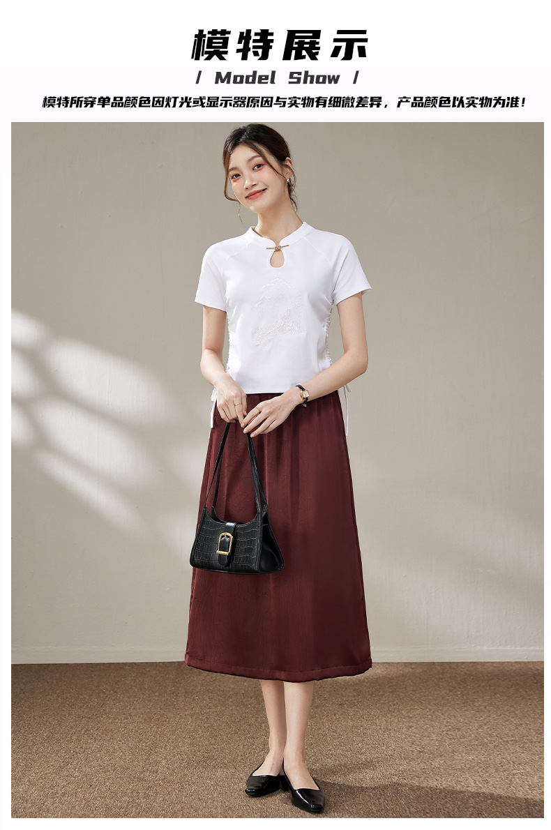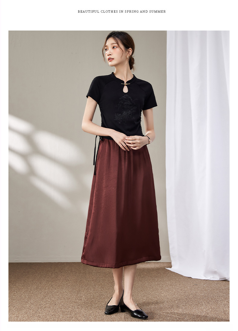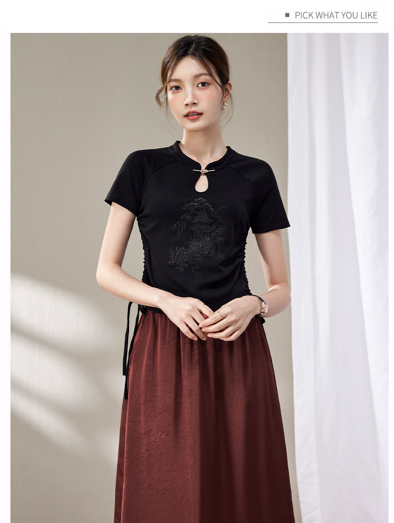 热卖中!!2026 新中式国风套装女 T恤显瘦遮胯A字长裙套装 刺绣盘扣短袖简约气质休闲百搭