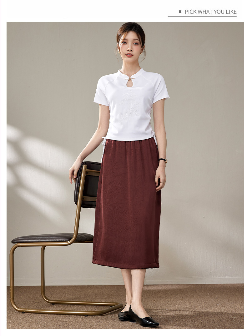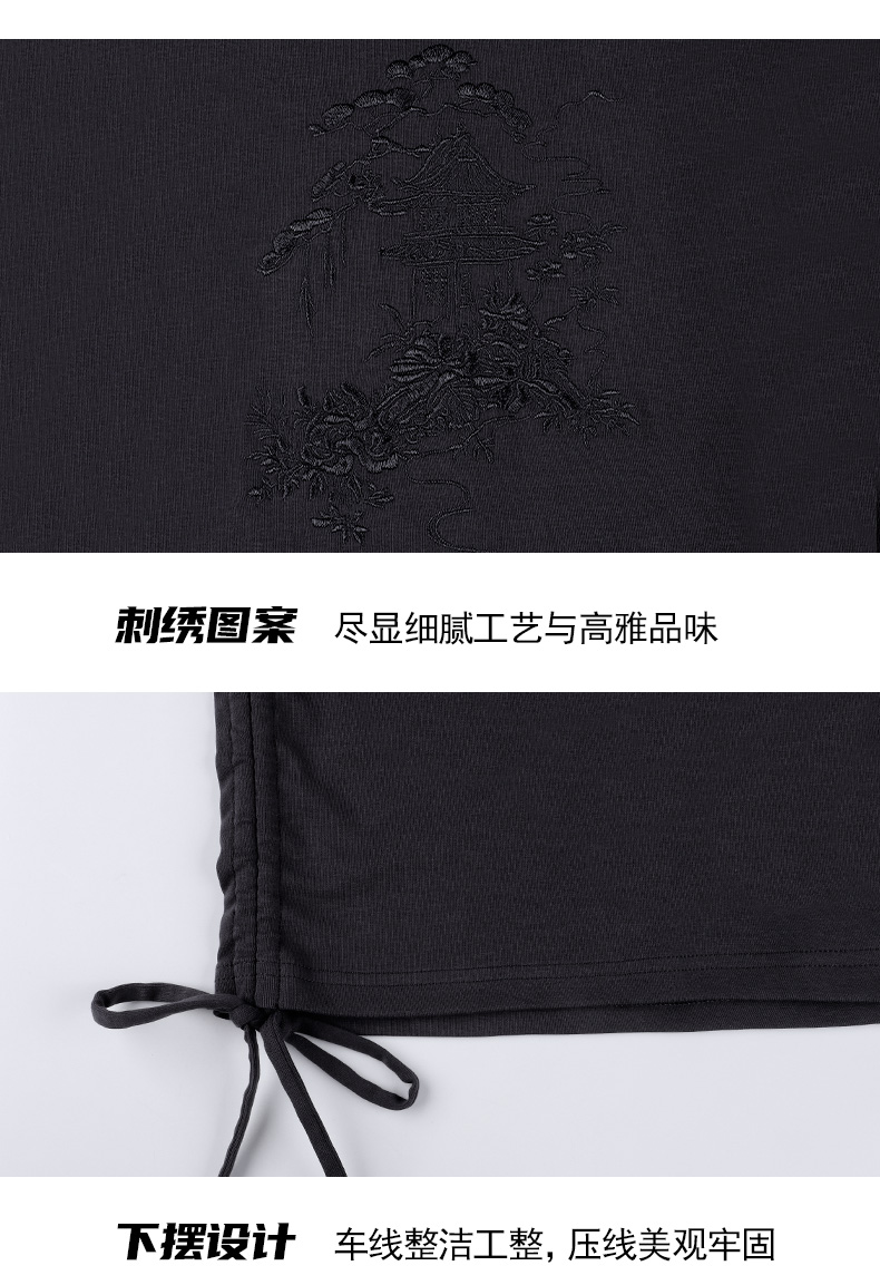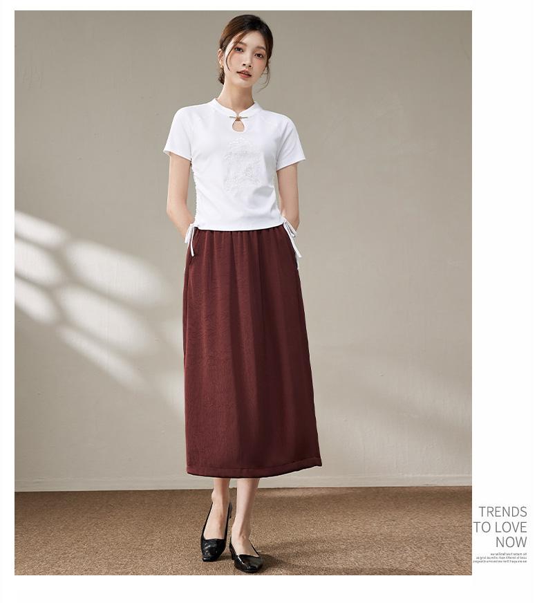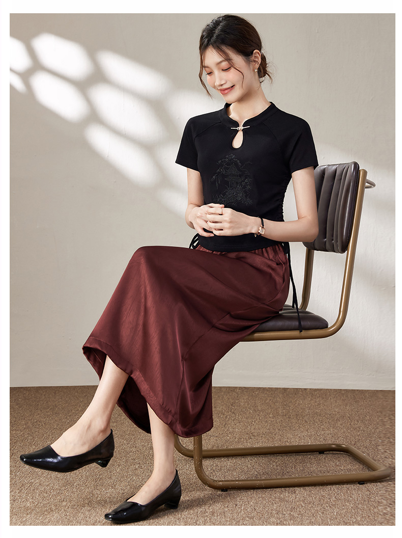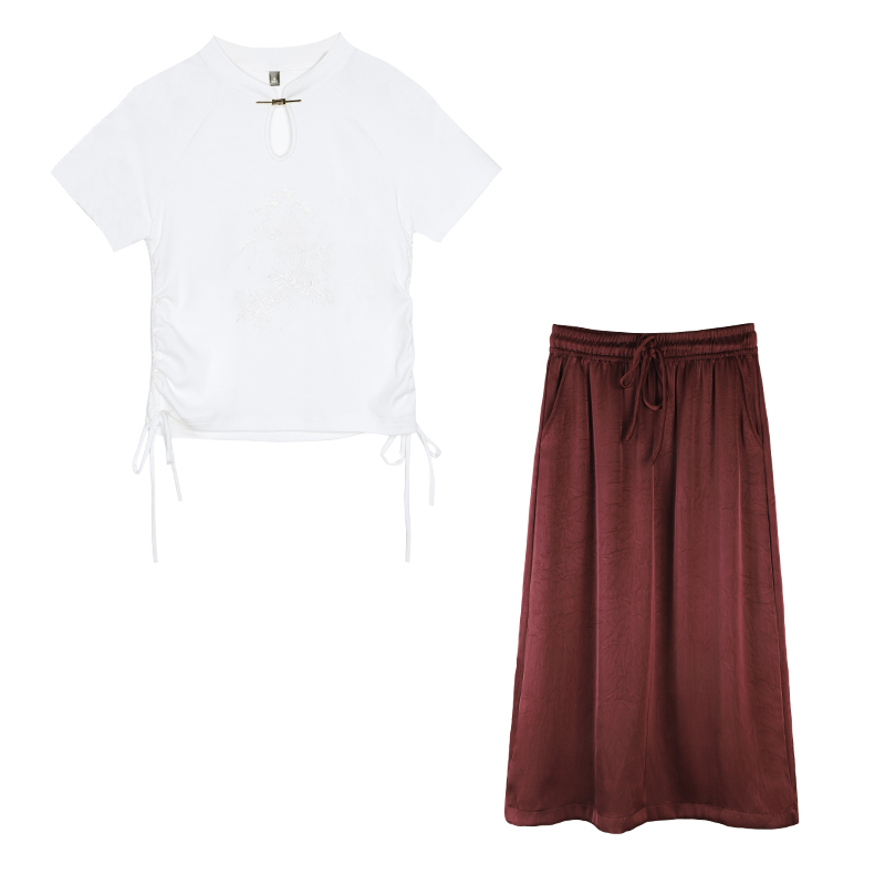 热卖中!!2026 新中式国风套装女 T恤显瘦遮胯A字长裙套装 刺绣盘扣短袖简约气质休闲百搭