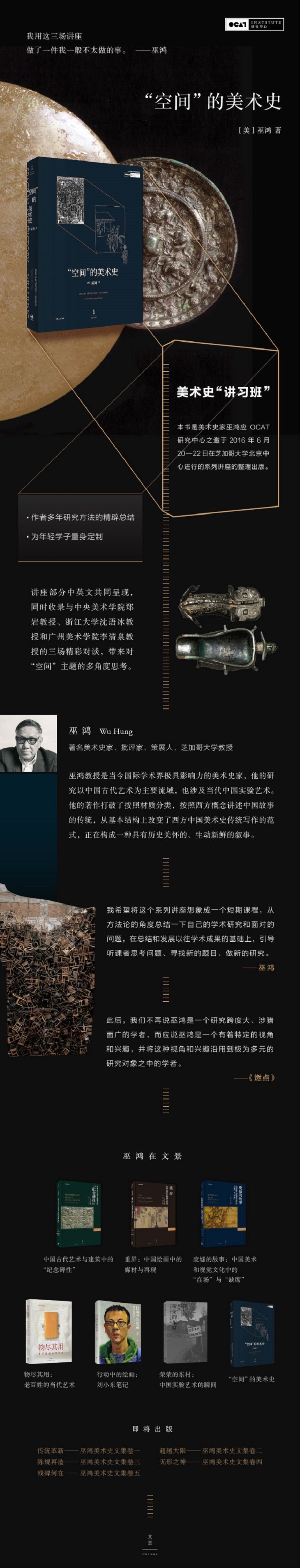 《“空间”的美术史》是巫鸿教授应OCAT研究中心之邀于2016年6月20—22日在芝加哥大学北京中心进行的系列讲座的整理出版。