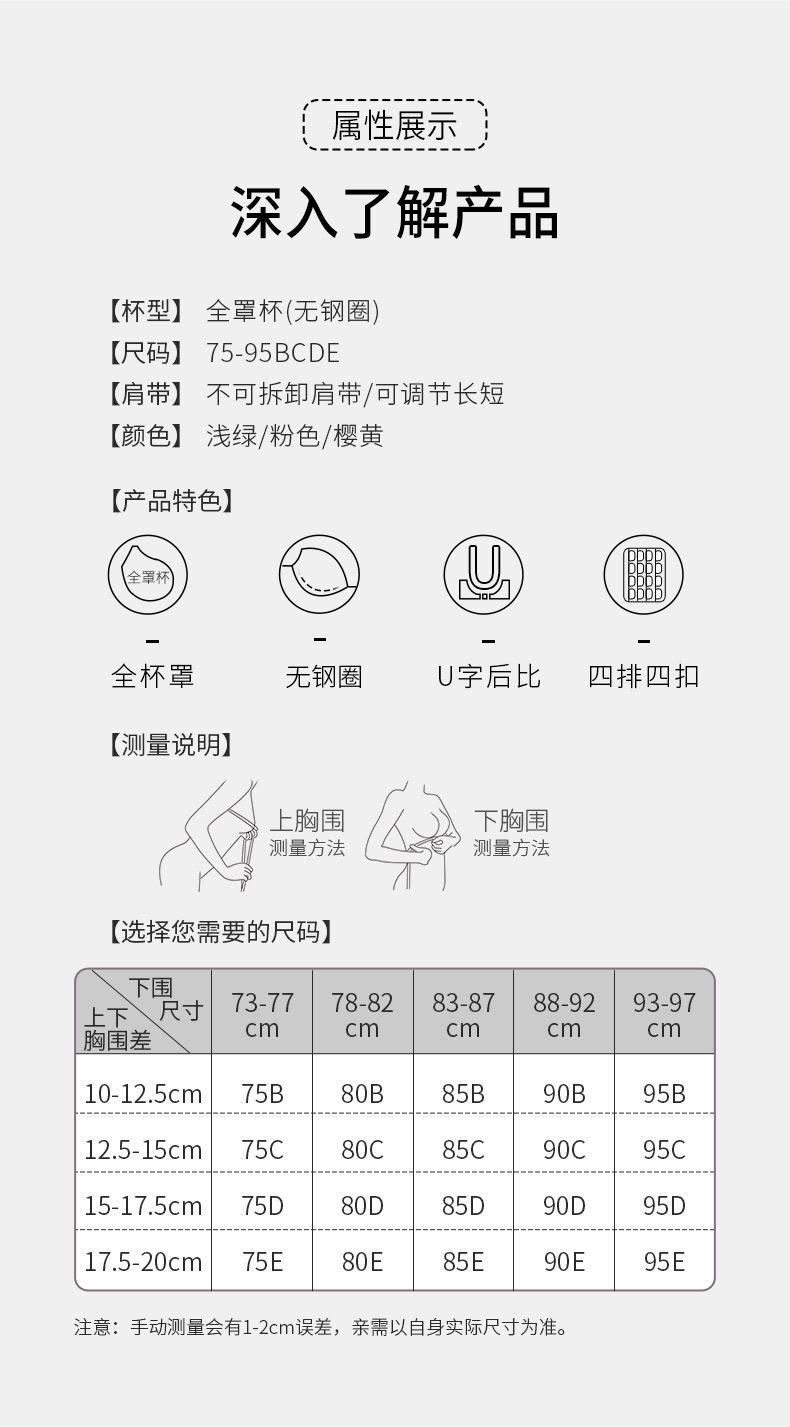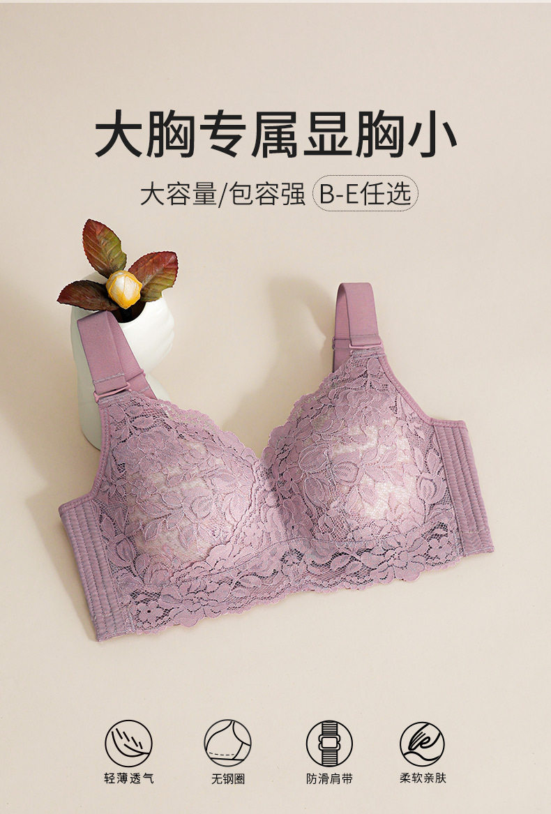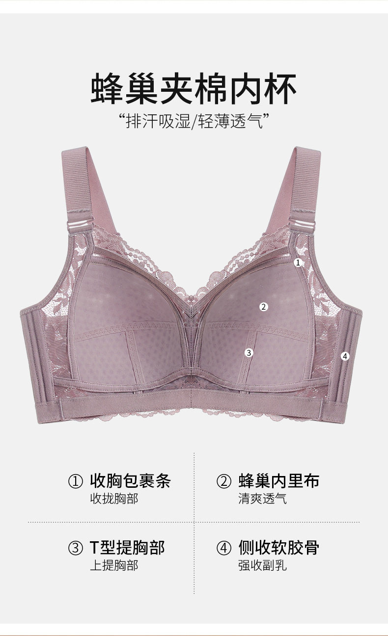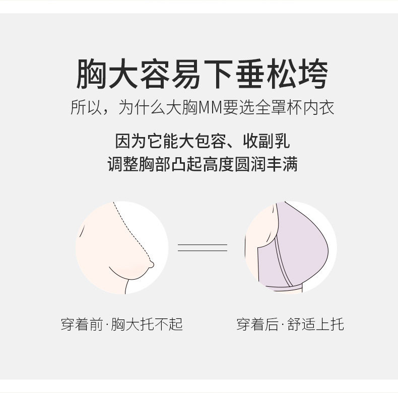 QC-W6190* 内衣女大胸显小超薄款夏轻薄收副乳防下垂全罩杯调整型大码文胸(单件)
