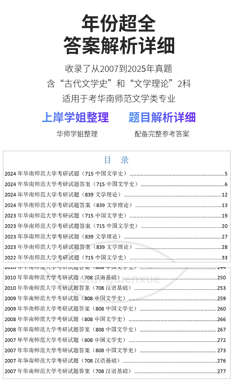 27版华南师范文学考研历年真题及答案详解2007-2026年,共20年40套 含视频课程全年答疑