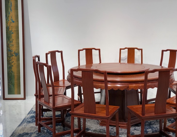 中国自古就有天圆地方的说法,圆形能聚集人气,一家人围坐在一起,显得亲密无间,圆餐桌也象征着圆满祥和团结,团团圆圆,加之座位之间临近,让人感觉亲切、温馨。