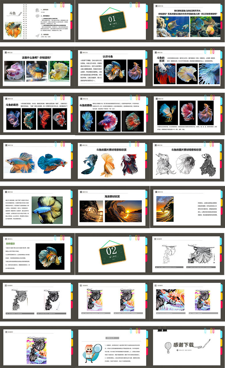 观察斗鱼的图片素材,了解斗鱼的外形特征,运用线描的方式表现出斗鱼的外形,刻画出斗鱼的鳞片和斗鱼尾巴的纹理,注意线条的疏密变化,让画面更加生动、自然。