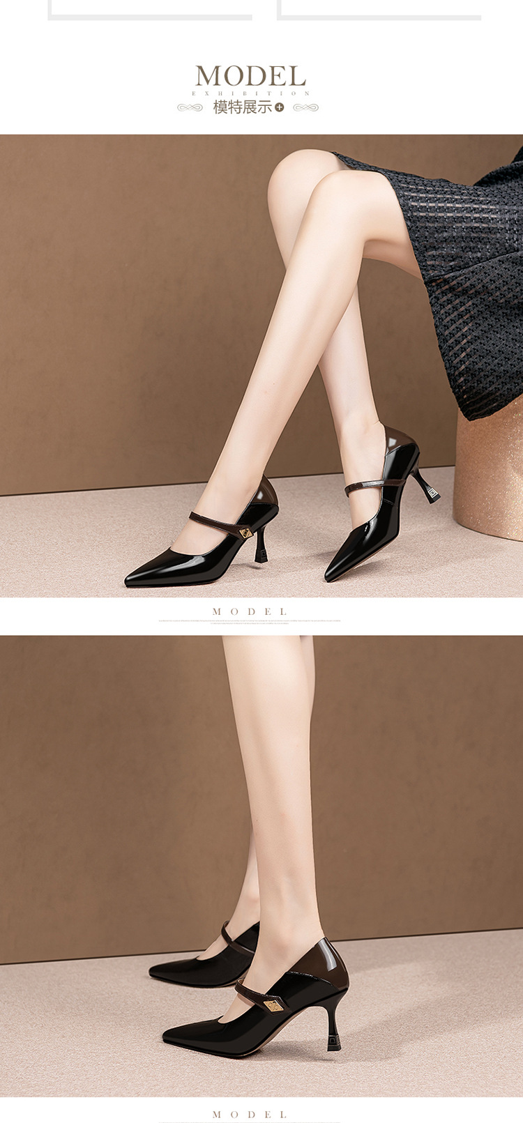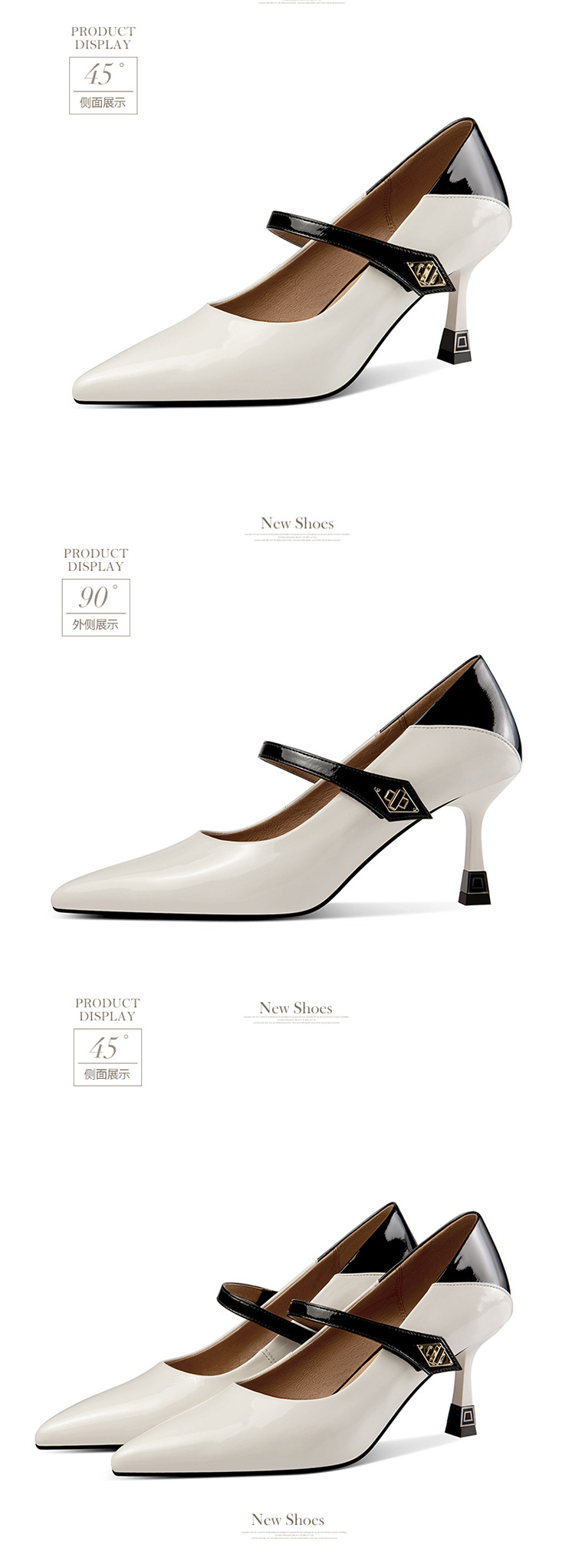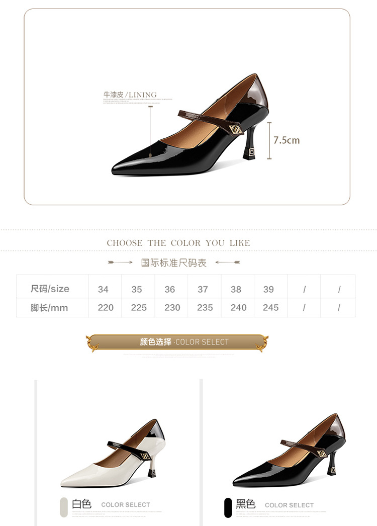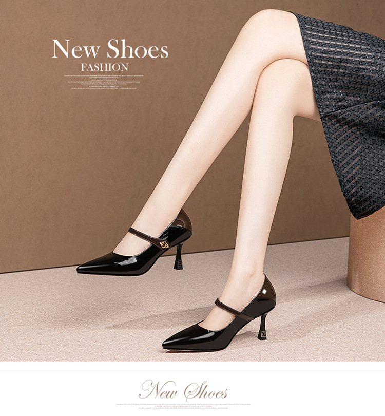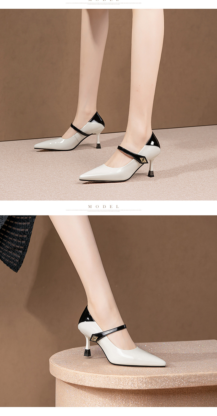 OLD-H3189拼色高跟鞋女夏款尖头法式羊皮不累脚一字扣单鞋女高跟玛丽珍鞋子