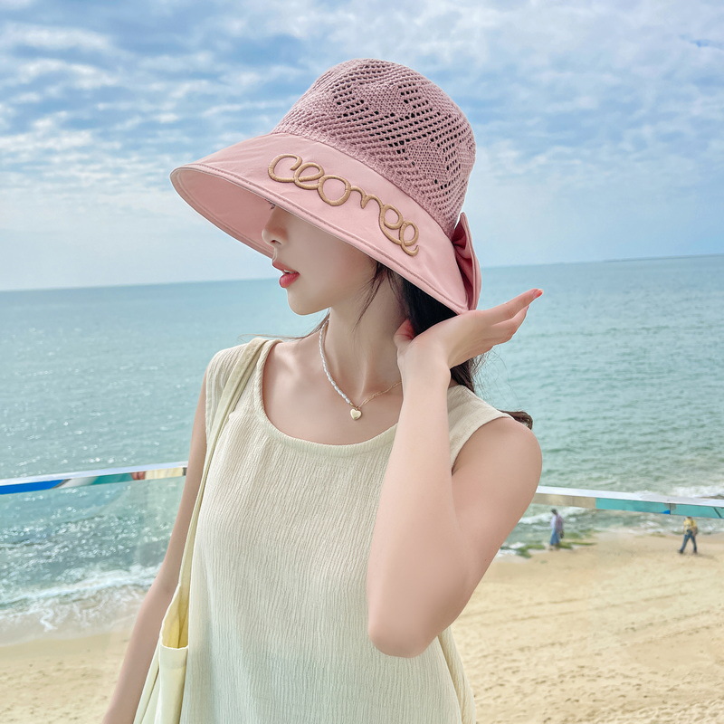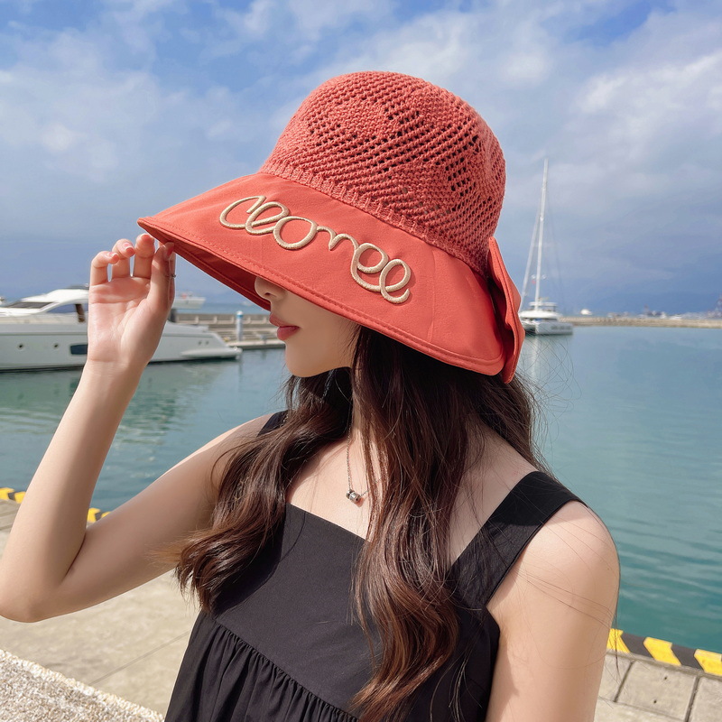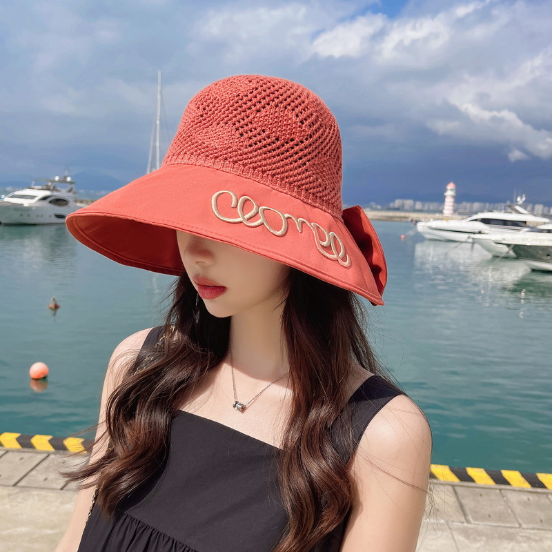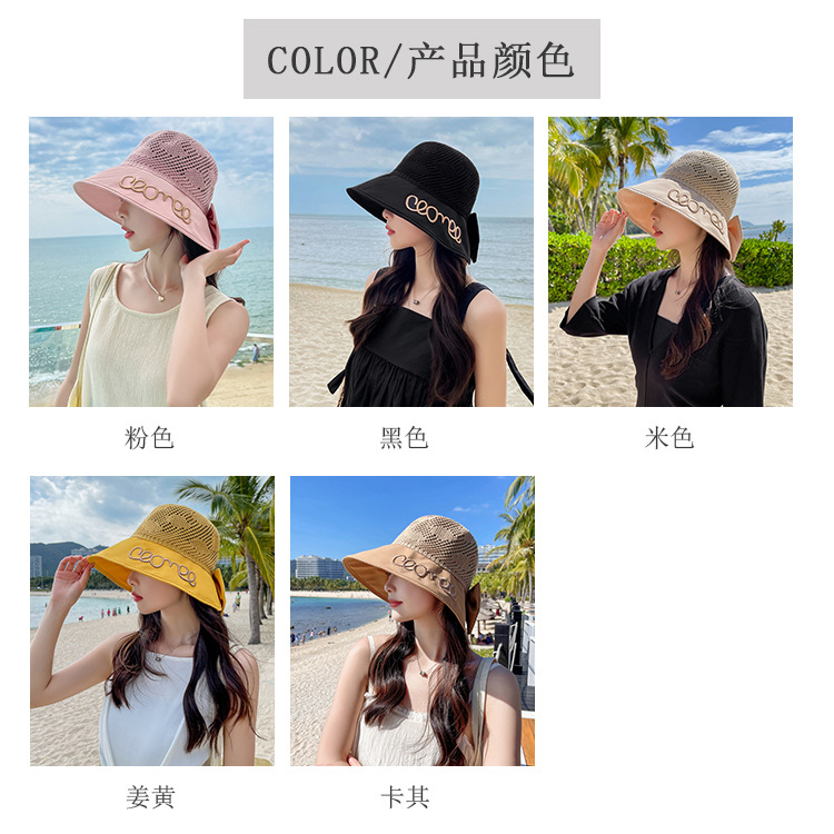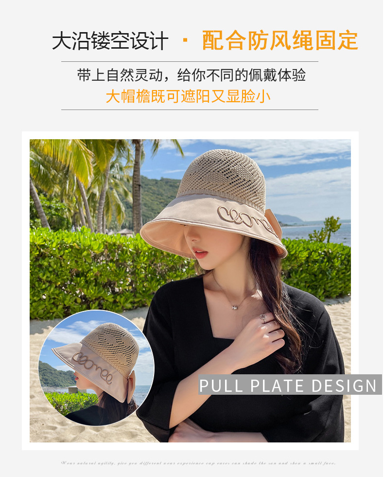 QM-QM000706(xfy)夏季沙滩帽 大檐蝴蝶结遮阳帽镂空渔夫帽子户外盆帽太阳帽女