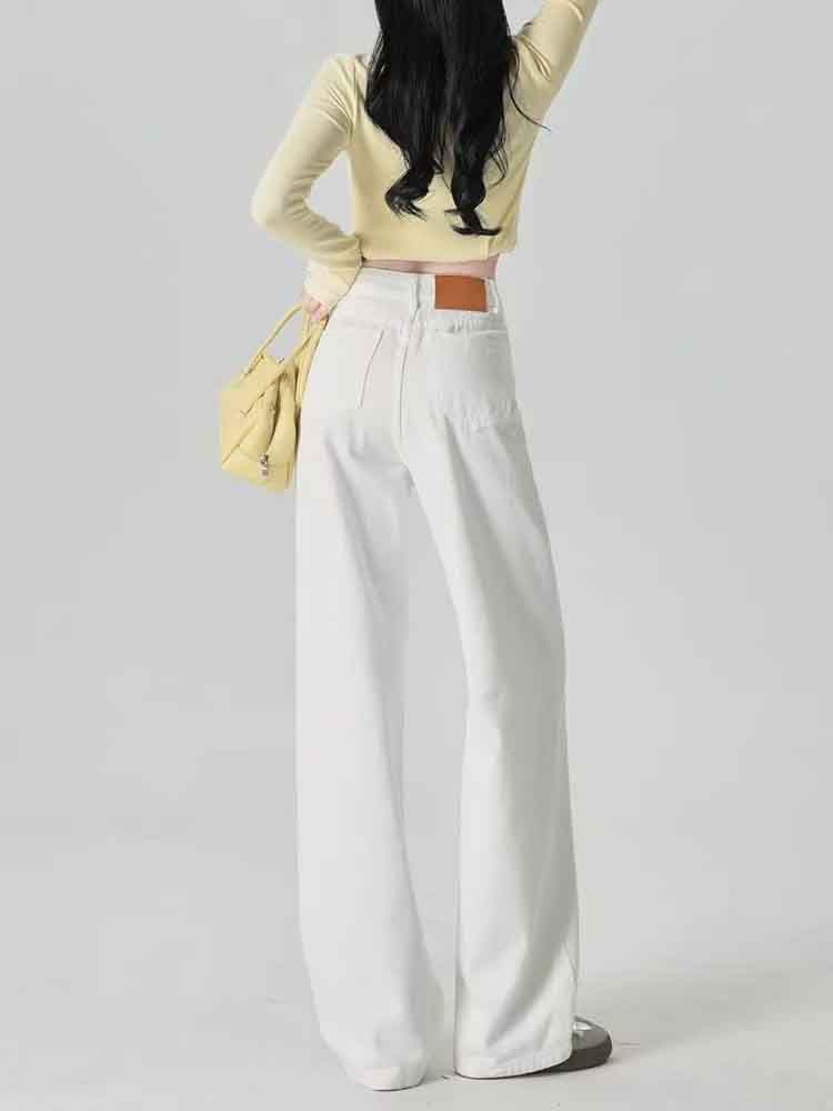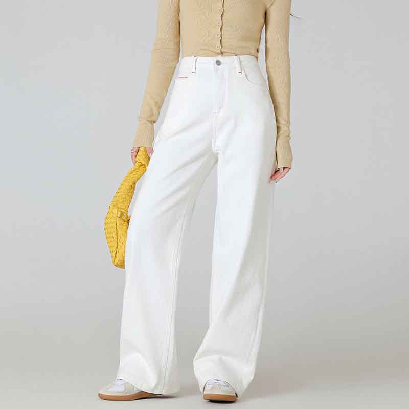 顺丰包邮洛诗琳11654洛诗琳春季新款百搭白色高腰阔腿牛仔裤25231