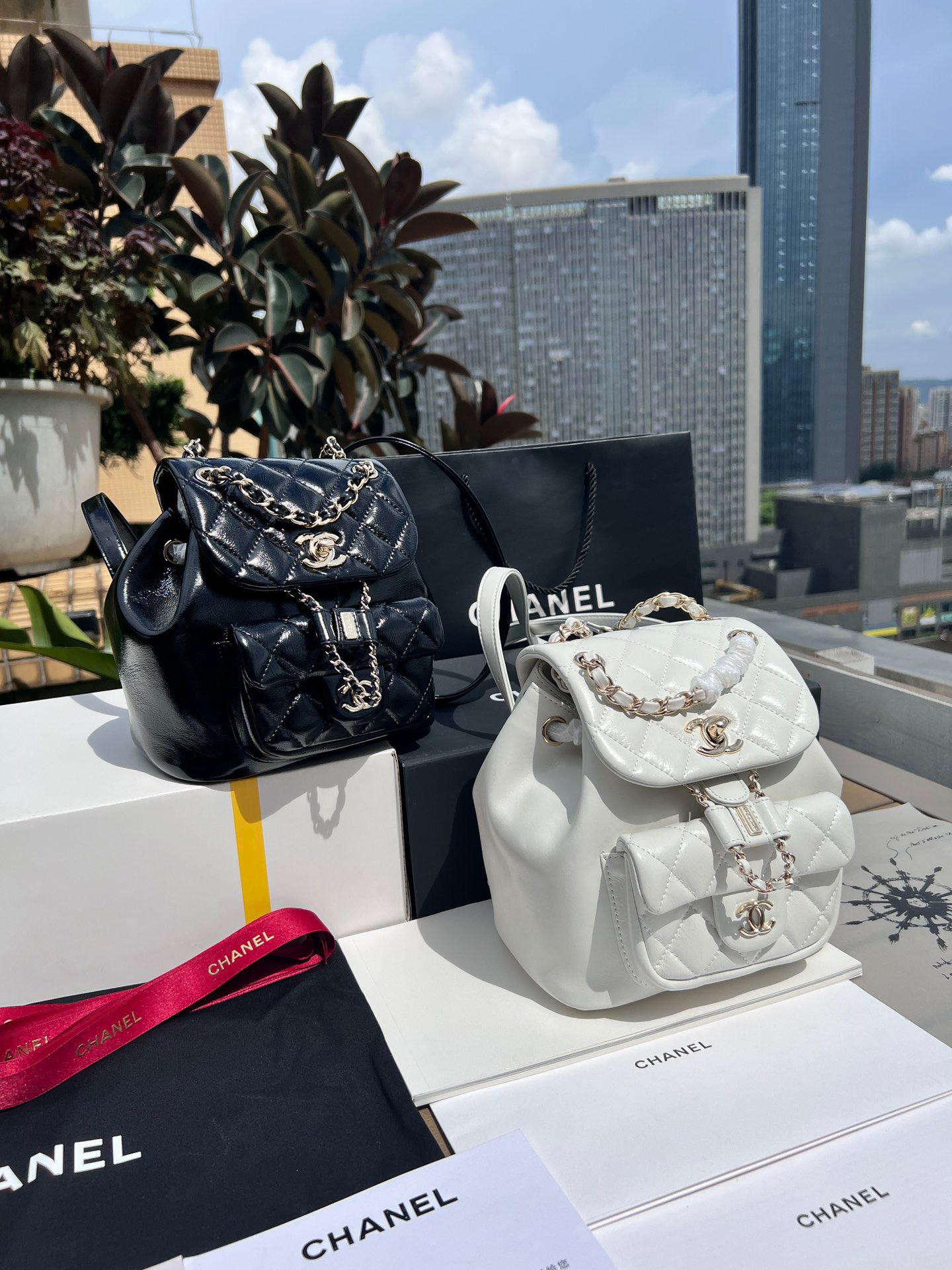 双C logo菱格纹和皮穿链的经典元素!