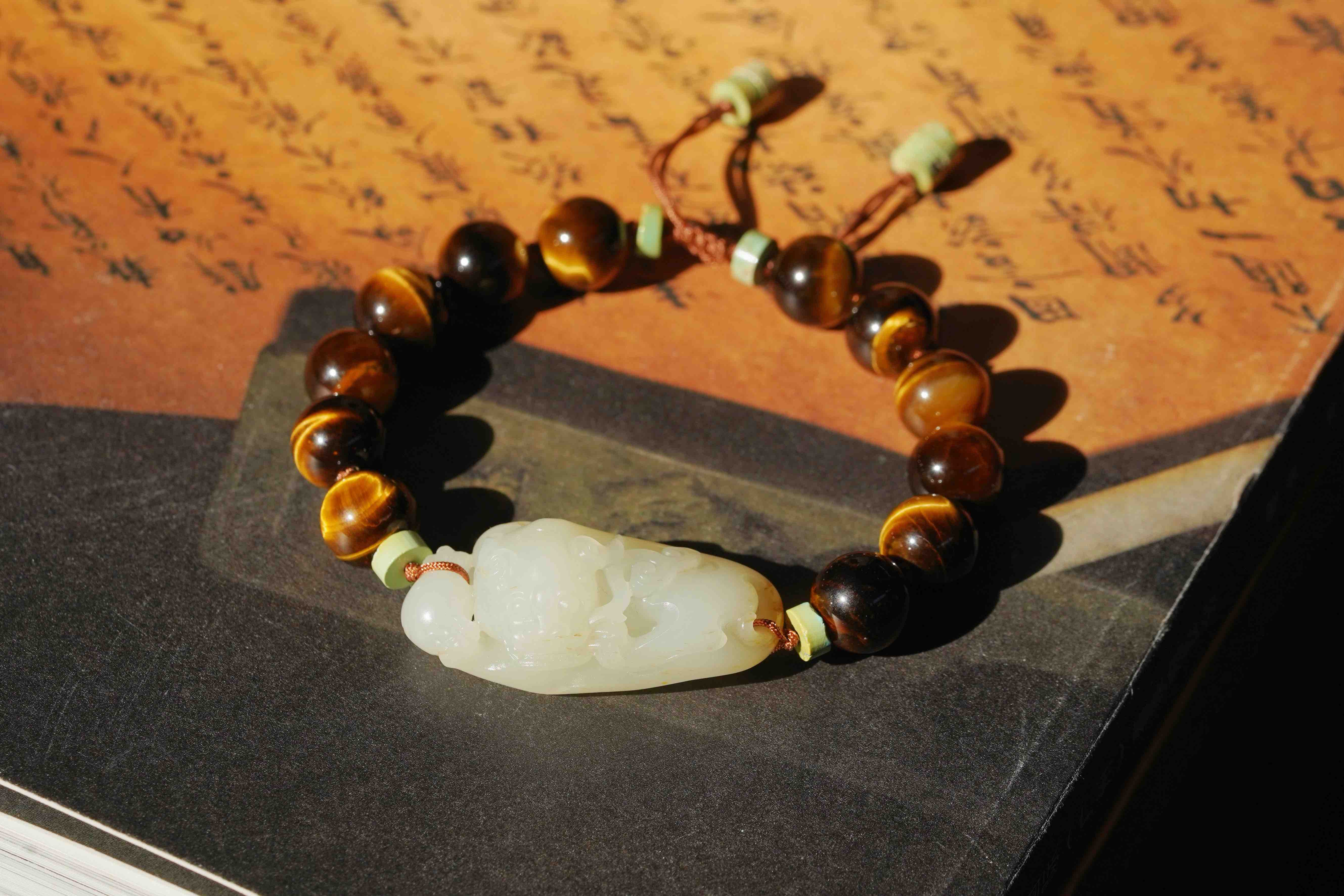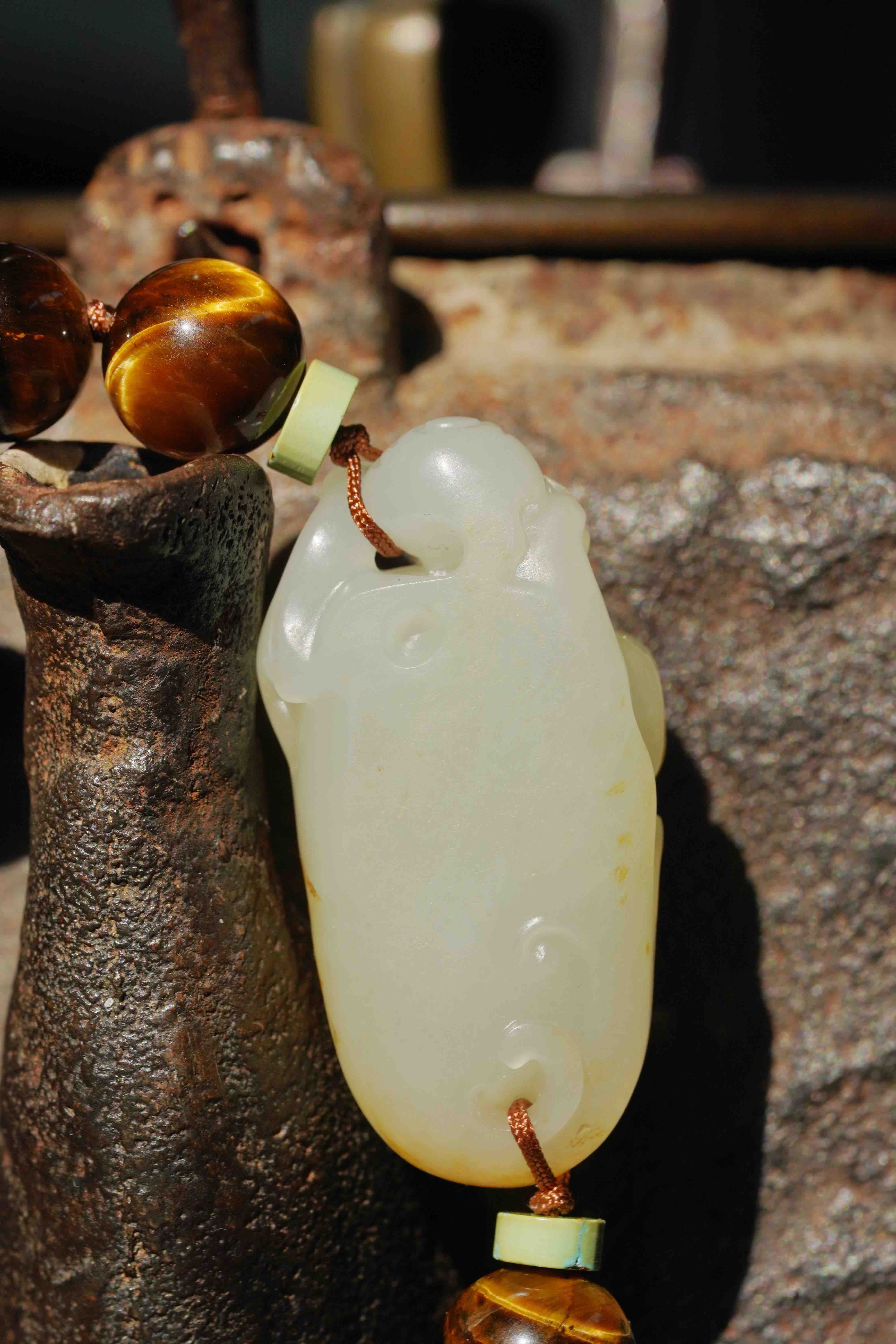 和田玉瑞兽虎眼石