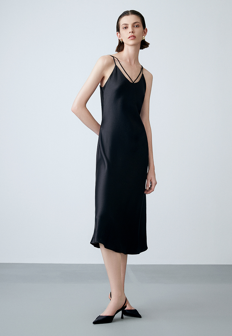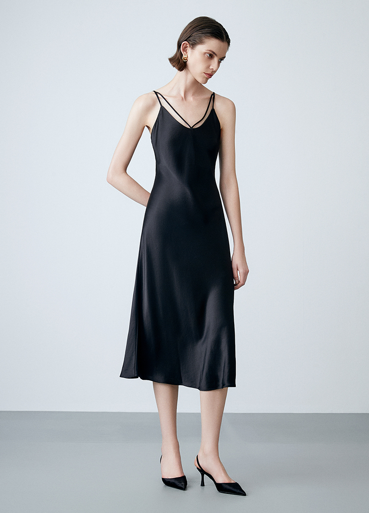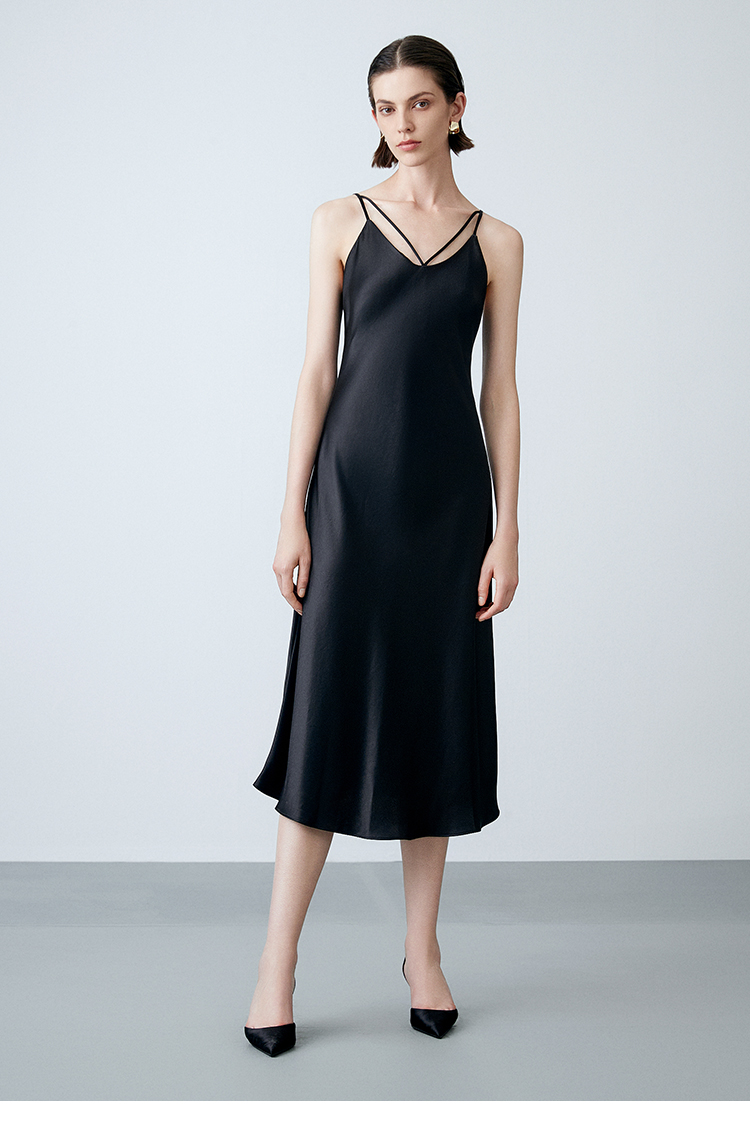 EITIE爱特爱夏季新品轻薄纯色大方吊带连衣裙7807502
