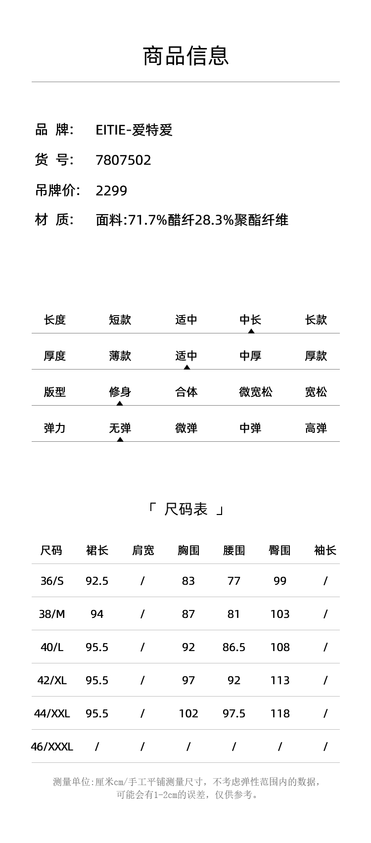 EITIE爱特爱品牌女装秋款优雅纯色日常婚宴礼服中长款A字裙5877509