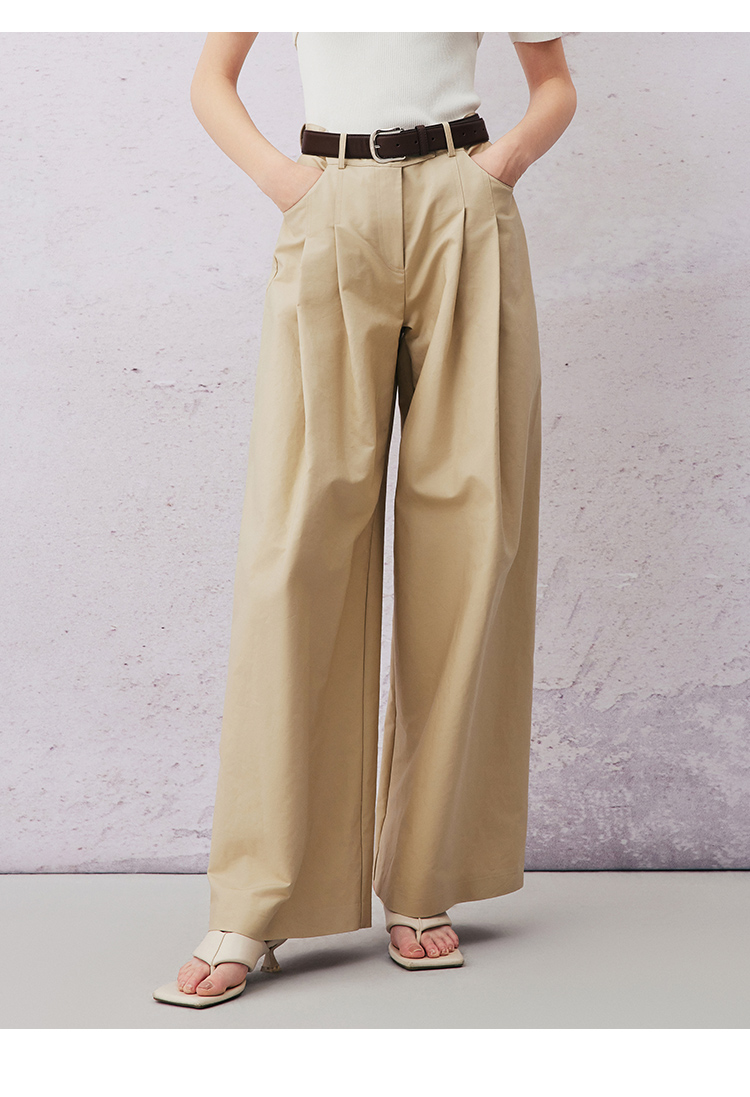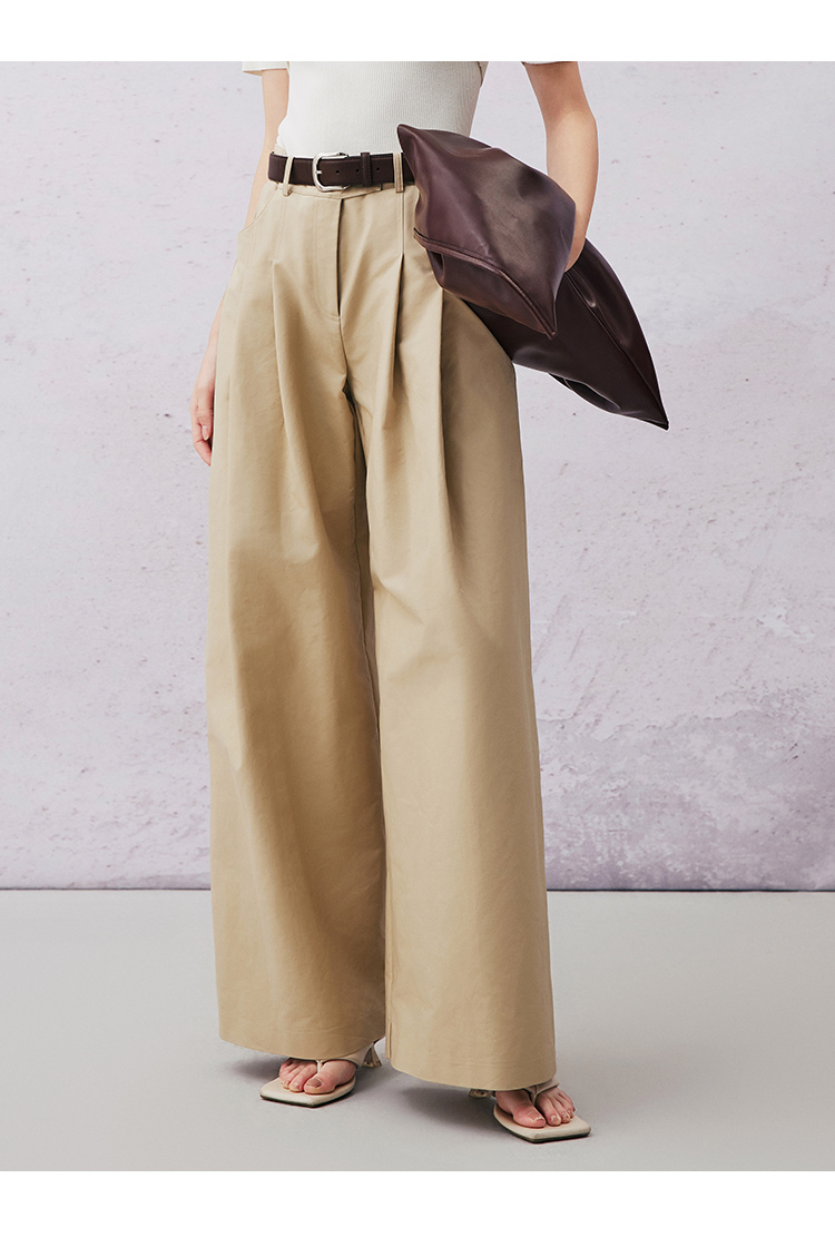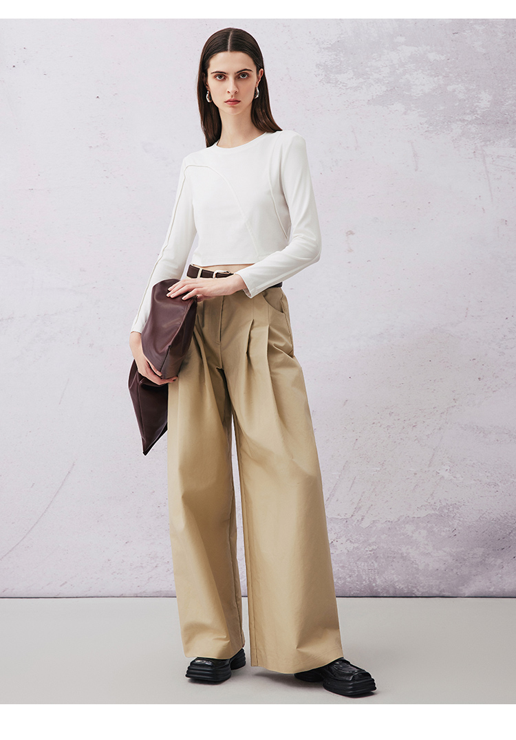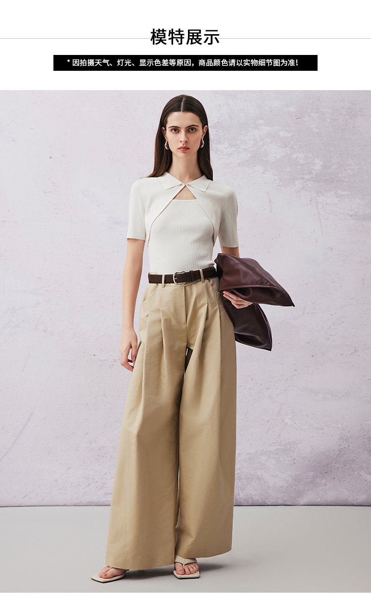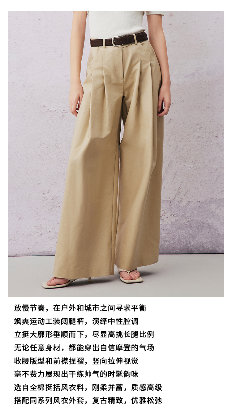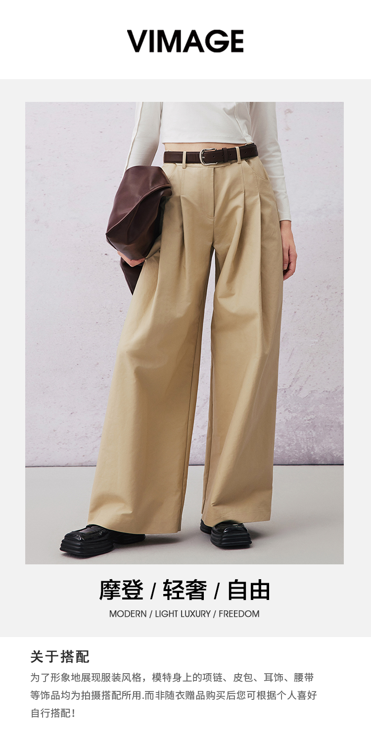 VIMAGE纬漫纪春季新款高腰阔腿宽松舒适休闲裤V2105705