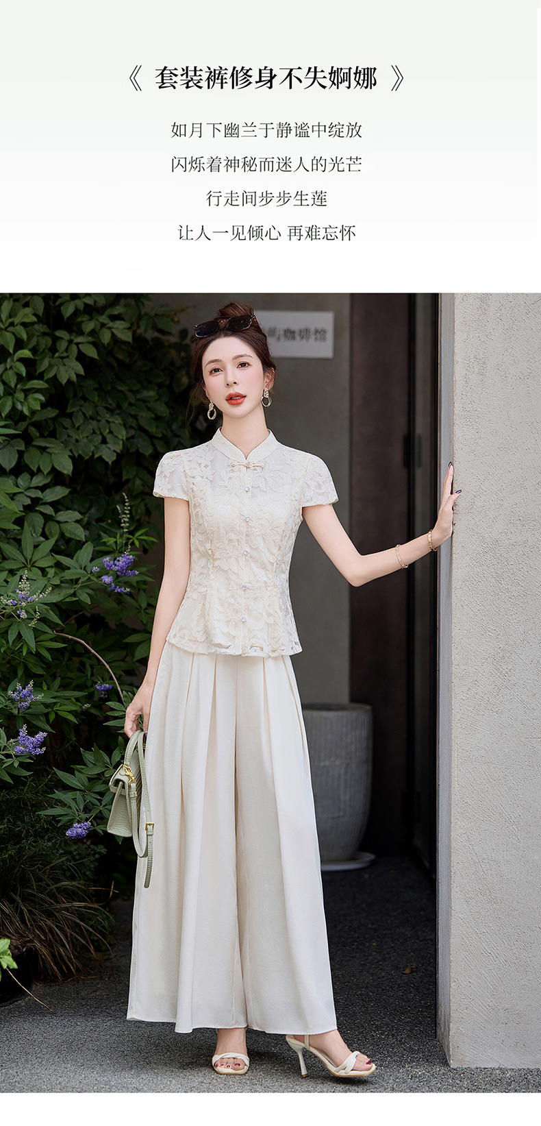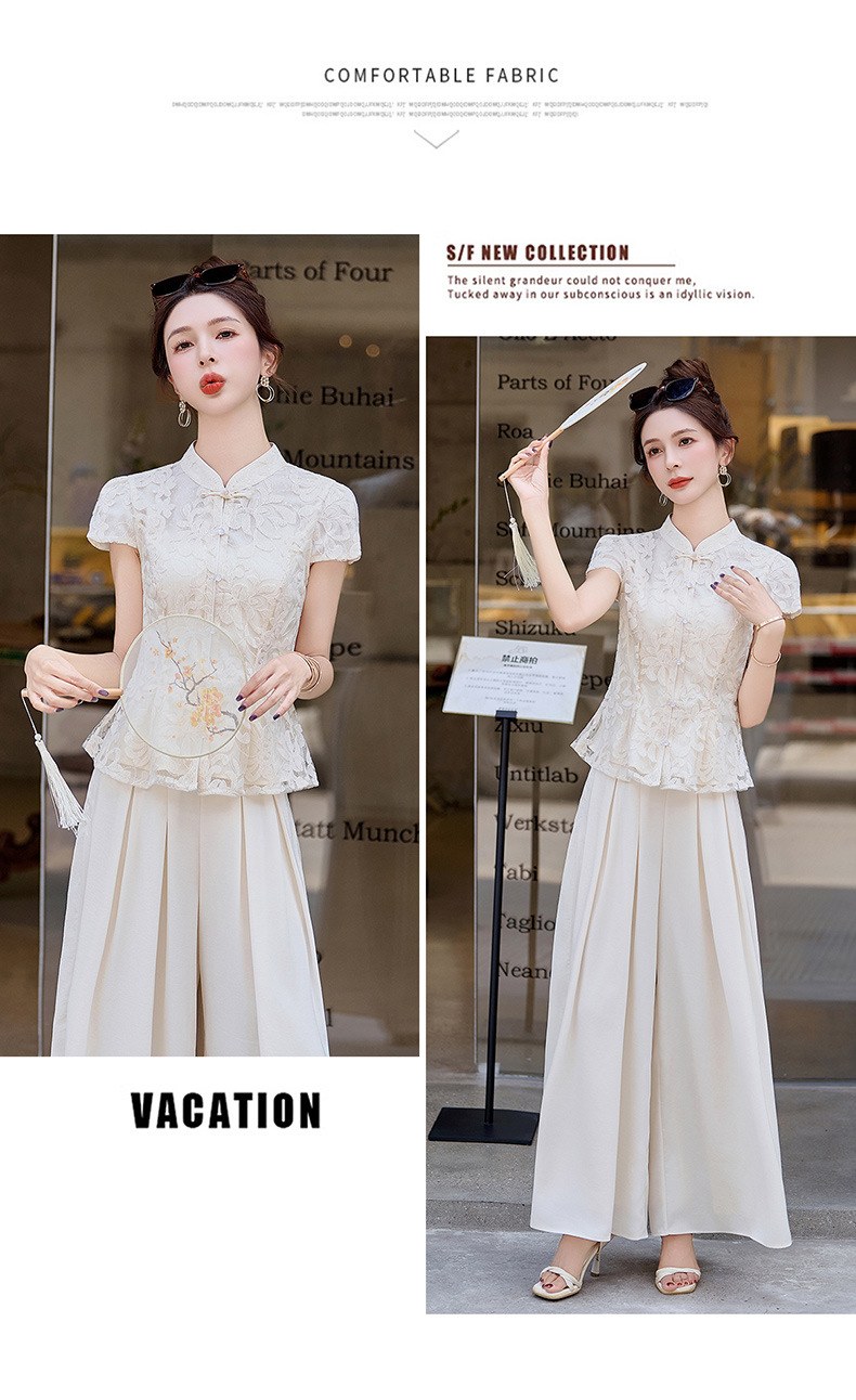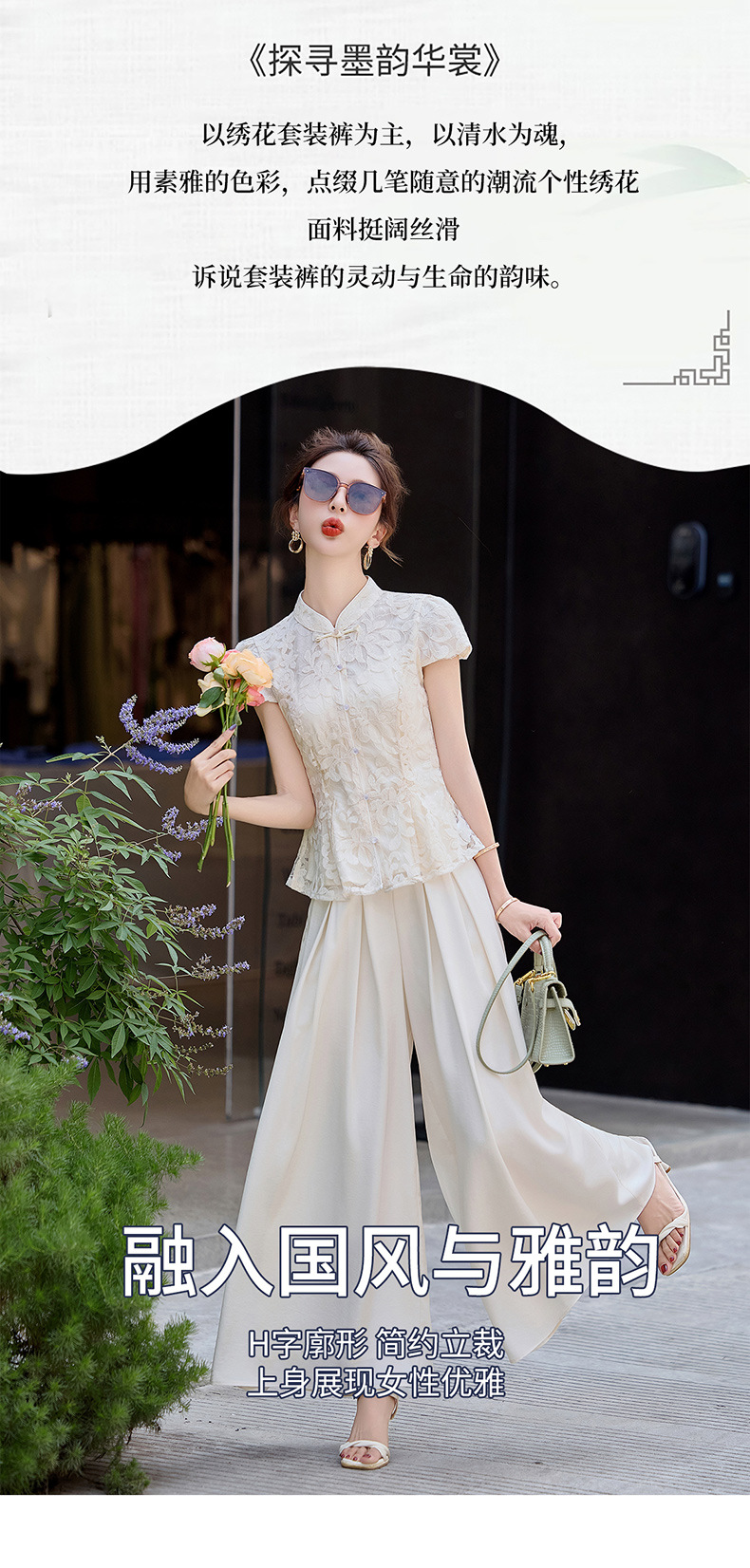 新中式国风套装小香风气质收腰刺绣上衣阔腿裤两件套HANYUSHE2588