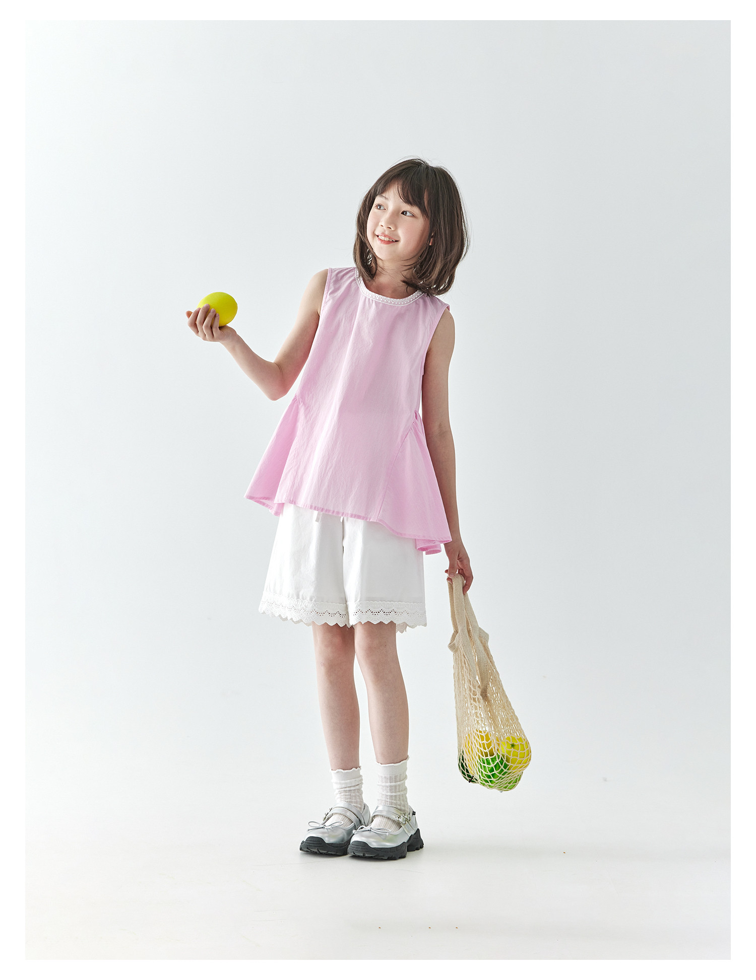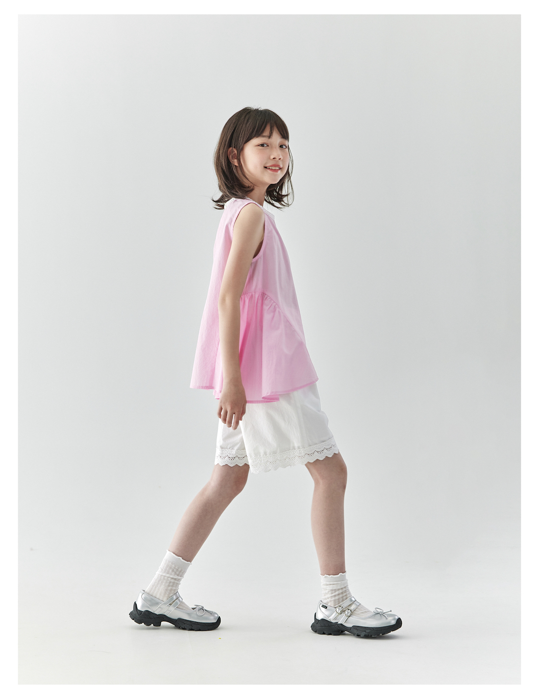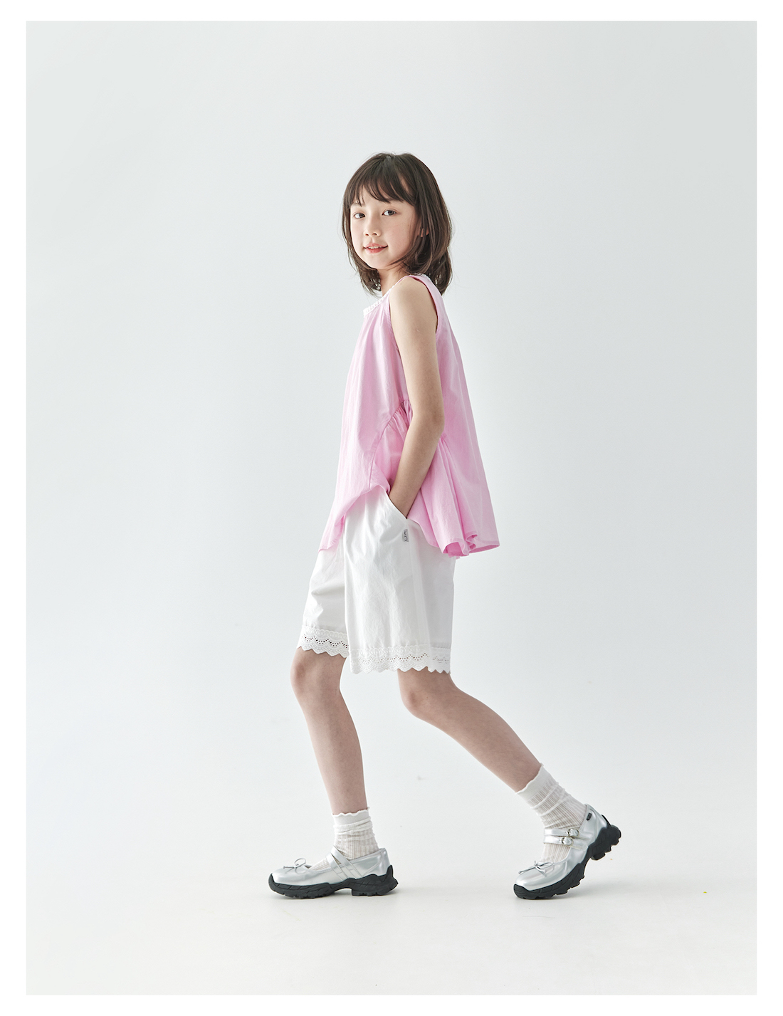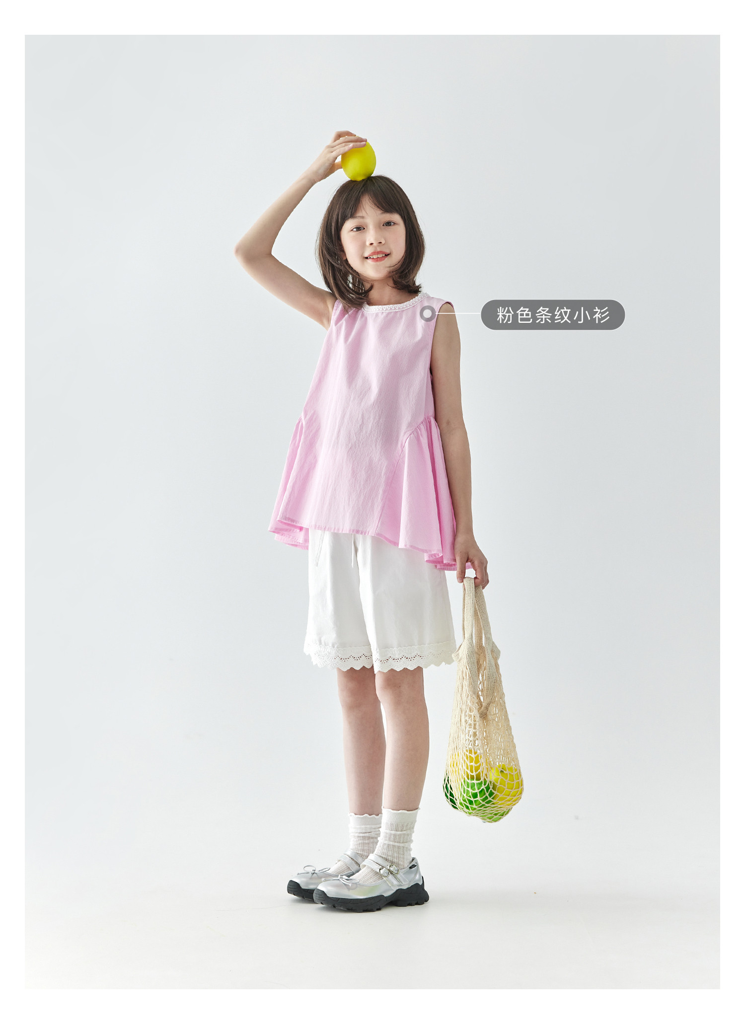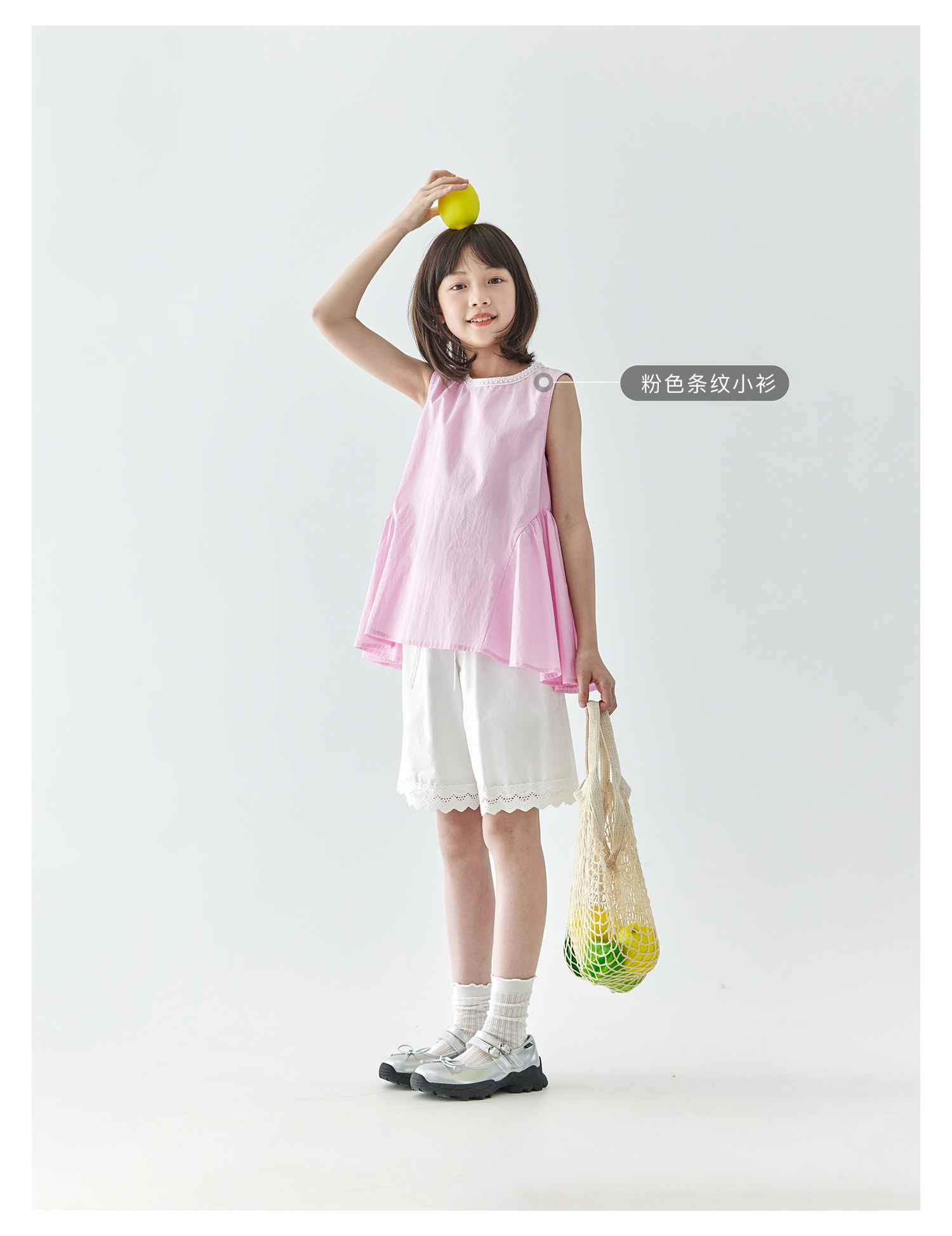 棵初2025夏季新款亲子中大女童白色花边短裤蕾丝拼接宽松裤子