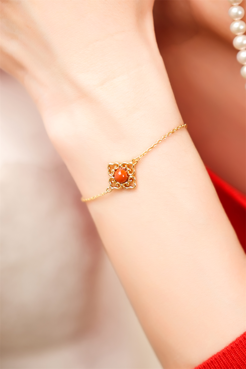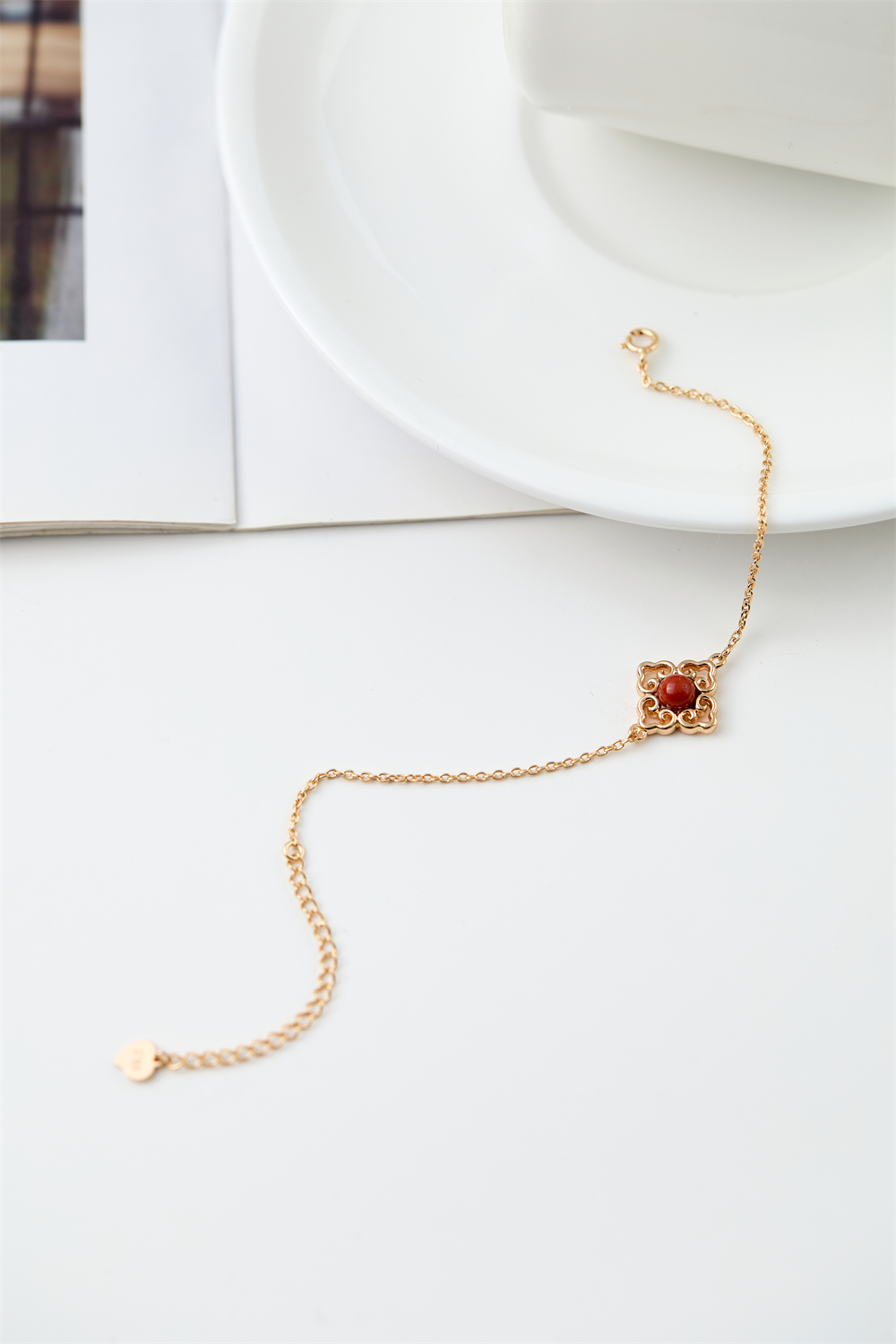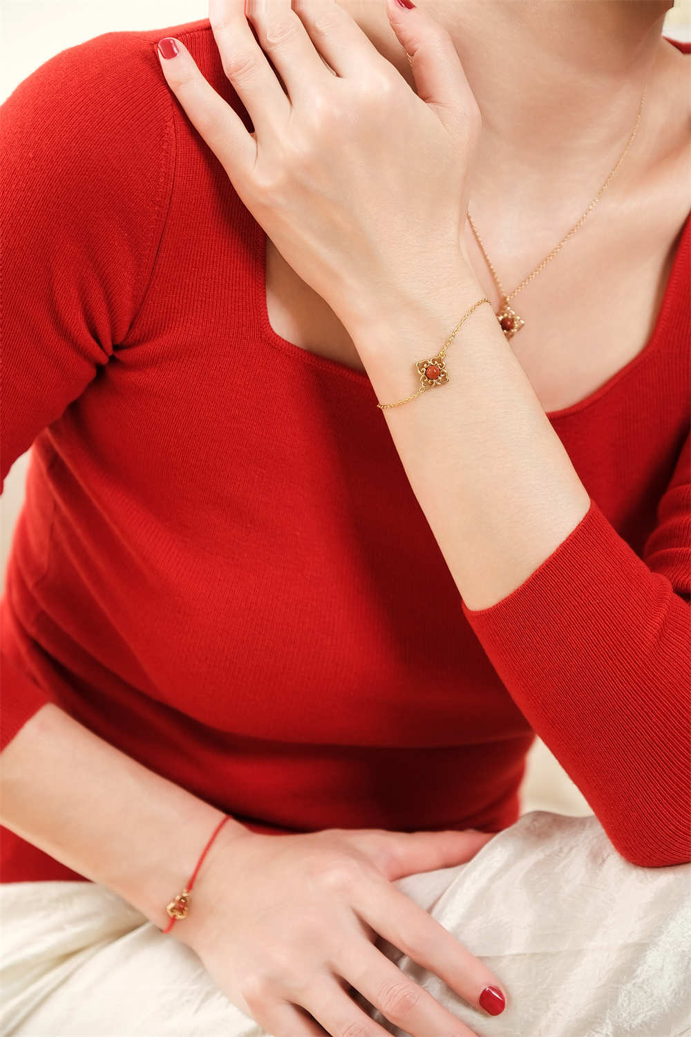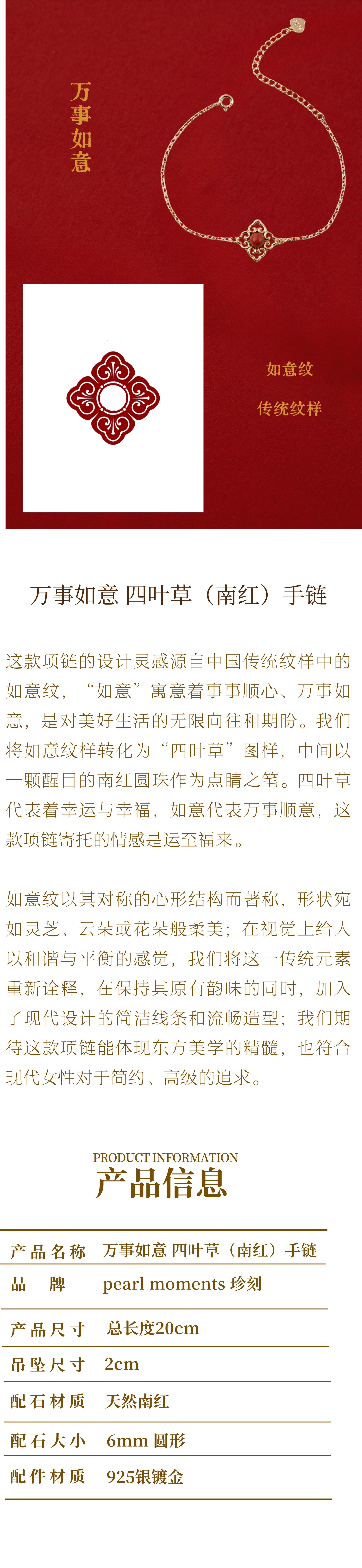 pearl moments珍刻 万事如意 四叶草(南红)手链
