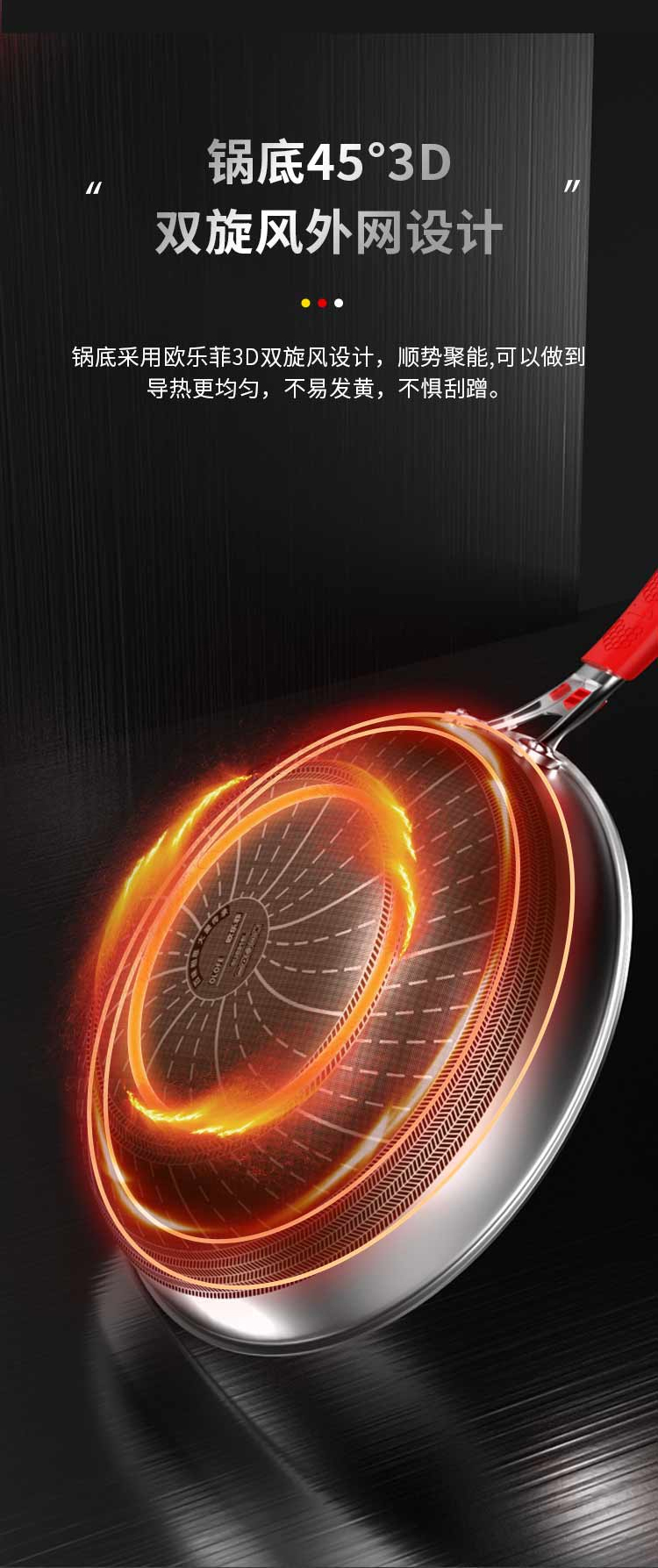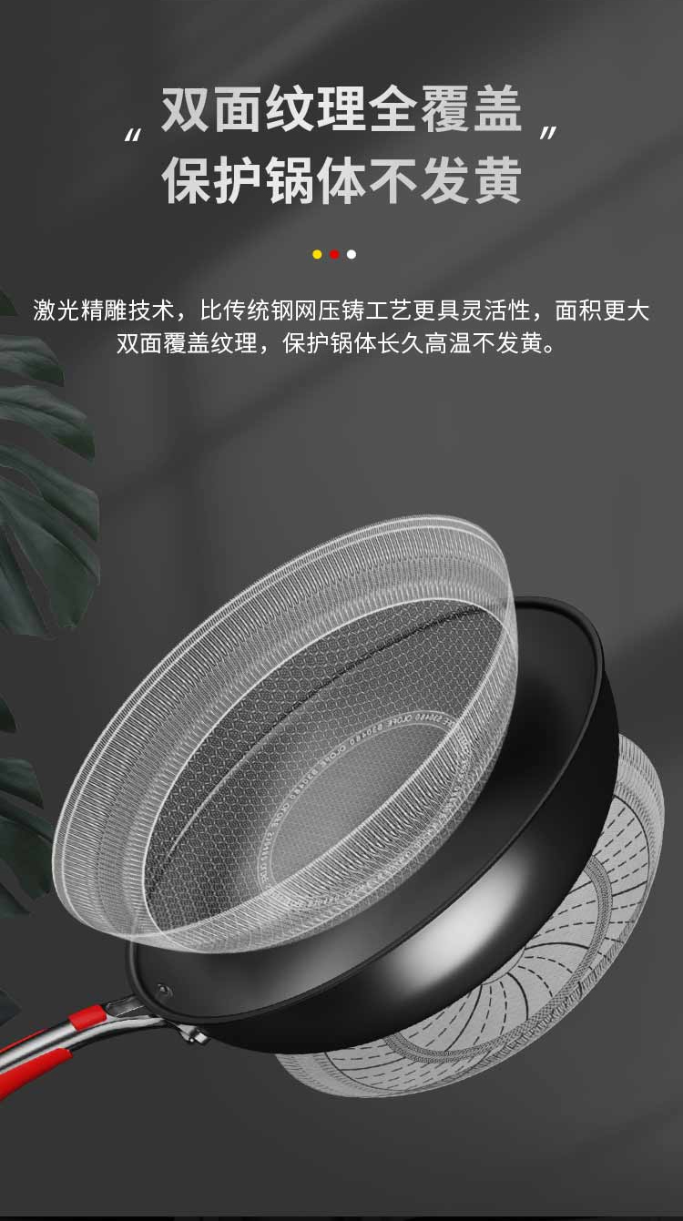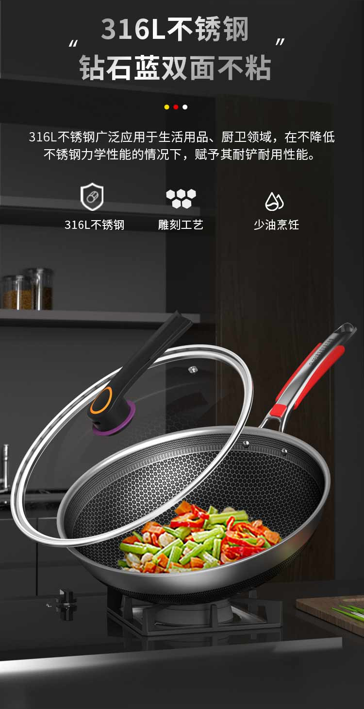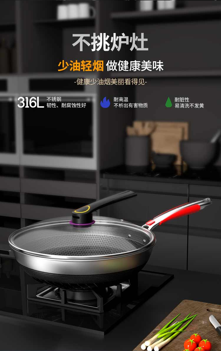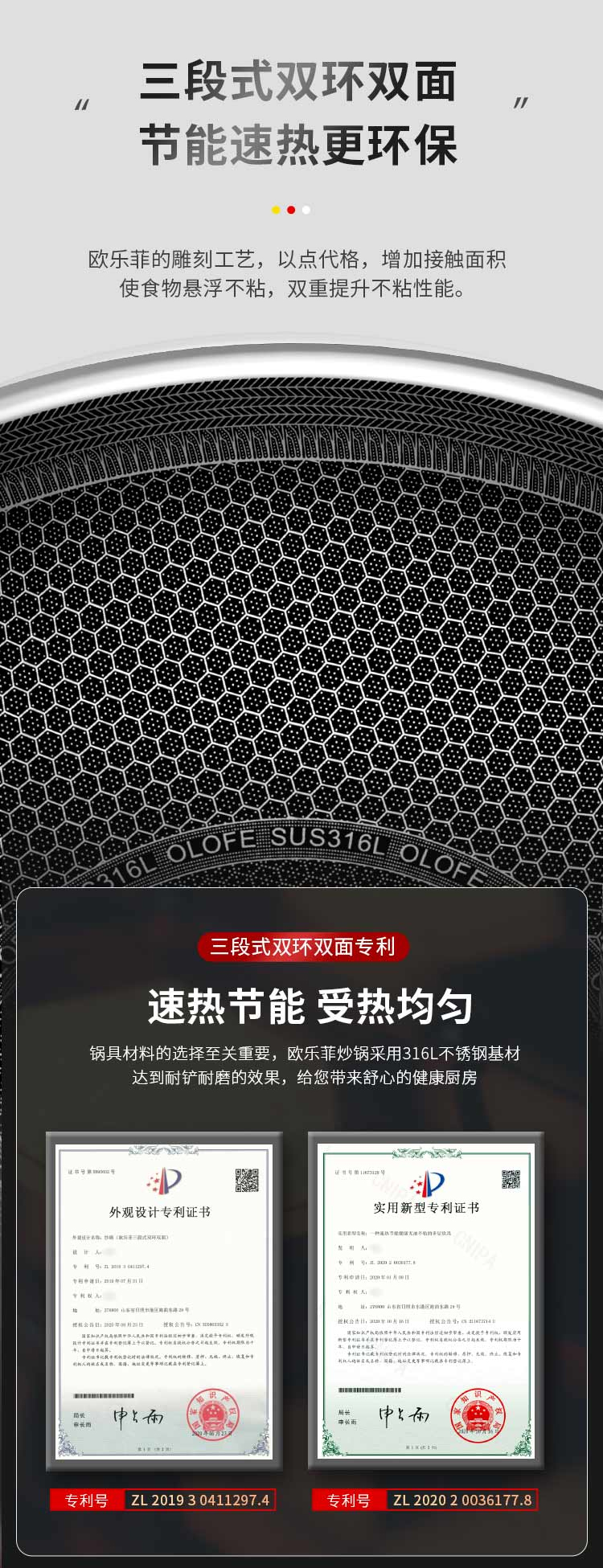欧乐菲米力士蜂巢双面屏316不锈钢炒锅32cm
