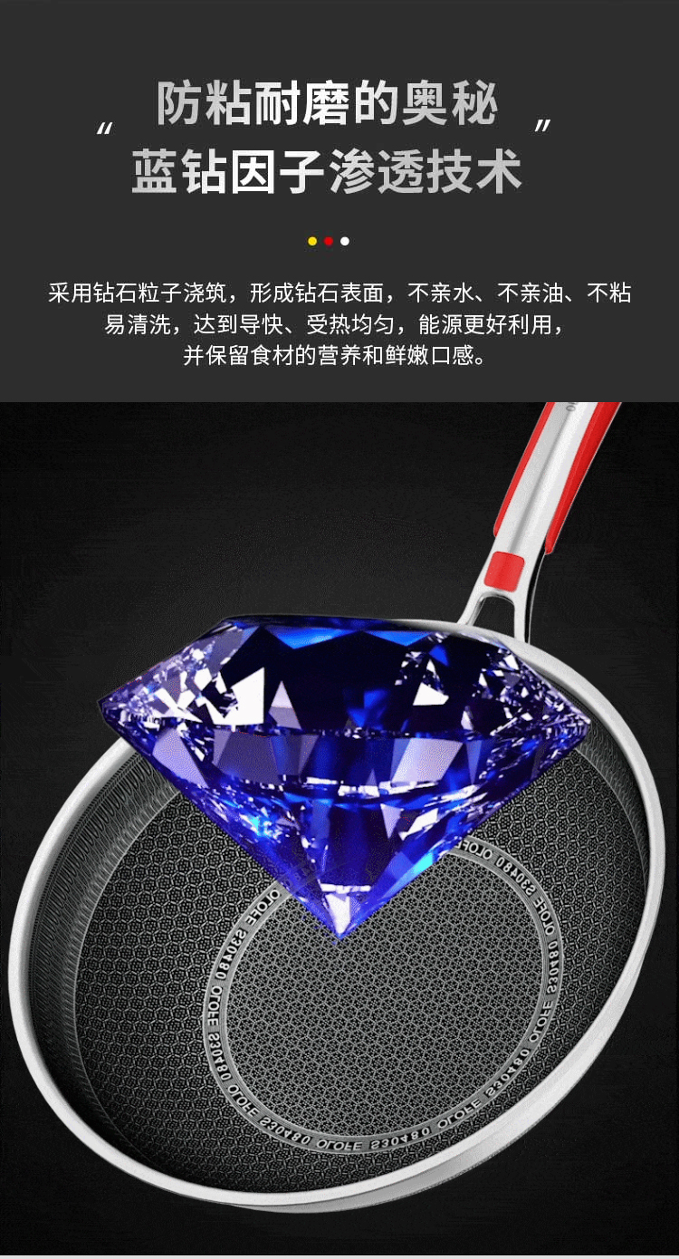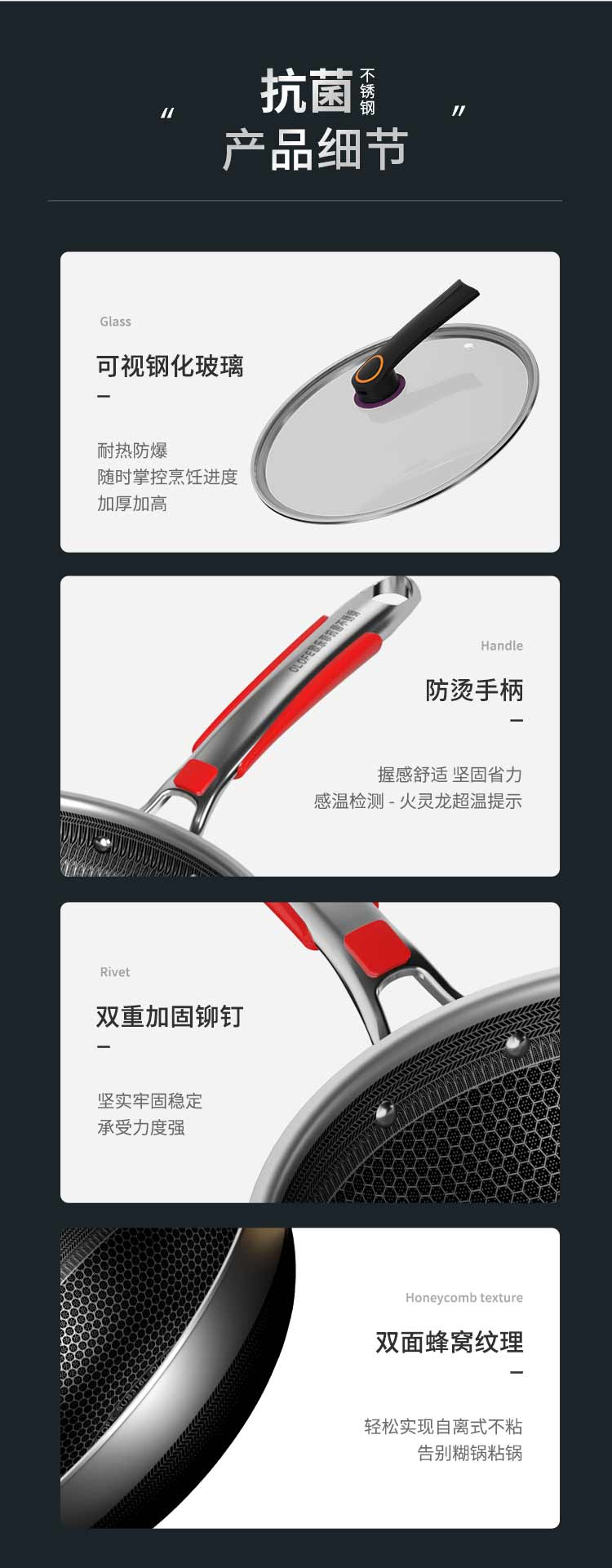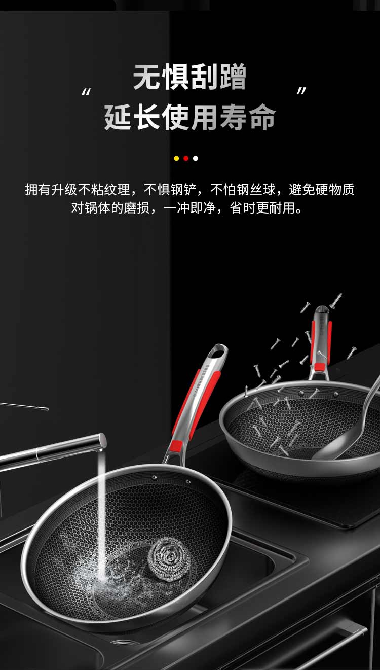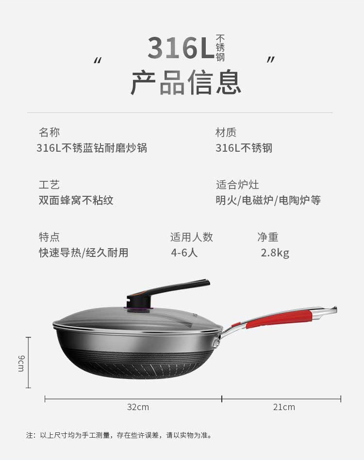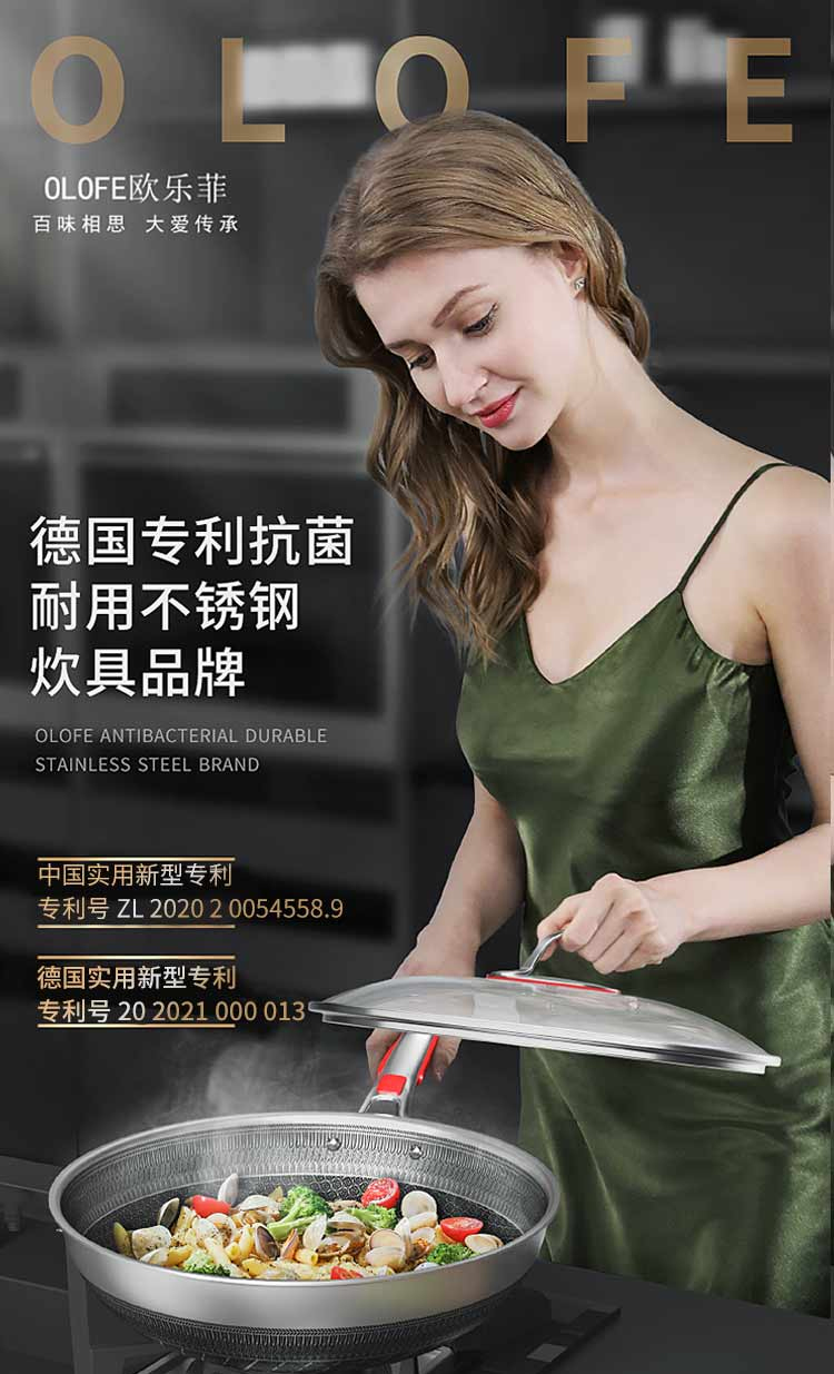 欧乐菲米力士蜂巢双面屏316不锈钢炒锅32cm