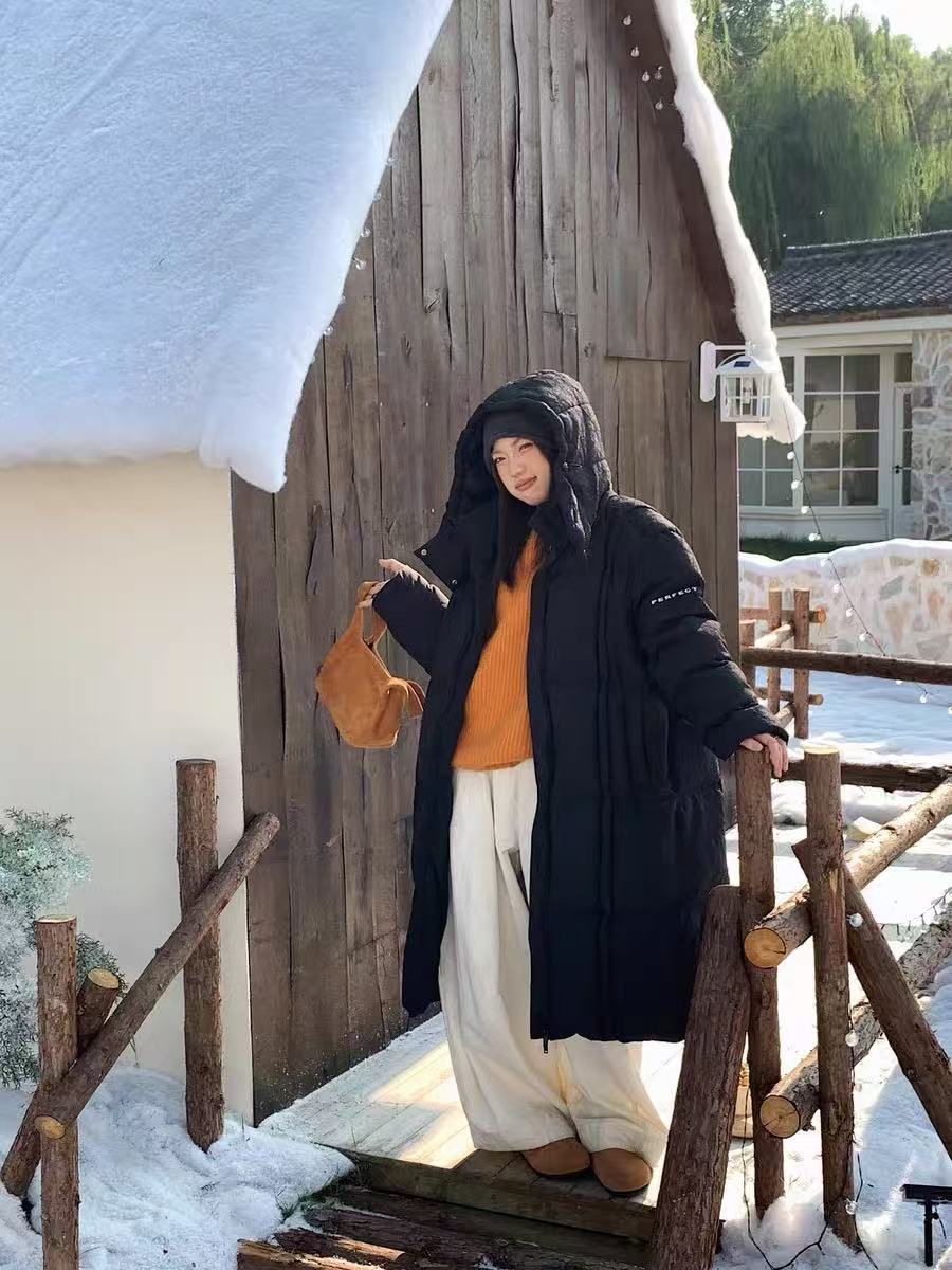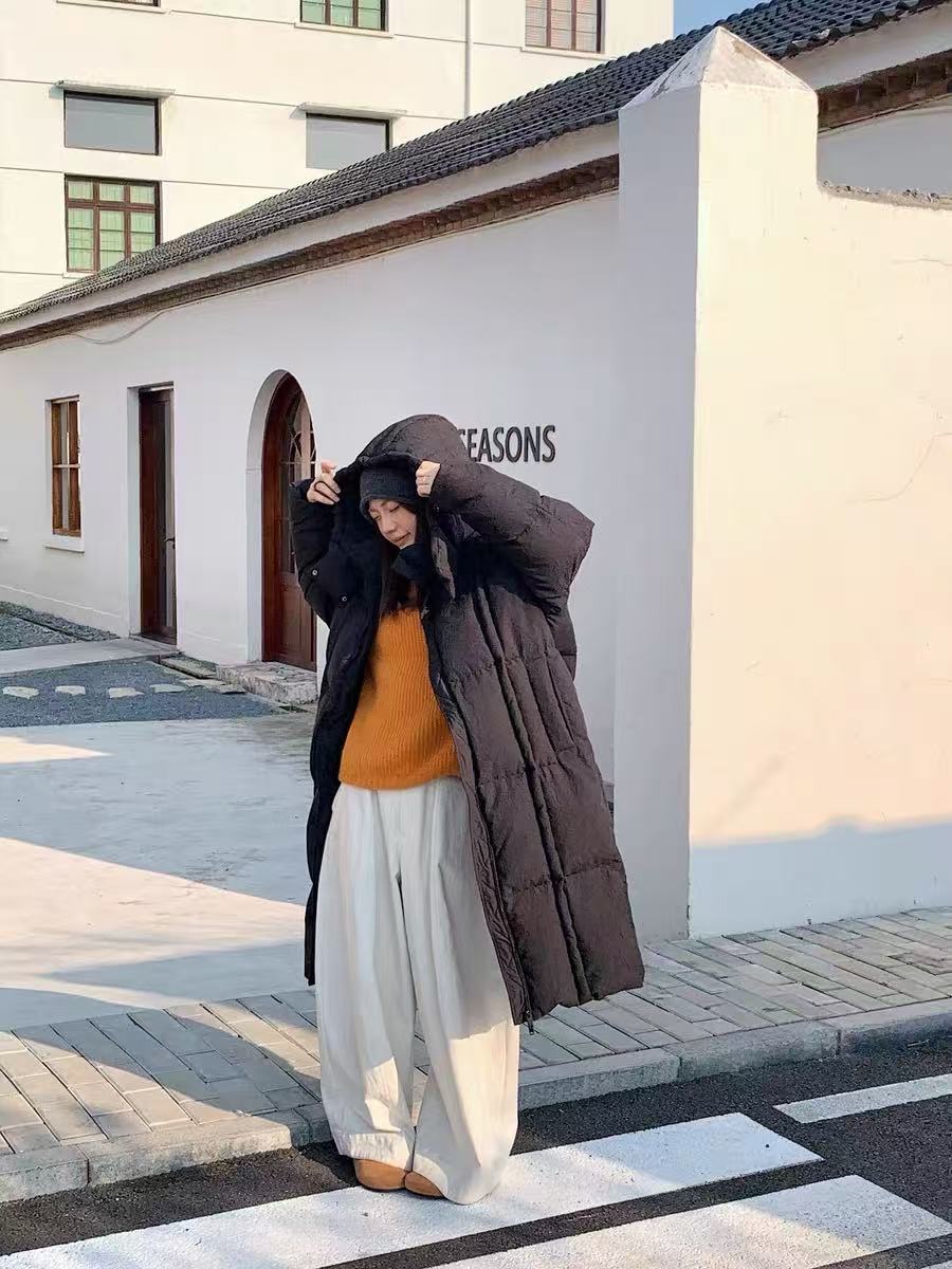 行走的大被子【羽绒服】绒子含量90% 306g充绒量/设计感一半压花宽松大版羽绒服宽松版-喜出
