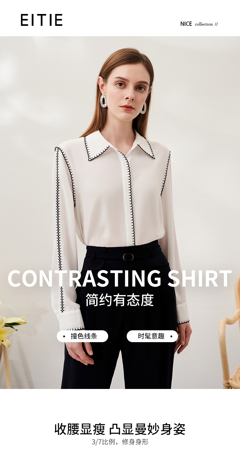 EITIE爱特爱春季新款时尚通勤简约舒适显瘦衬衫女上衣6909608