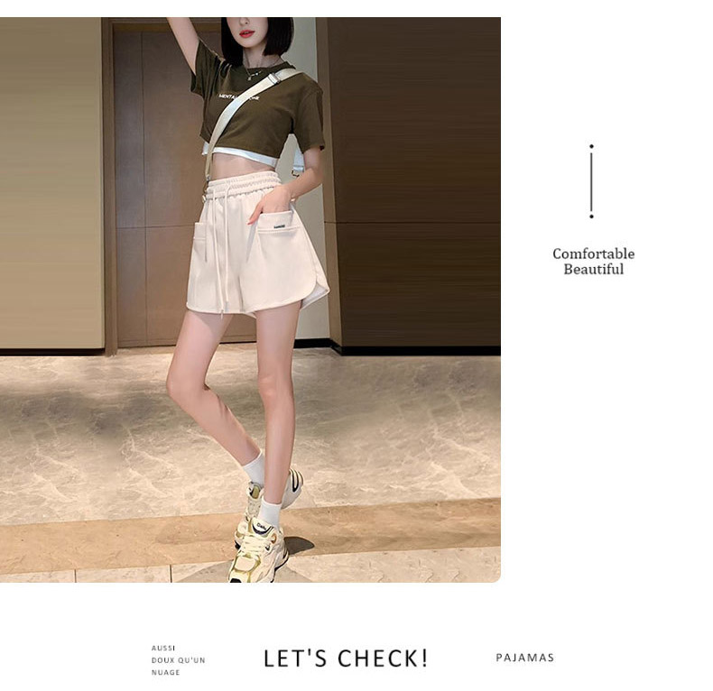跃牌【美西西系列】2025运动防走光抽绳短裤女夏季宽松跑步健身裤防晒高腰瑜伽裤DK-258