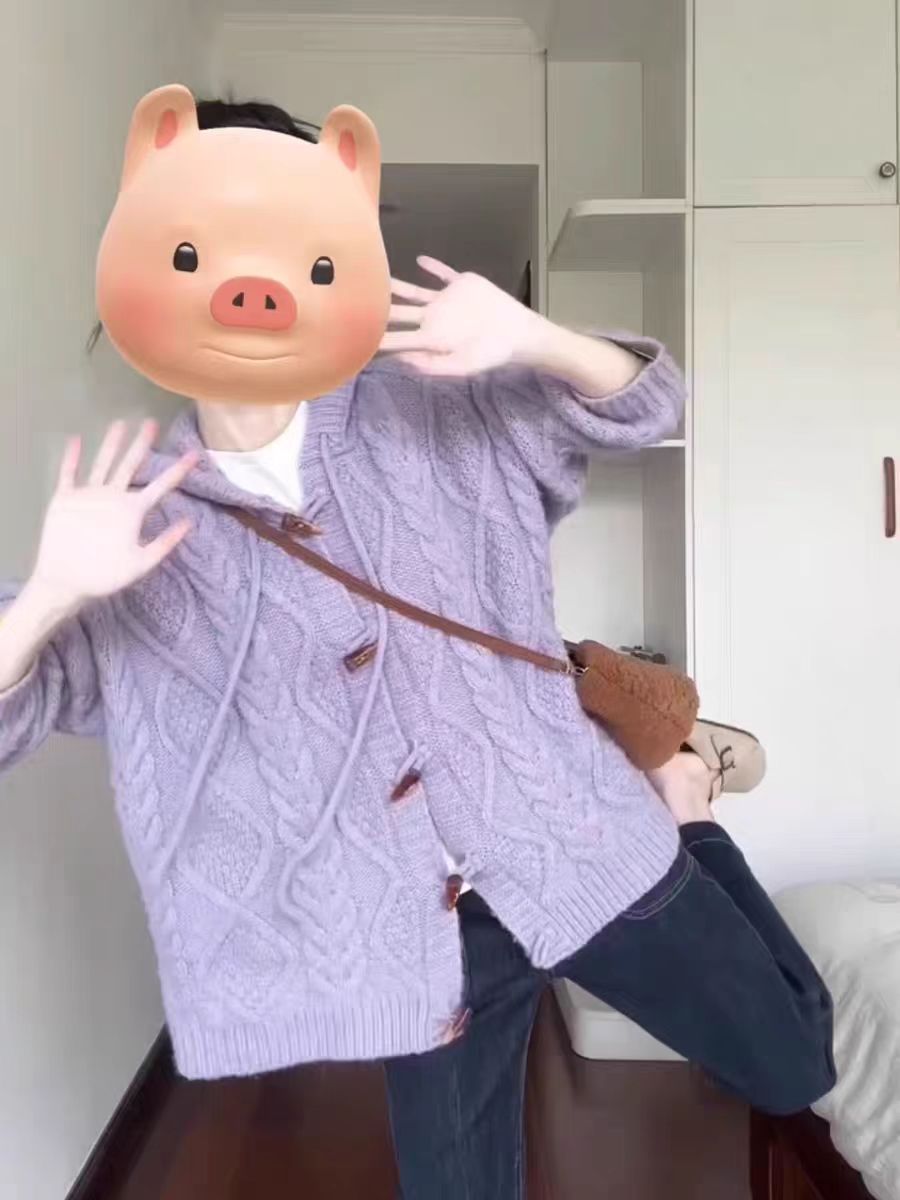 【孤品捡漏】G231紫色牛角扣针织连帽毛衣-喜出