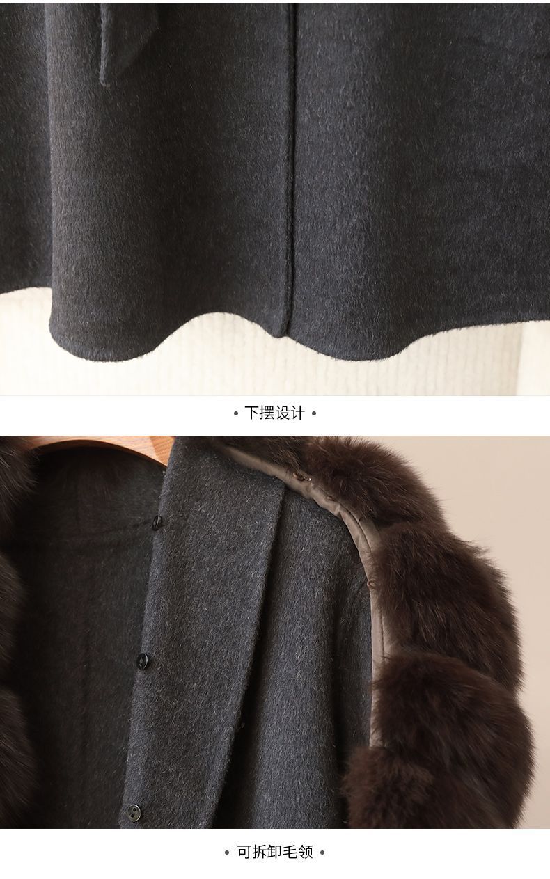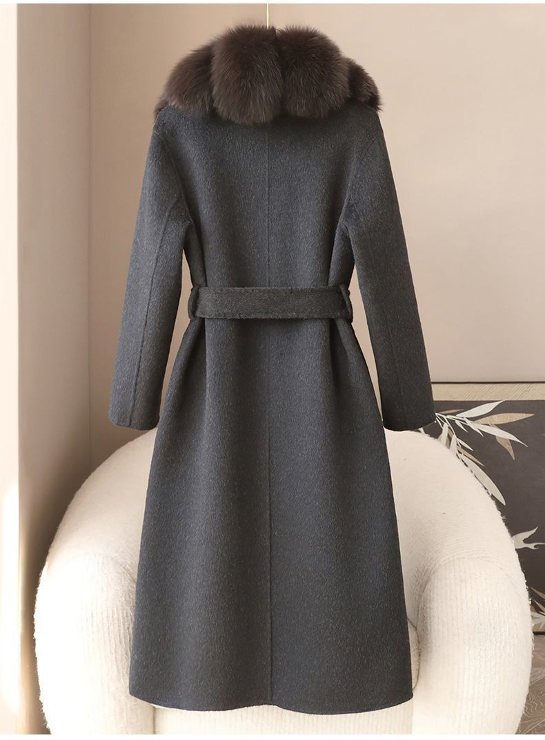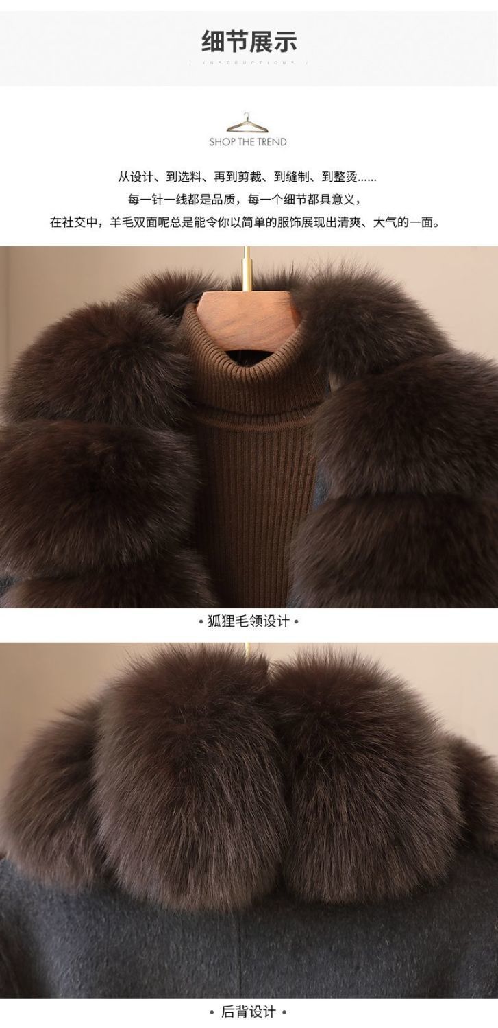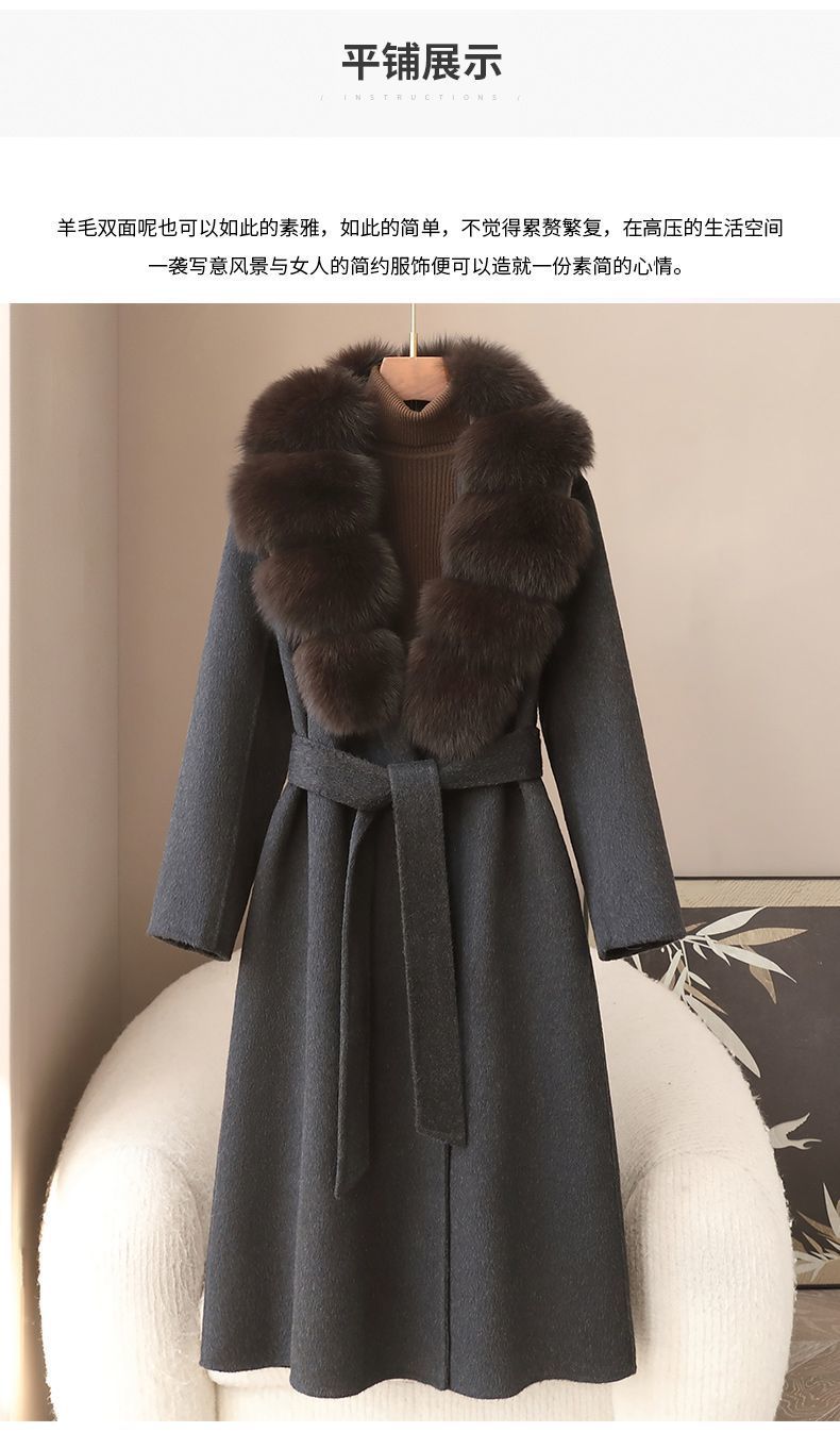 丁摩 冬季新品100%羊毛长款毛呢大衣狐狸毛领双面尼外套女5ZF-04C