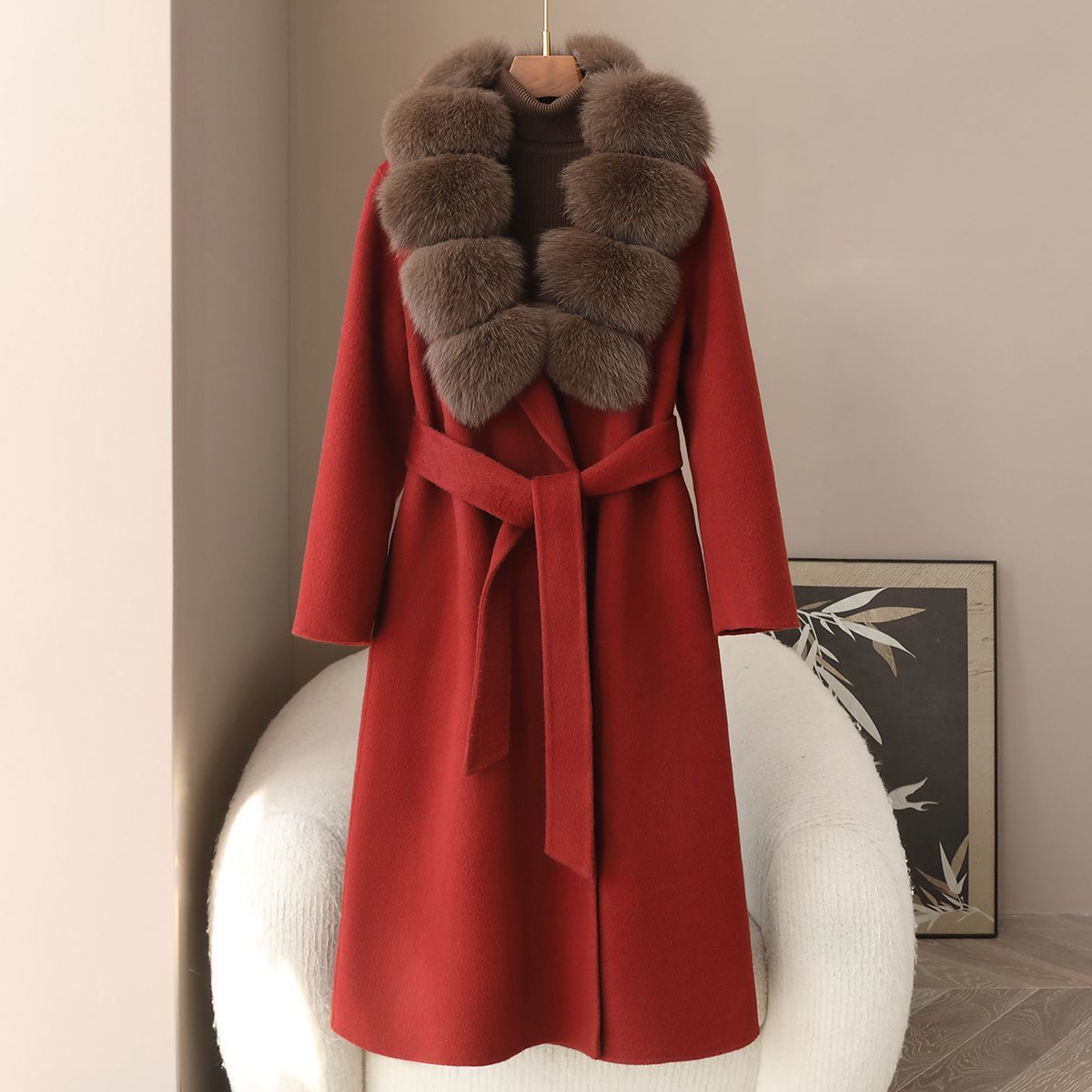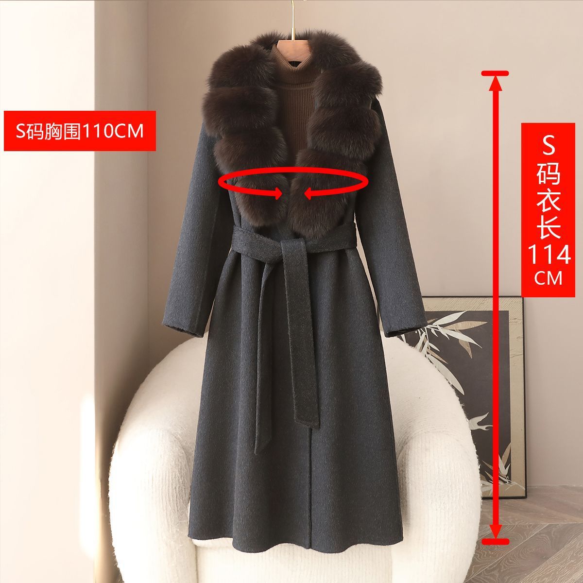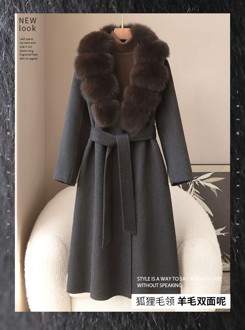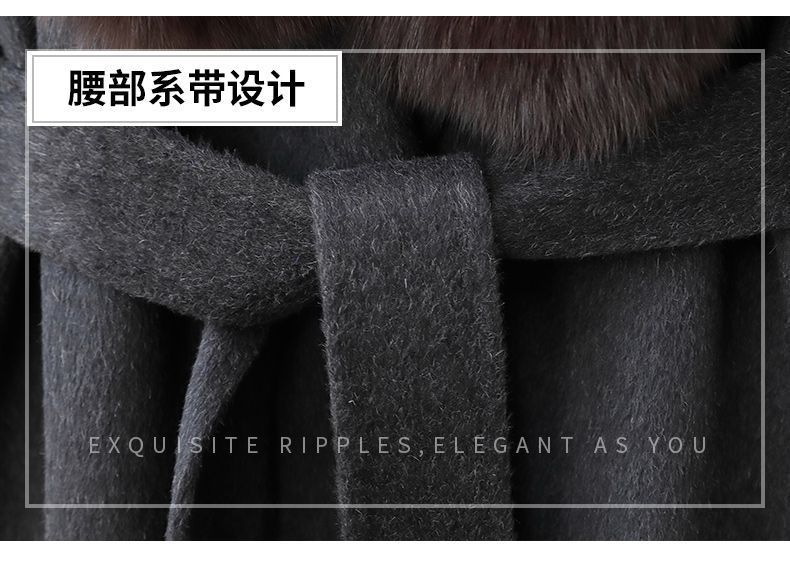 丁摩 冬季新品100%羊毛长款毛呢大衣狐狸毛领双面尼外套女5ZF-04C