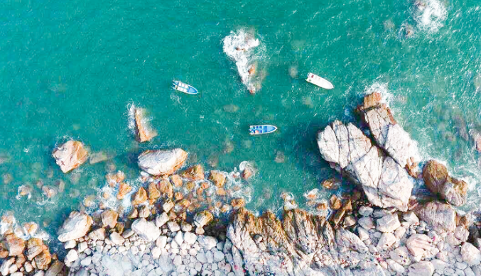 远可俯瞰大水坑湾、砾石滩、海蚀穴、鹿嘴岬角等海岸地貌