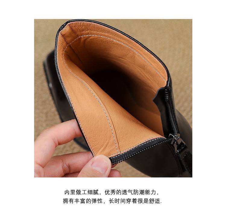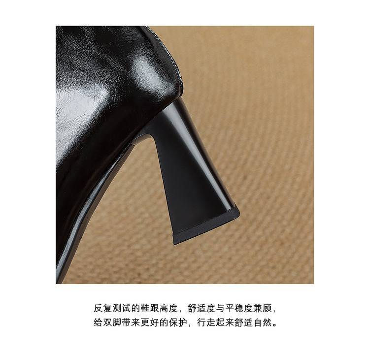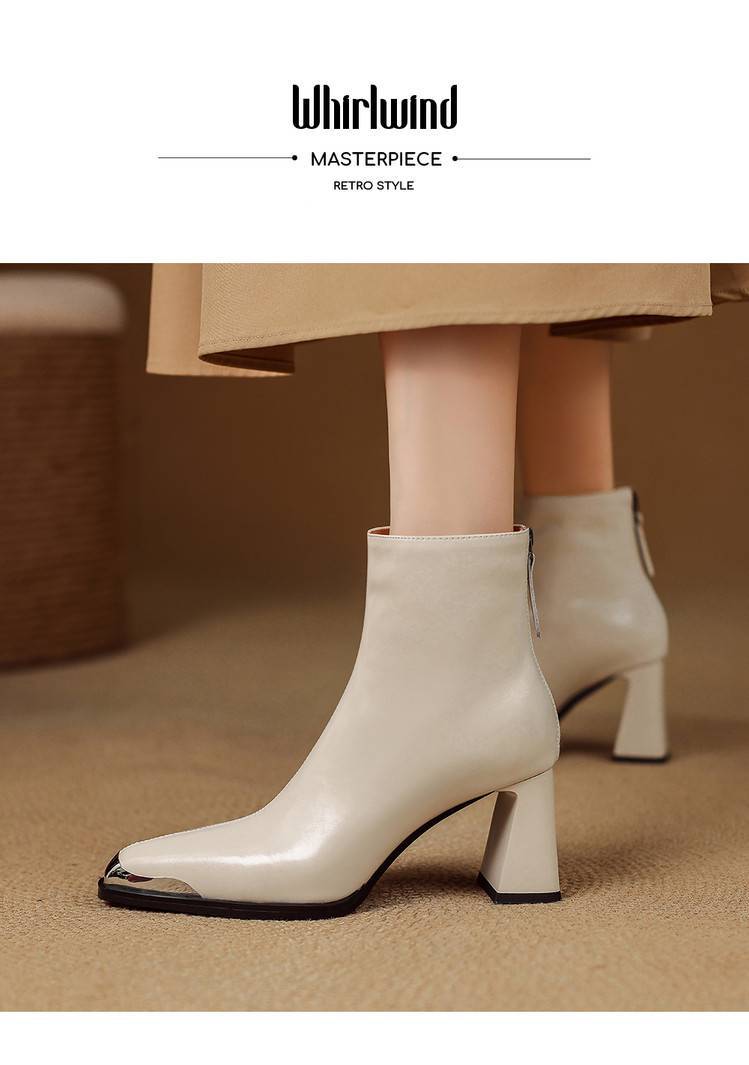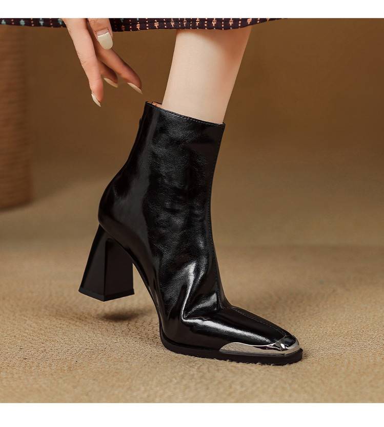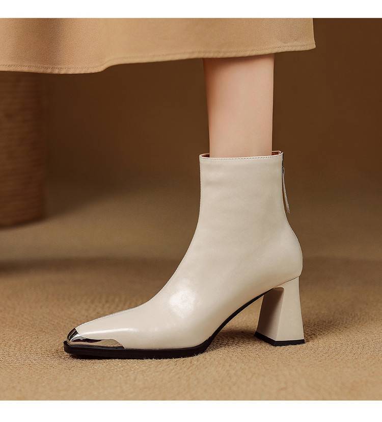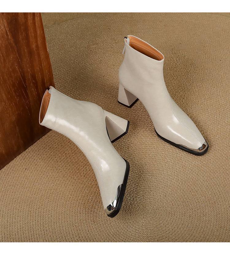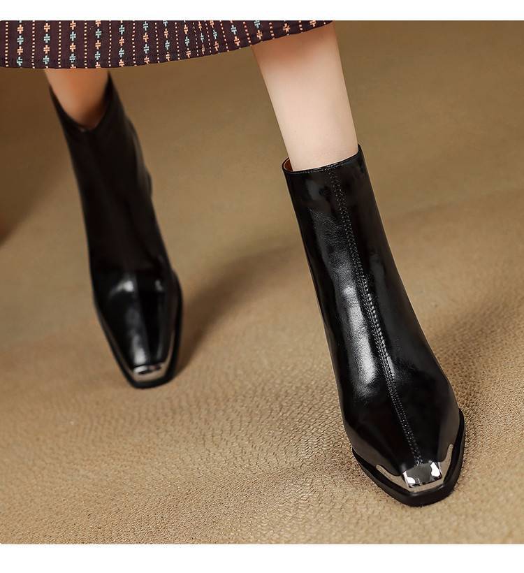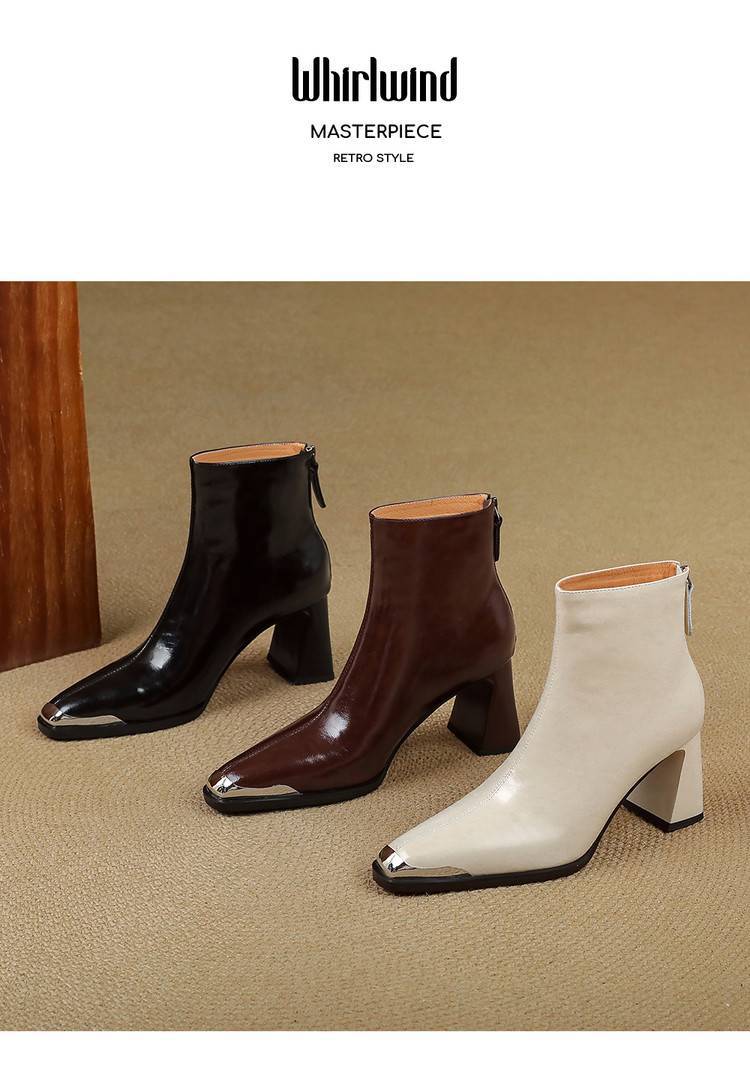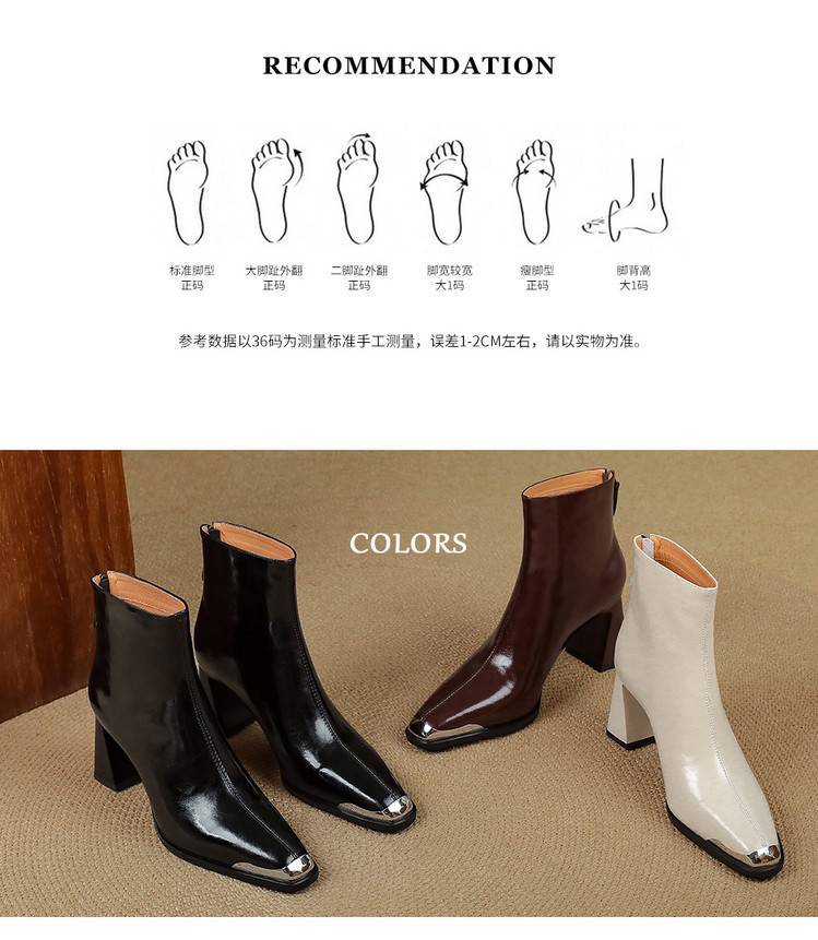 【预售5天】里外全皮轻奢风金属小方头粗跟厚拉链及踝靴法式高跟棕色短靴&sl-8151