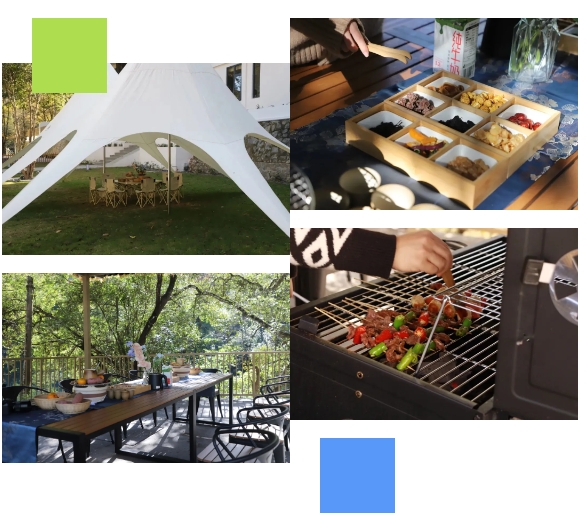 无论是室外还是室内,都能找到一处满意的栖息地。在山野中围炉而坐,品一杯茶,共享充满冬日气息的烤香橘、年糕、番薯, 偷得浮生半日闲。
