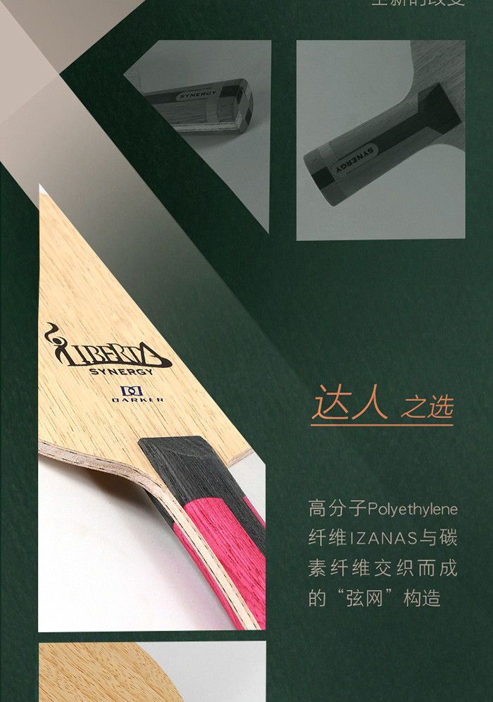 简介:日本著名乒乓球用品达克DARKER厂家推出的中国式直拍球拍.采用超级纤维新素材加碳材料加工,超级素材柔和坚韧,碳素纤维刚健有力,具有吸收冲击力好,接球感柔和,破坏力强大等特点,刚柔兼备,软硬适宜,操作性佳,挥洒自如的特点,适合中高级水平的乒乓球爱好者使用。